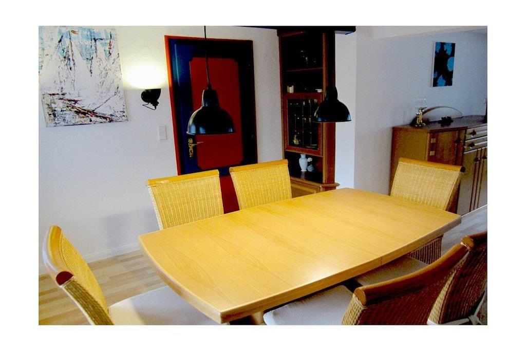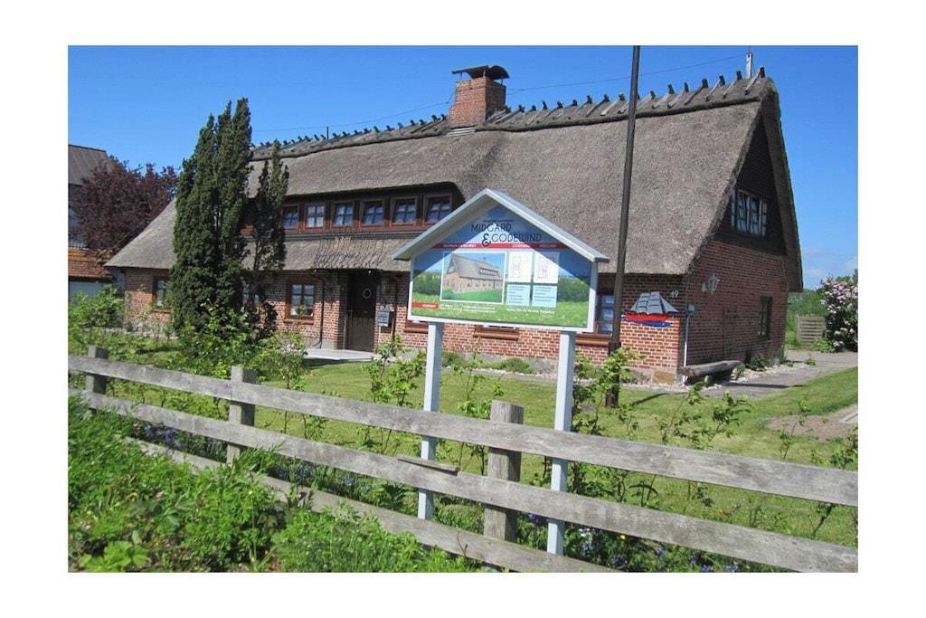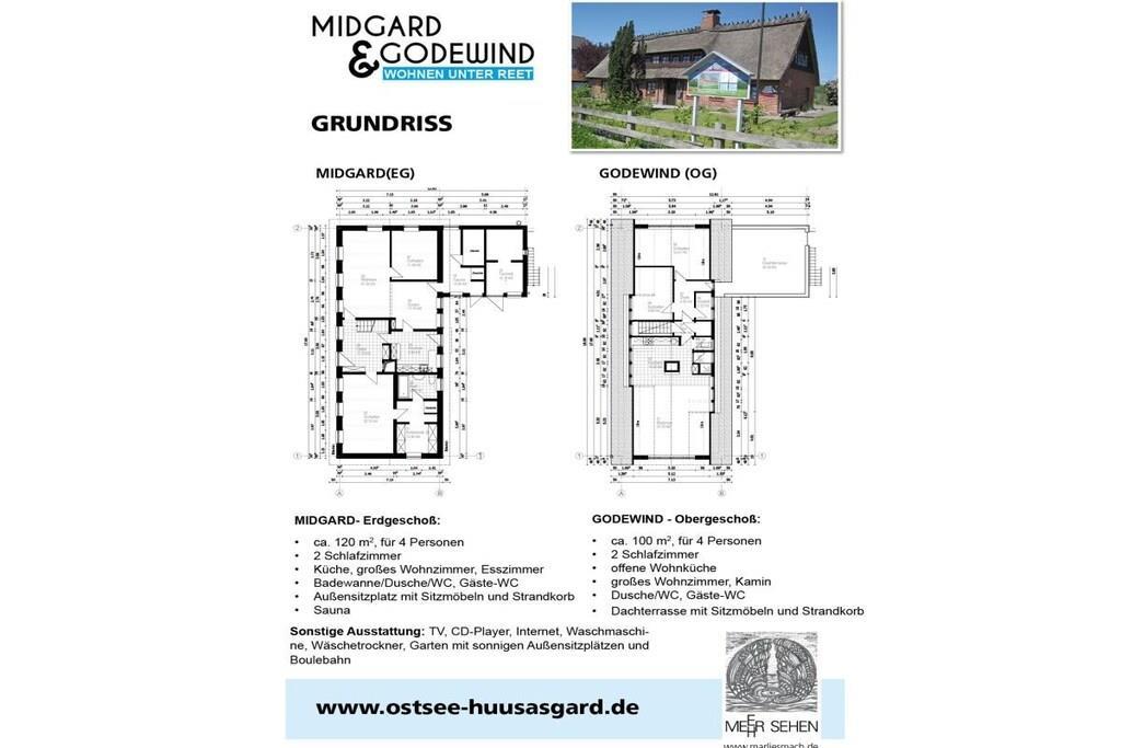 Cozy holiday apartment with sauna on the ground floor of a typical thatched-roof cottage directly on the Baltic Sea. Large garden with seating furniture and beach chair.