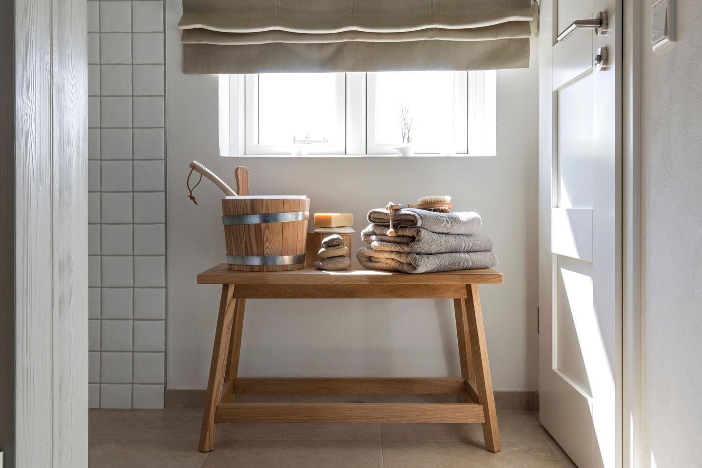 Kamin, Sauna und eine großzügige Terrasse mit einer Sitzecke aus Teakholz und eigenem Standkorb sind nur einige der Wohlfühl-Oasen in diesem Malerhaus.