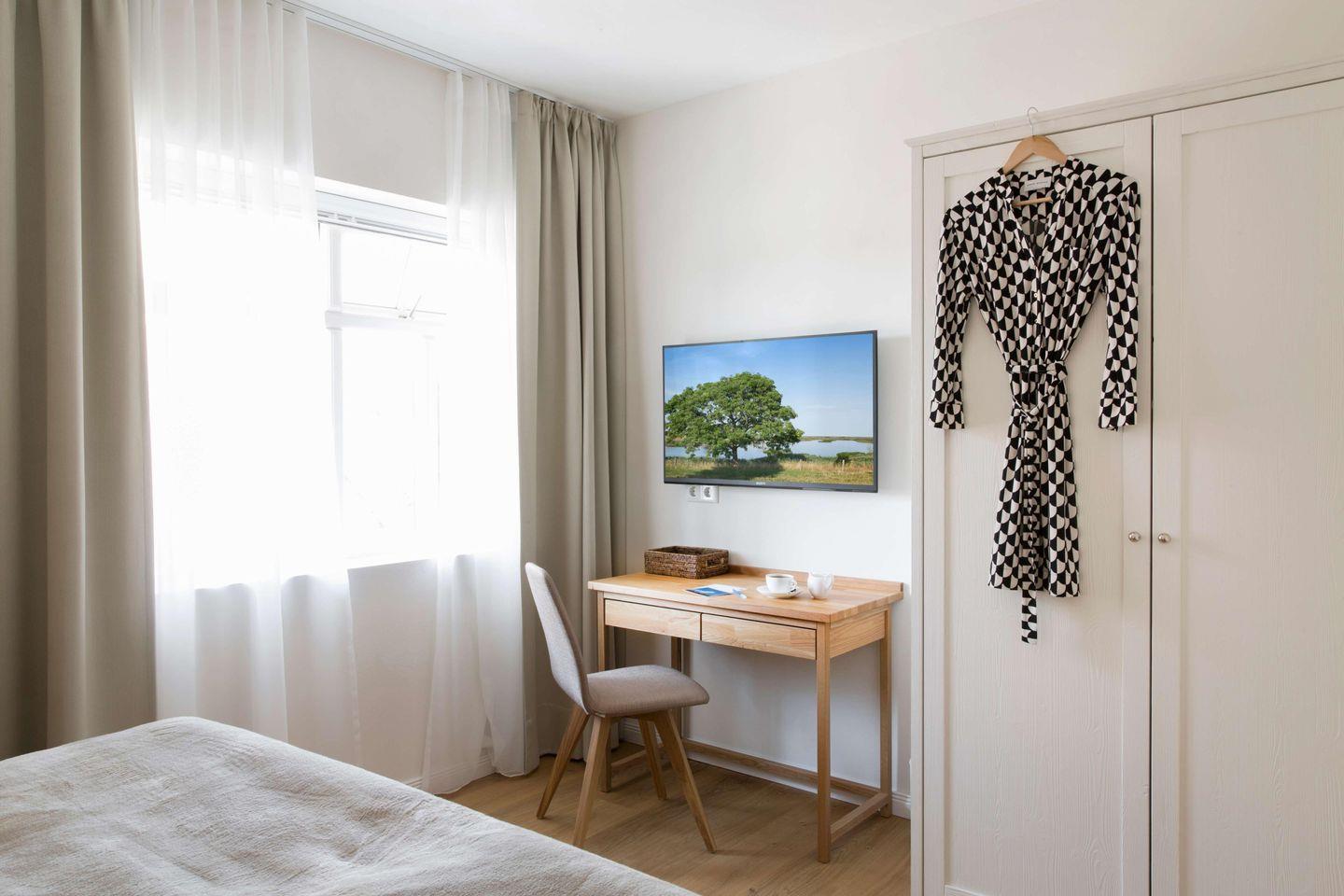 Alle Zimmer sind bis ins letzte Detail liebevoll eingerichtet mit einer Ausstattung auf höchstem Niveau: Vom Besteck über die Elektrogeräte bis zur Biobaumwolldecke finden Sie ausschließlich hochwertige Markenprodukte, ergänzt durch eigens entwickelte und gefertigte Echtholz-Möbel und Textilien.