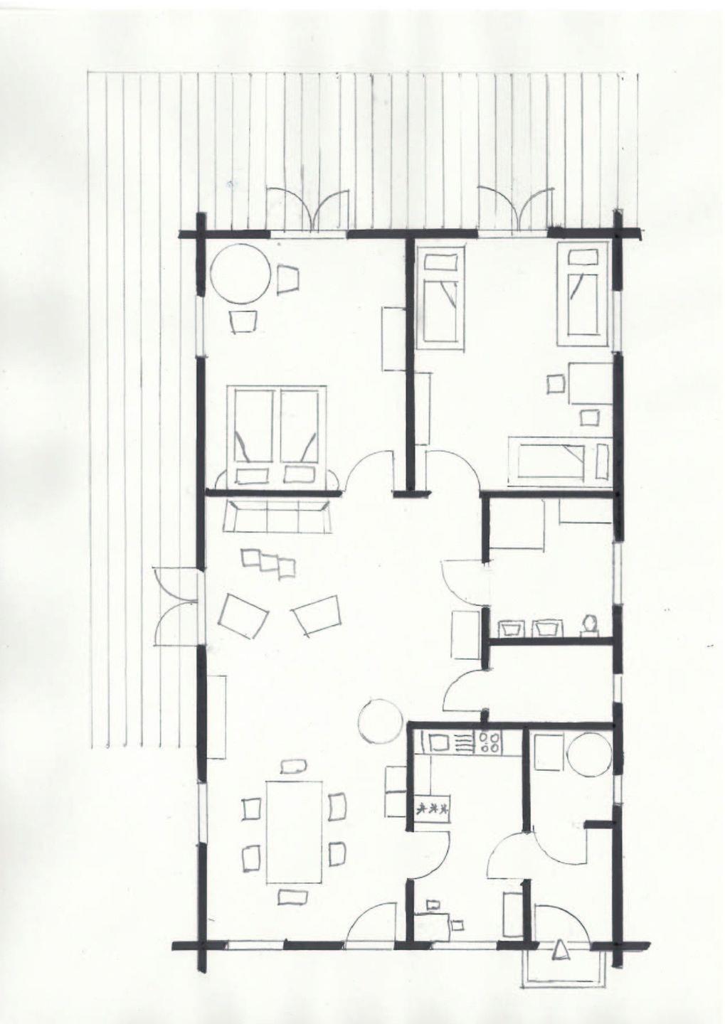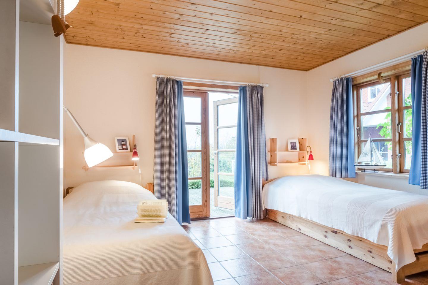 Direkt neben dem Wohnzimmer liegt das Elternschlafzimmer (2x 90x200cm). In einem weiteren Schlafzimmer finden Sie drei Einzelbetten (je 90x200cm), perfekt für Ihre Kinder.