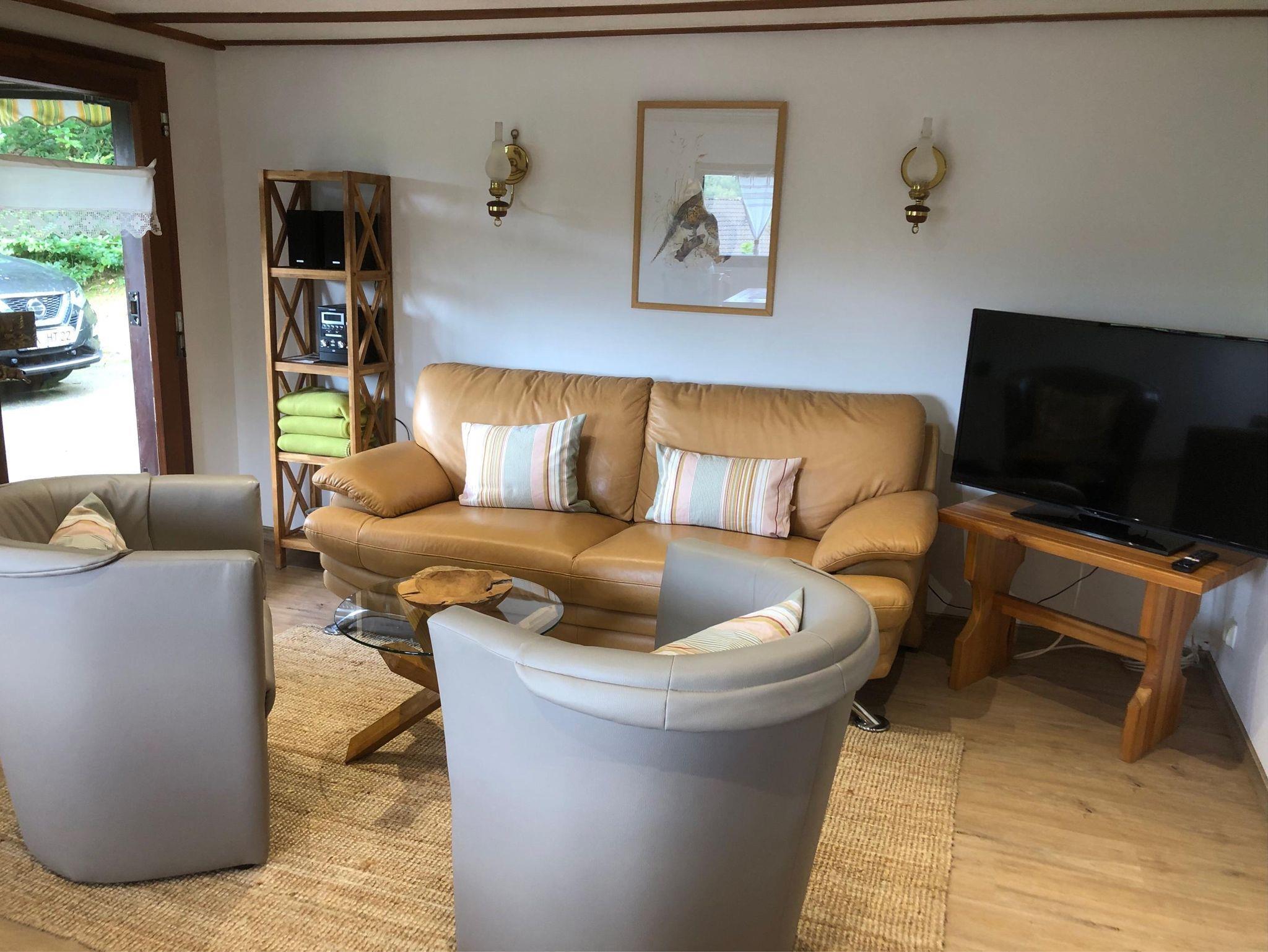Der ca. 70 qm große Mietbereich umfasst Küche, Wohnzimmer, ein Schlafzimmer mit Doppelbett, sowie ein kleines Schlafzimmer mit zwei Hochbetten mit aktuell noch vier Schlafplätzen (wird umgebaut),ein großes behindertengerecht ausgebautes Badezimmer mit Dusche und eine Abstellkammer.