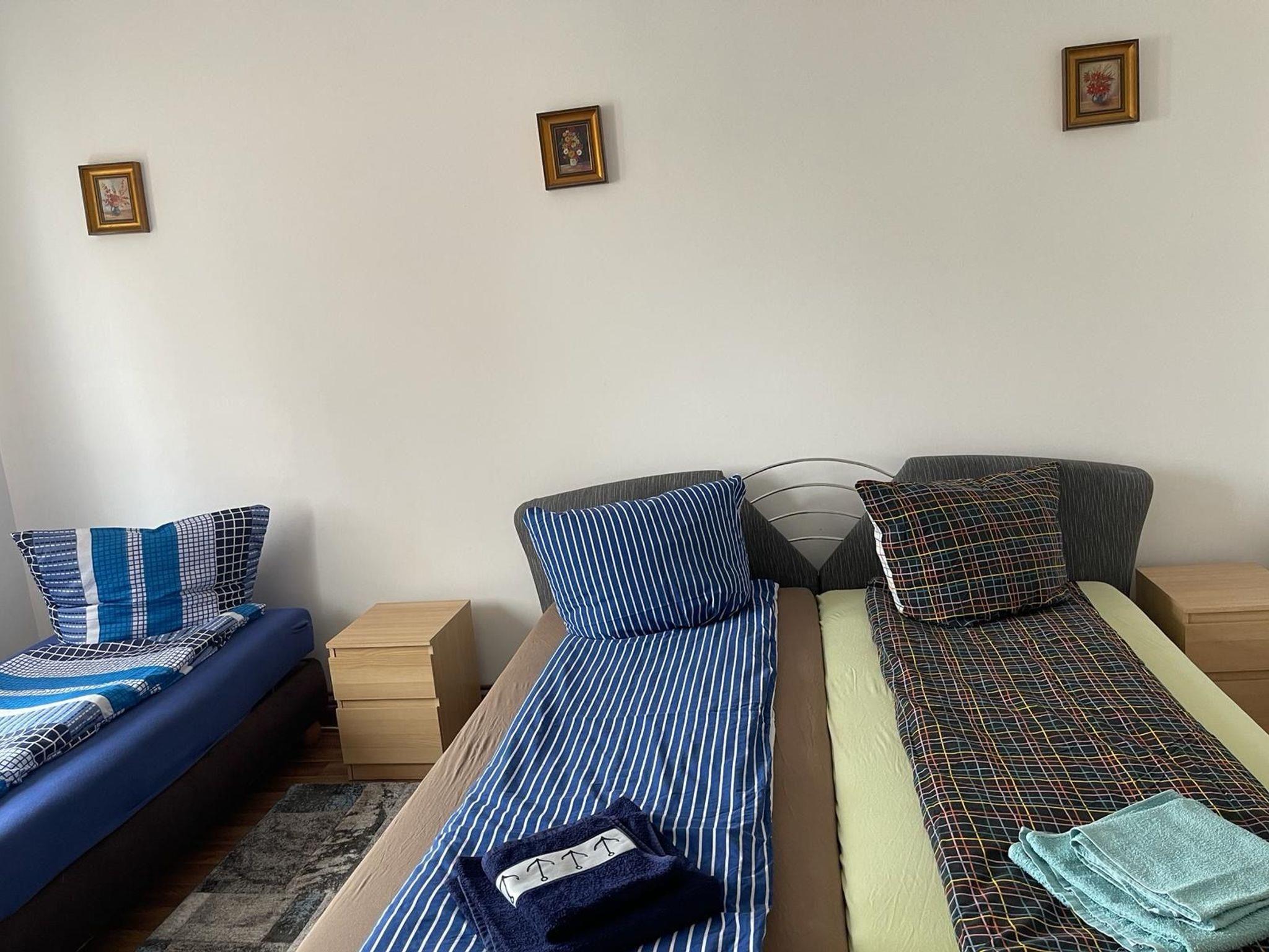 Dieses gemütliches Dreibettzimmer bietet eine schöne Möglichkeit zum ausruhen und entspannen.
