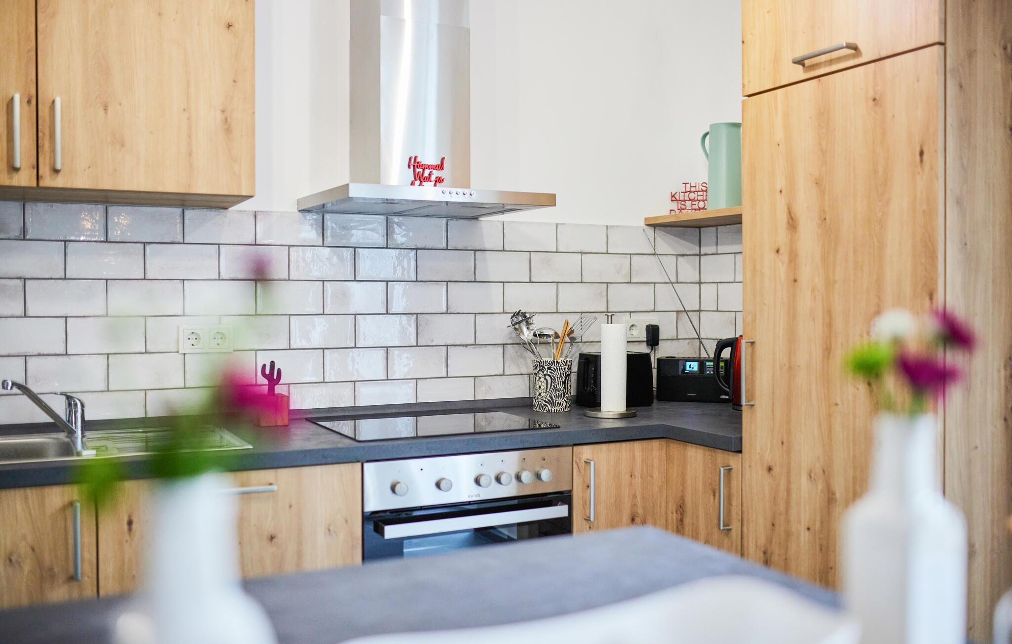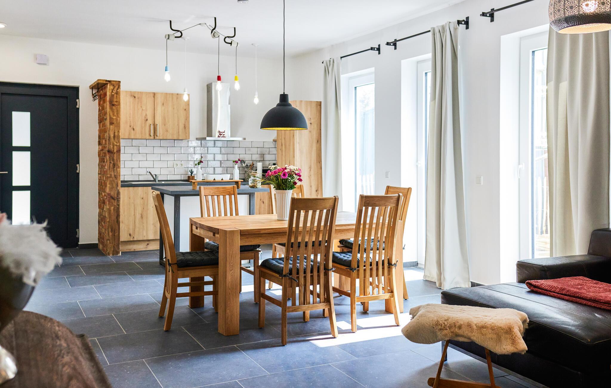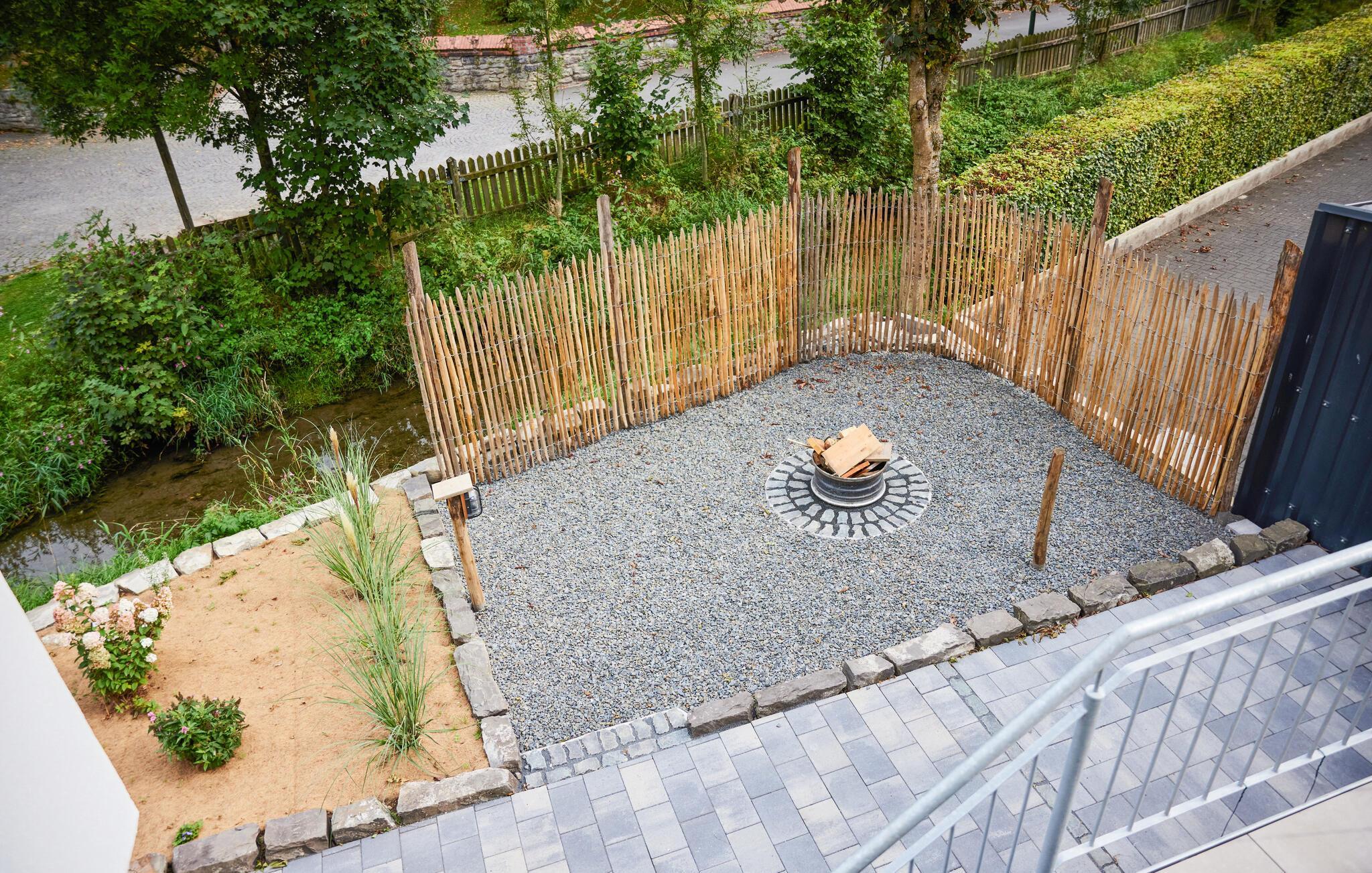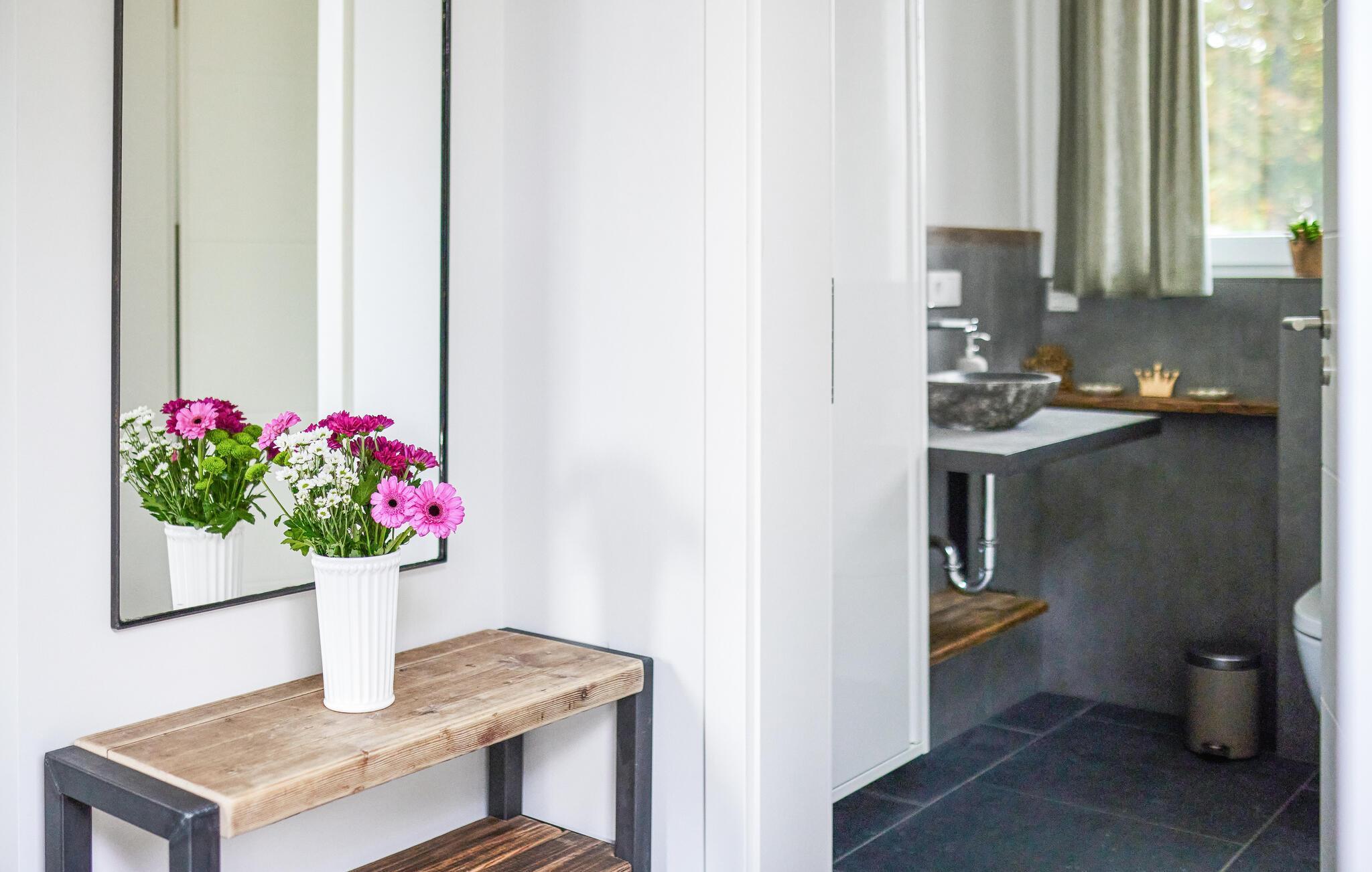 Erleben Sie pure Entspannung in dieser modernen und stilvollen Ferienwohnung. Die schicke Kombination aus dunklen Fliesen und hochwertigen Holzmöbeln schafft eine harmonische Atmosphäre, die zum Wohlfühlen einlädt. Die lichtdurchfluteten Räume im ersten Stock bieten Ihnen viel Platz zum Entspannen. Genießen Sie die offene Terrasse mit einem herrlichen Blick auf die Landschaft. Ein Zugang zum Bach und eine Feuerschale im Garten bieten Ihnen besondere Momente in der Natur. Perfekt für gemütliche Abende unter freiem Himmel.