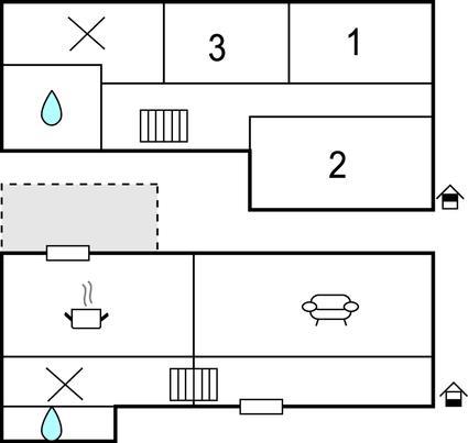 Badezimmer (nr. 1) - WC. Warmes und kaltes Wasser. Dusche