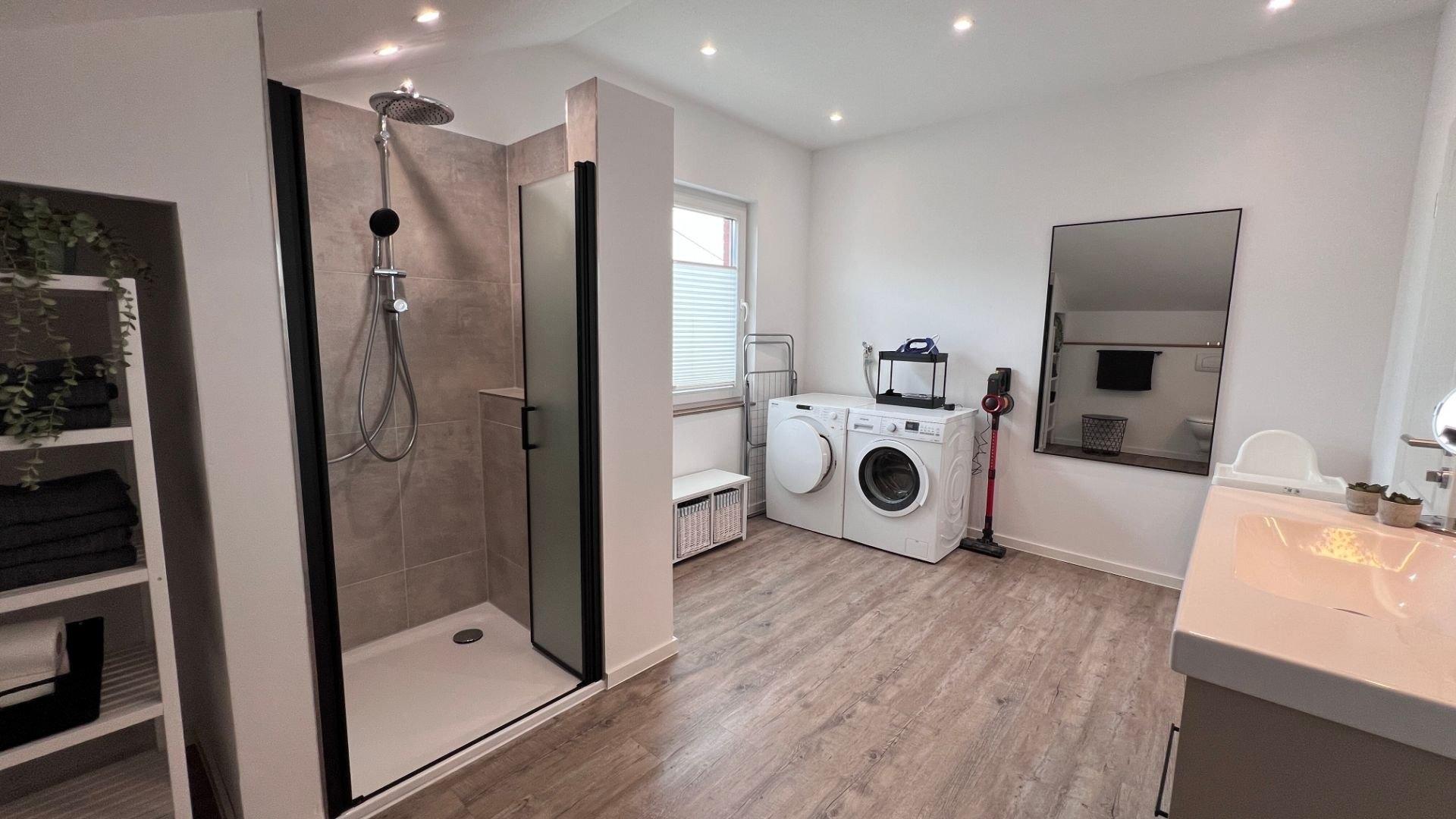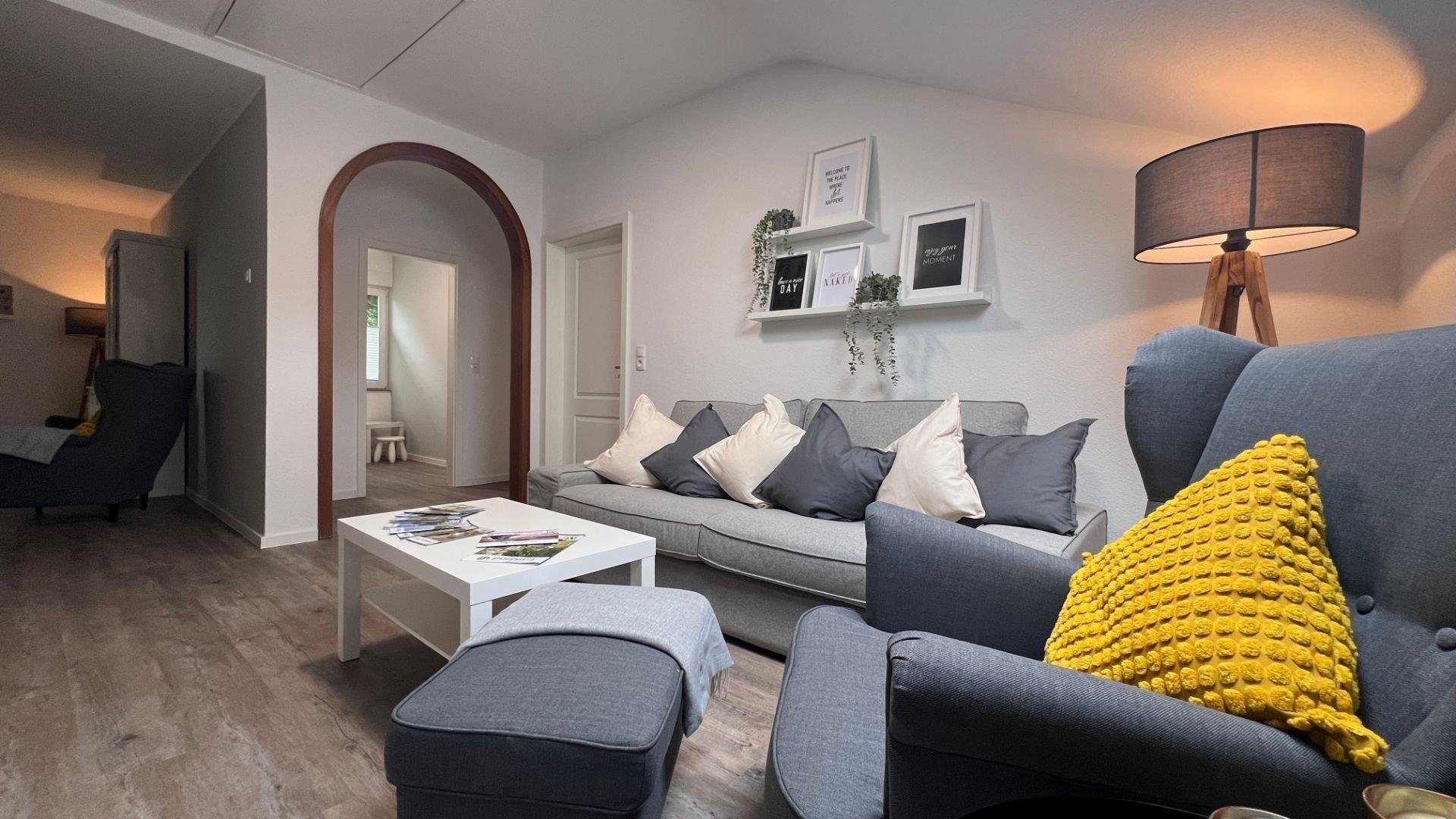 Drei liebevoll eingerichtete Schlafzimmer mit hochwertigen Boxspringbetten, Smart-TV in jedem Raum und viel Stauraum machen diese Wohnung ideal für Familien oder befreundete Paare. Die offene Küche mit großem Essbereich lädt zum gemeinsamen Kochen ein perfekt für gesellige Abende. Ein modernes Bad mit Dusche rundet den Komfort ab. Highlight ist die 8?m² große, möblierte Dachterrasse mit schönem Ausblick ins Grüne. Der Garten mit Sitzecken, Grillplatz und Feuerstelle steht euch jederzeit offen.