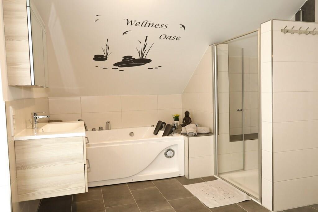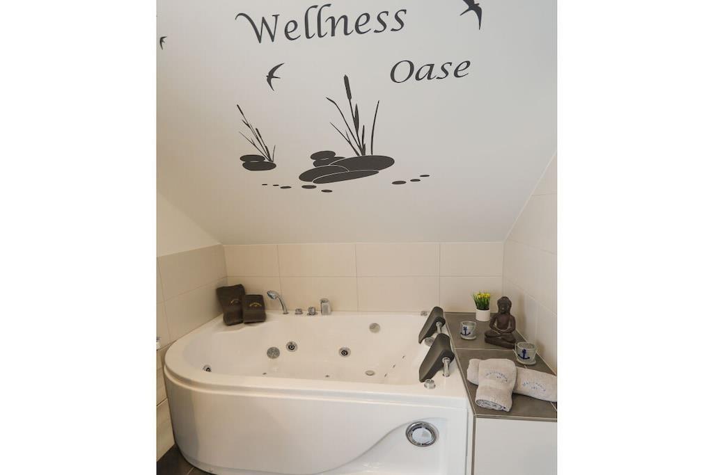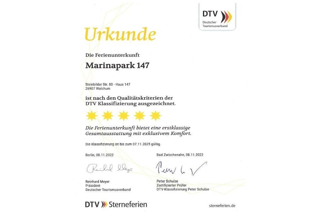 Unser beliebtes Ferienhaus Marinapark 147 befindet sich direkt im idyllischen Yachthafen von Walchum und bietet auf 109 qm bis zu 6 Personen + Baby reichlich Platz. Es erwartet Sie ein exklusives 5-Sterne Feriendomizil mit eigener Sauna, Whirlpool und Garten, nahe der Ems und dem beliebten Emsradweg! Das Ferienhaus Marinapark 147 im Detail: Das exklusive Feriendomizil bietet Ihnen auf zwei Etagen das ganze Jahr über ein attraktives Zuhause auf Zeit. Durch die besondere Lage mit unverbautem Weitblick, können Sie naturnah und absolut ruhig Ihre Auszeit genießen. Das schöne Emsland und die nahe Umgebung von Walchum bieten Ihnen zahlreiche Freizeitaktivitäten für die ganze Familie. Auch Ihr Hund ist auf Anfrage ein gern gesehener Gast. Das EG verfügt über ein sehr geräumiges Wohnzimmer und eine komplett ausgestattete, offene Küche mit einladendem Essbereich. Ebenfalls im EG befindet sich ein geräumiges Schlafzimmer mit großem Doppelbett (180×200) und Smart-TV und einem anliegendem Tageslichtbad mit Dusche und WC. Im OG des Hauses liegt ein zweites Schlafzimmer mit großem Doppelbett (180×200) und Smart-TV und das Schlafzimmer Nr. 3 mit 2 bequemen Einzelbetten (80×200). Ein absoluter Traum ist hier das große moderne Wellnessbad mit finnischer Sauna, einem Whirlpool für 2 Personen und 2 komfortablen Waschtischen. Im Außenbereich finden Sie unsere große und teilüberdachte Sonnenterrasse mit bequemen Gartenmöbeln und Grillmöglichkeit. Genießen Sie hier Geselligkeit oder ein Glas Wein in den Abendstunden bei wunderschönen Sonnenuntergängen. Die Rasenfläche des Gartens lädt zum Spielen und Erholen ein. Außerdem: - Gratis Parken für 2 PKW direkt am Haus. - Gratis WLAN im gesamten Ferienhaus. - Abschließbarer Raum für Fahrräder sowie Lademöglichkeit für E-Bikes. - Waschen Sie in der verfügbaren Waschmaschine. - Kein Durchgangsverkehr im Park, da dieser mit einer Schrankenanlage gesichert ist.