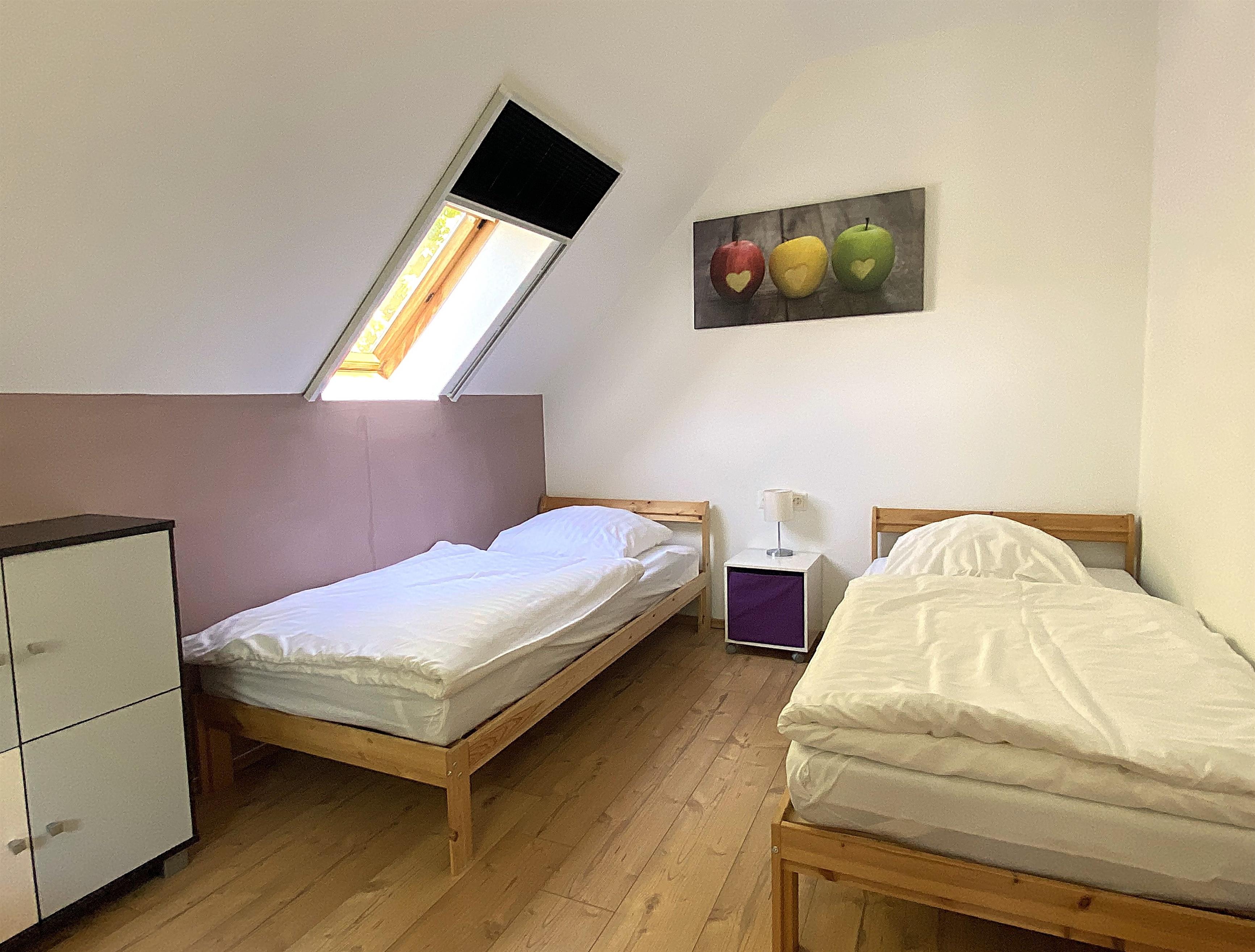Der Park besteht aus 15 gemütlichen Doppelhäusern und einem Haupthaus mit modernen Ferienwohnungen. Dieses Ferienhaus (Haus Nr. 1) bietet Platz für 7 Personen und überzeugt durch großzügige, helle Räume, einen eigenen Eingang, eine Terrasse mit Grill sowie einen Kaminofen für gemütliche Abende. Die voll ausgestattete Küche mit Spülmaschine und der zentrale Esstisch sorgen für Komfort und gemeinsame Erlebnisse.