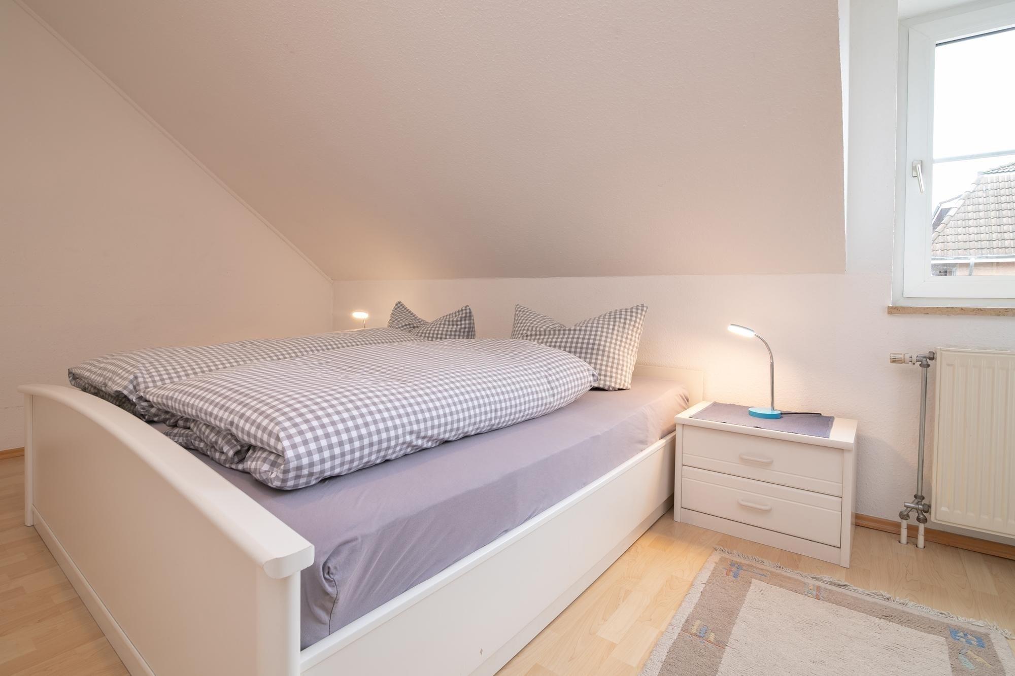 Es ist modern eingerichtet. Es gibt einen Schlafraum mit einem Doppelbett (2x 90x200 cm), in dem bei Bedarf für ein Kind ein Zustellbett (90x200 cm) aufgestellt werden kann und einen Schlafraum mit zwei Einzelbetten (je 90x200 cm).