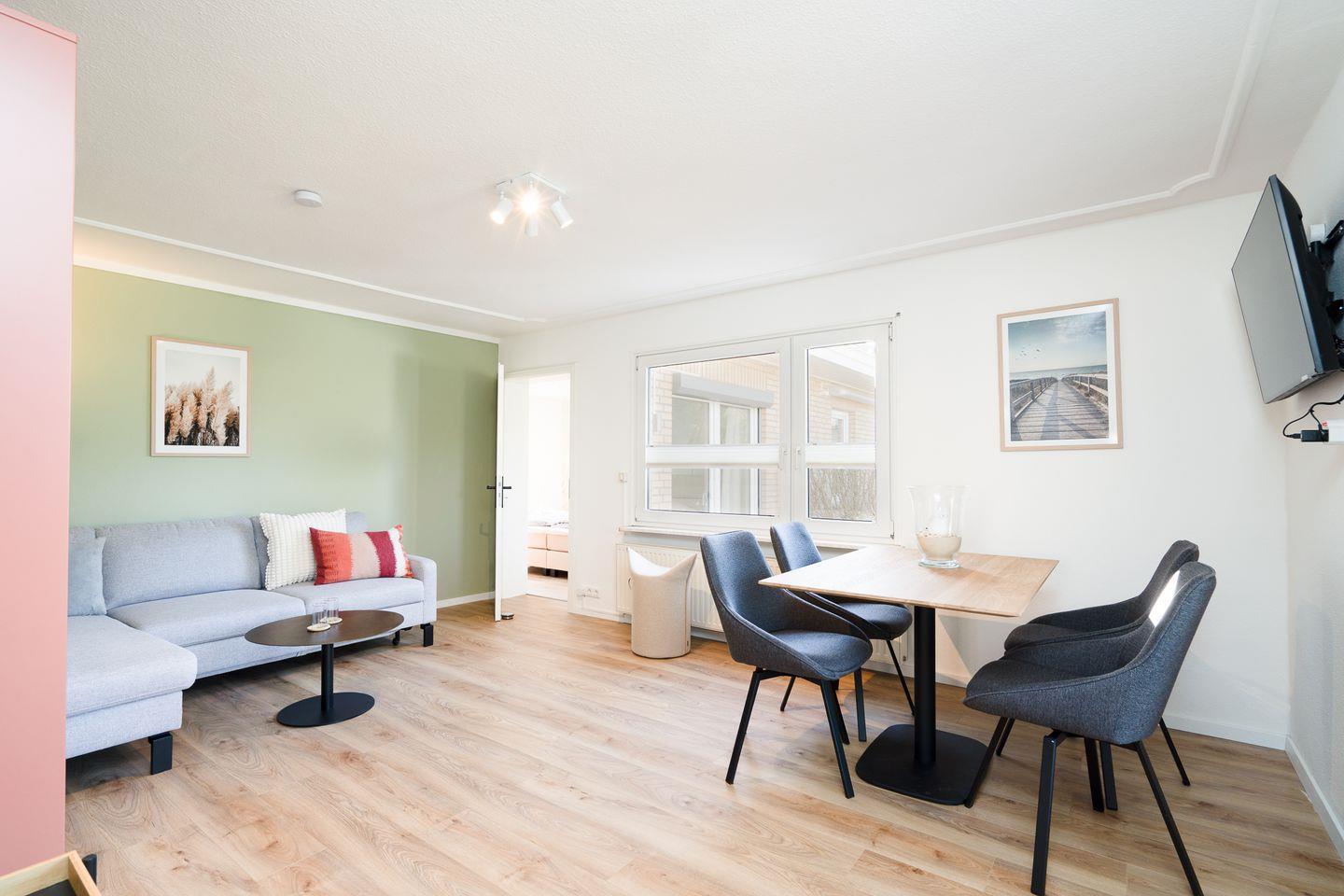 Herzlich willkommen im frisch renovierten Appartement Düne 9! Auf ca. 70 m² Wohnfläche erwartet Euch ein stilvoll eingerichtetes Urlaubsdomizil mit Platz für bis zu 5 Personen. Umgeben von gepflegten Hecken und einem hübsch angelegten eingezäunten Garten mit Sonnenliegen, Gartenmöbeln und Strandkorb, genießt Ihr hier viel Privatsphäre und echtes Urlaubsfeeling. Die Unterkunft liegt nur ca. 900 Meter vom Strand, dem Meer, Einkaufsmöglichkeiten und Restaurants entfernt – ideal für entspannte Strandtage und schöne Spaziergänge. Auch ein eigener Carport gehört dazu. WLAN (kostenfrei, bei Störungen kein Anspruch auf Erstattung oder Ersatz), drei Fernseher und eine voll ausgestattete Küche sorgen für modernen Komfort. Haustiere sind herzlich willkommen – so wird der Ostseeurlaub mit Hund perfekt!