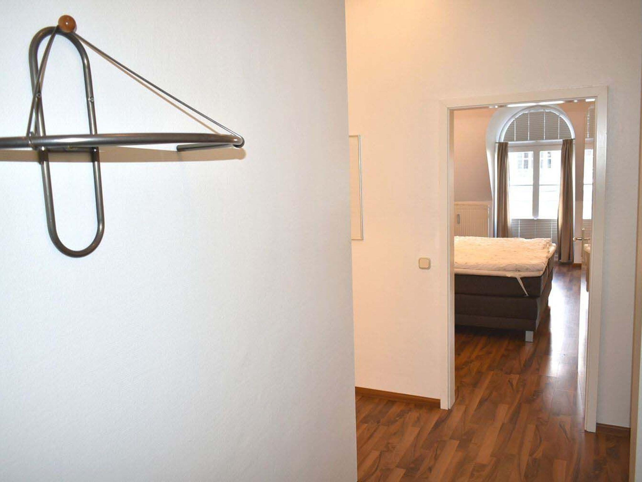 Schlafzimmer 1: 2 Matratzen, 2 Nachttische, 2 Stühle, Boxspringbett 2,00 x 1,80 m, Bügelbrett, Kleiderschrank, Radiowecker, Spiegel, Staubsauger, Verdunklungsplissee, Wäscheständer