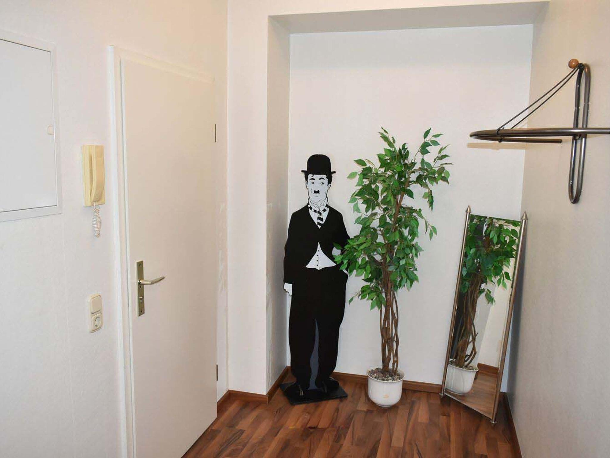 Flur: Abstellnische, Garderobe, Spiegel, Stuhl