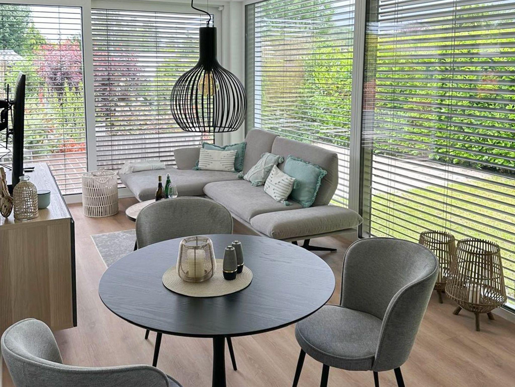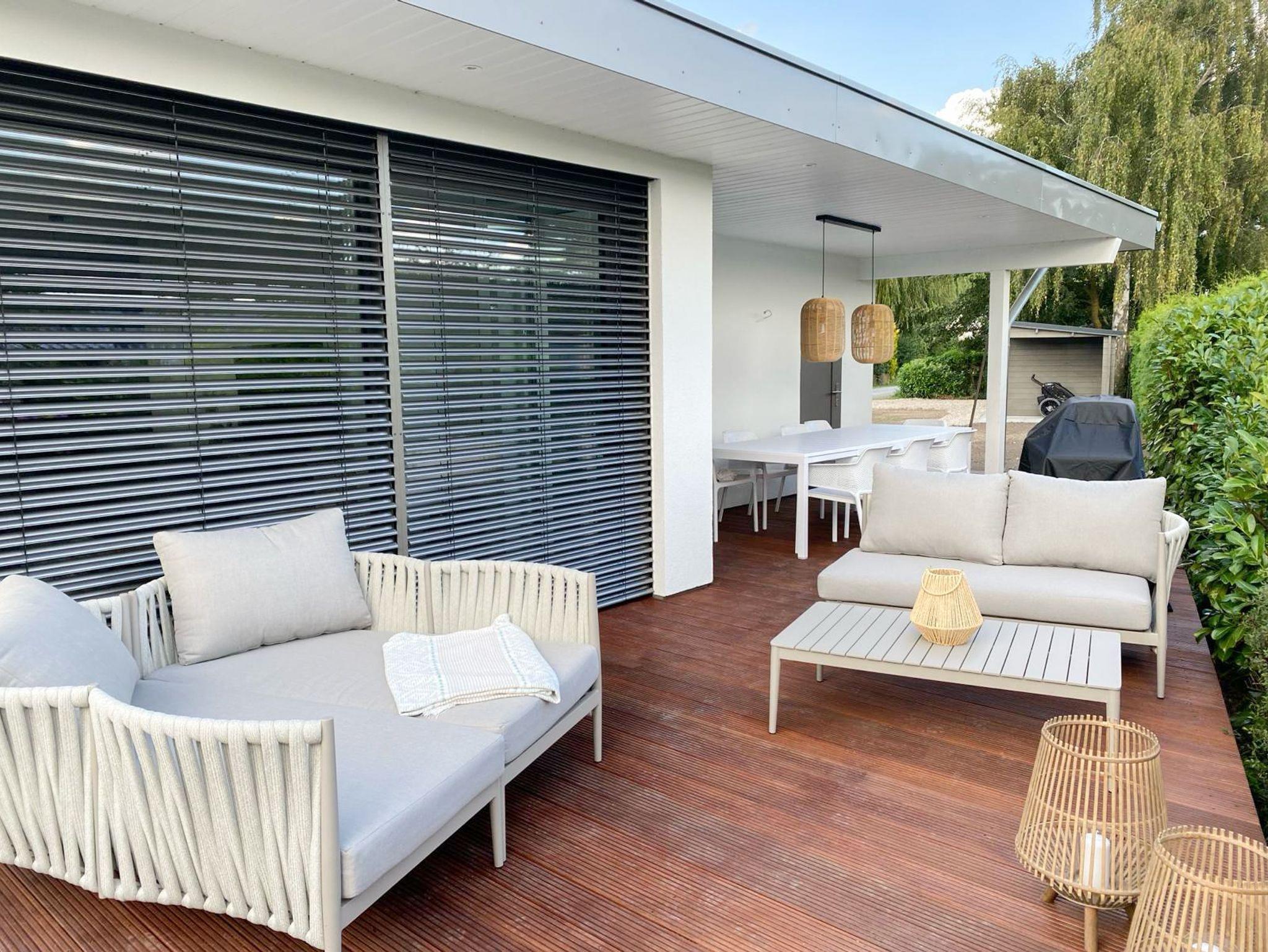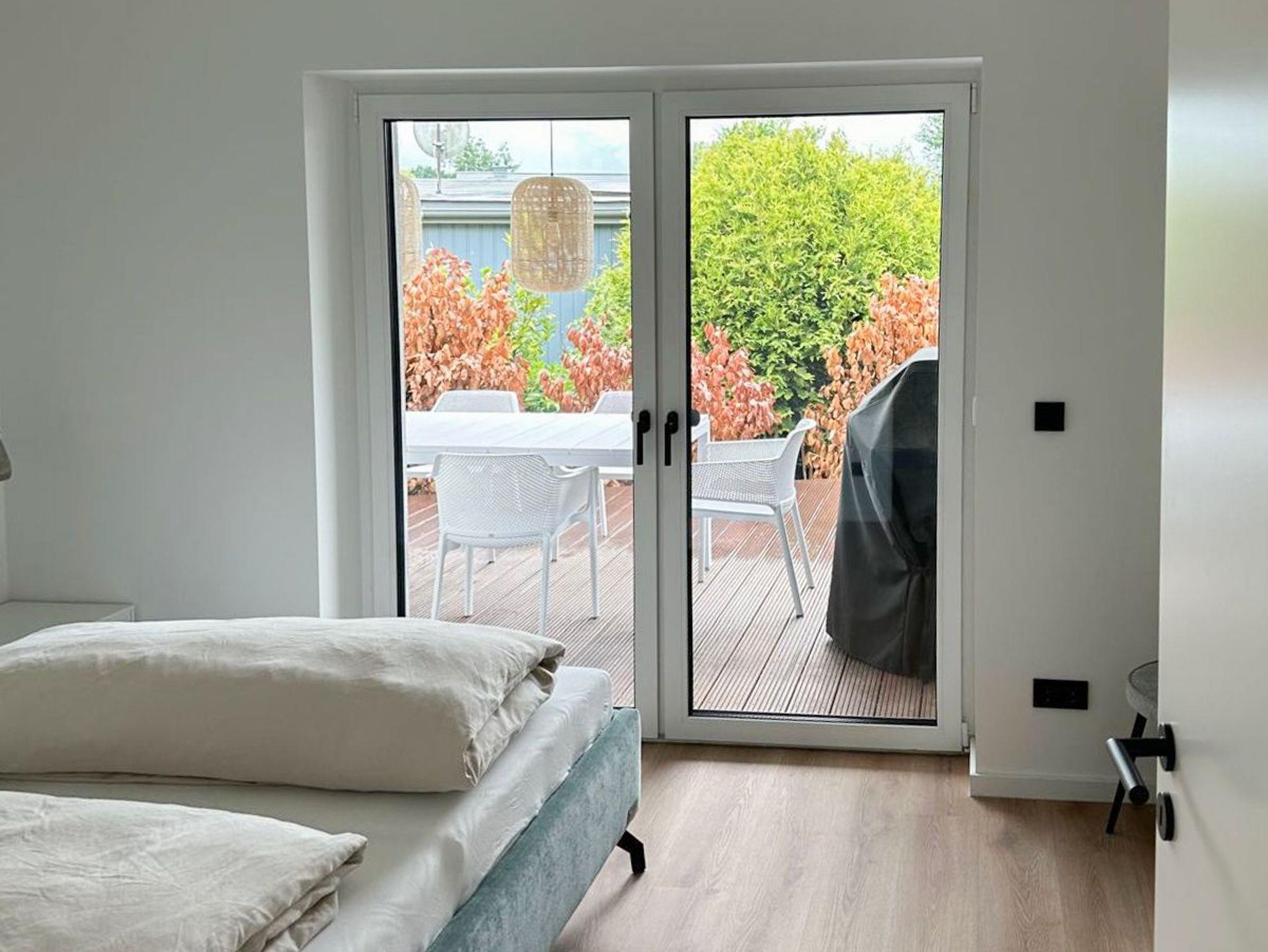 Vollständig entkernt und aufwendig renoviert in 2024, erwartet Sie das Yachthus auf einem 700qm großem, eingezäuntem Grundstück und einer 40qm großen Holzterrasse in Südwestausrichtung. Das Ferienhaus bietet zeitgemäßen Luxus für 2 Personen und jeglichen Komfort wie Fußbodenheizung, elektrische Raffstores und bodentiefe Fensterelemente für ein offenes Raumgefühl. Die äußerst geschmackvolle Einrichtung und die exklusive Ausstattung gewährleisten einen hohen Wohnstandard in einem herrlichen Ambiente. Es erwartet Sie eine perfekt ausgestattete Wohnküche mit anschließendem Ess- und Wohnbereich mit schönem Blick in den Garten und auf die äußerst großzügig angelegte Holzterrasse. Das traumhafte Sonnendeck ist mit einem Essbereich sowie gemütlichen Loungemöbeln ausgestattet und ist ein echtes Highlight mit teilweiser Überdachung und windgeschütztem Bereich für viele entspannte Stunden im Freien. Das separate Schlafzimmer ist mit einem Doppelbett (180x200) und einem großen Kleiderschrank eingerichtet.[nbsp] Das edel gestaltete Bad ist mit einer großen bodengleichen Dusche, Waschtisch, WC, Fenster und integriertem Radio ausgestattet. Alle Fenster sind bodentief und mit elektrischen Raffstores versehen, die gleichermaßen für Verdunkelung, Sonnenschutz oder Tageslicht mit Privatsphäre sorgen. Ein Smart TV, eine Sonos Box, Radio und WLAN gehören zur technischen Ausstattung. Ein kombinierter Waschtrocker ist in einem separaten Raum neben der Terrasse untergebracht. 2 Parkplätze befinden sich auf dem Grundstück.