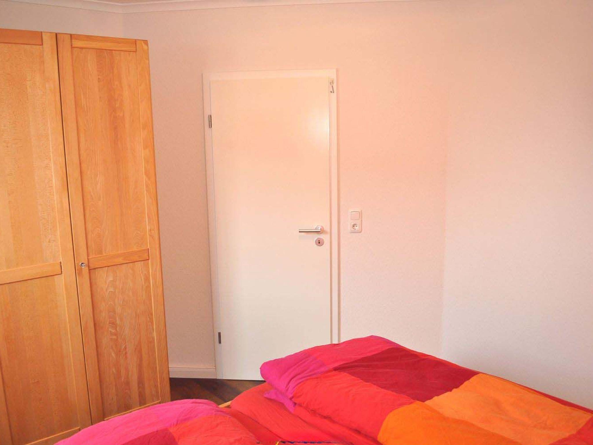 Schlafzimmer 1: 2 Matratzen, 2 Nachttische, 2 Nachttischlampen, Doppelbett 2,00 x 2,00 m, Kleiderschrank