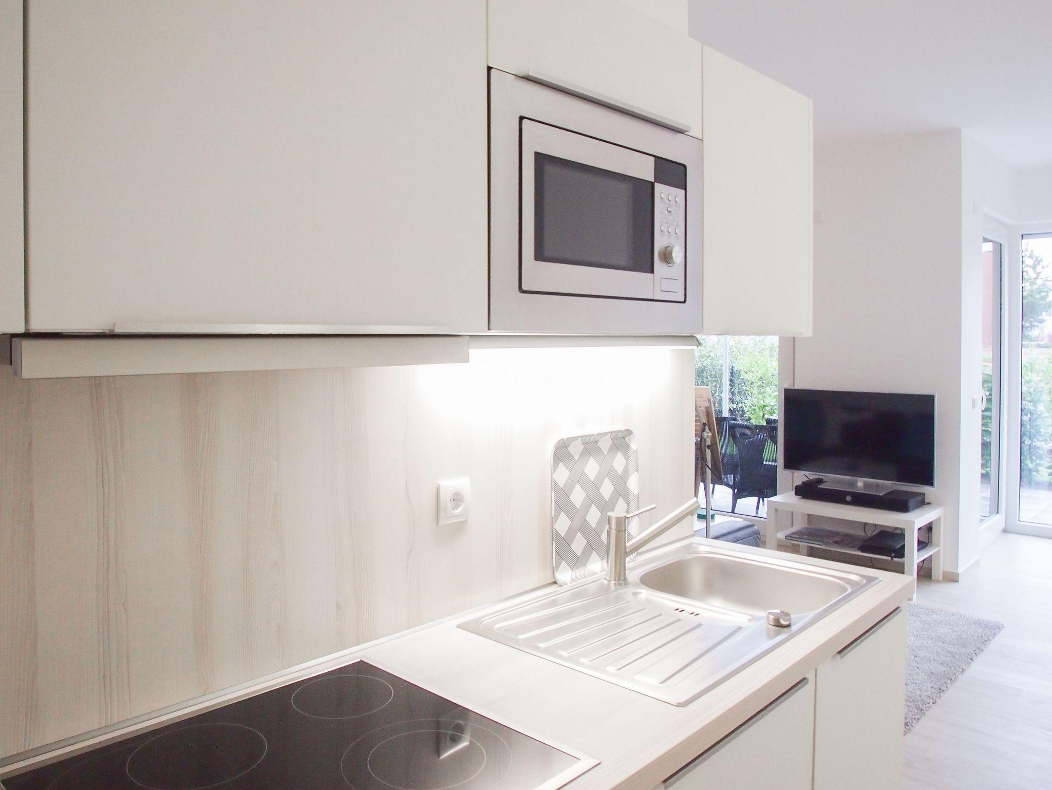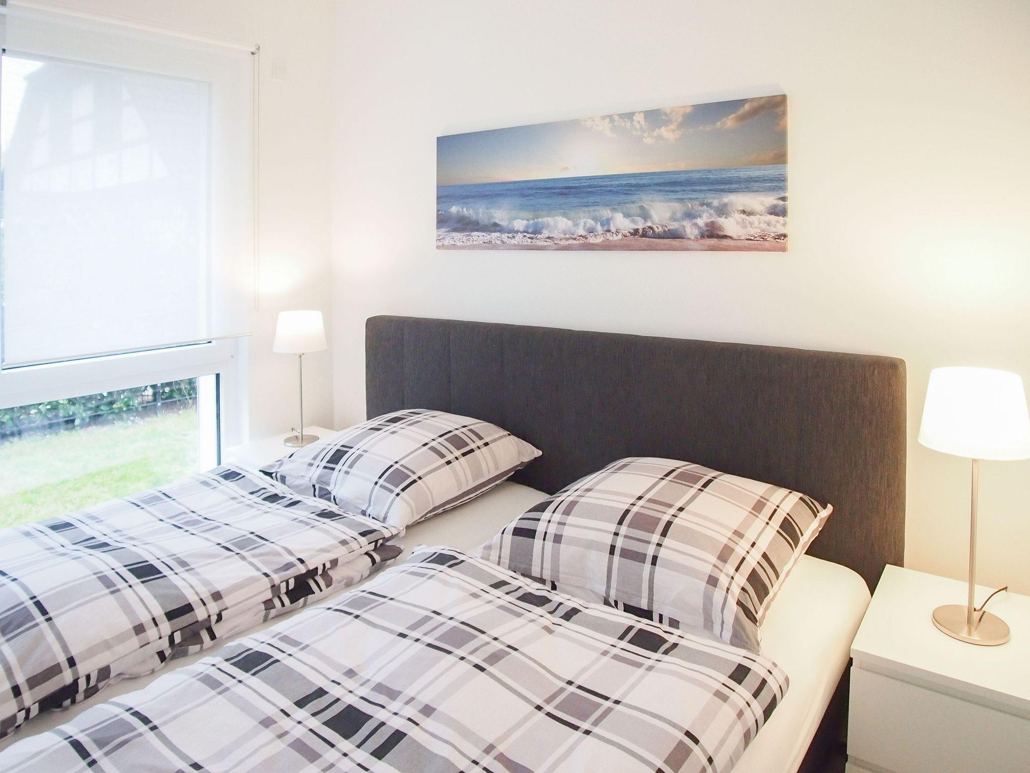 Diese Ferienwohnung befindet sich im Erdgeschoss[nbsp][nbsp]nur ca. 100 Meter vom Ostseestrand entfernt. Die Einrichtung ist sehr hochwertig sowie komfortabel und auf 2-3 Personen (plus Kleinkind) ausgerichtet. Bodentiefe Fensterelemente sorgen für helle, sonnige Räumlichkeiten und die Fußbodenheizung für ein angenehmes Raumklima. Alle Fenster sind[nbsp] mit elektrischen Außenjalousien versehen. Es erwartet Sie eine bestens ausgestattete Einbauküche mit angrenzendem Essbereich sowie ein geschmackvoll eingerichtetes Wohnzimmer mit hochwertiger Ledergarnitur mit Schlaffunktion und TV (Heimkino für optimale Klangqualität). Kostenloser Internetzugang steht über WLAN zur Verfügung. Die vorgelagerte über 20 qm große Südterrasse mit kleinem Gartenanteil ist teilweise überdacht und lädt zu jeder Tageszeit zum Entspannen ein. Gartenmöbel und Sonnenliegen sind vorhanden. Das separate Schlafzimmer ist mit einem hochwertigem Boxspringbett (180x200), einem zusätzlichem TV sowie einem großen Einbauschrank mit viel Staufläche ausgestattet. Ein modernes Duschbad mit viel Tageslicht rundet das Angebot ab.