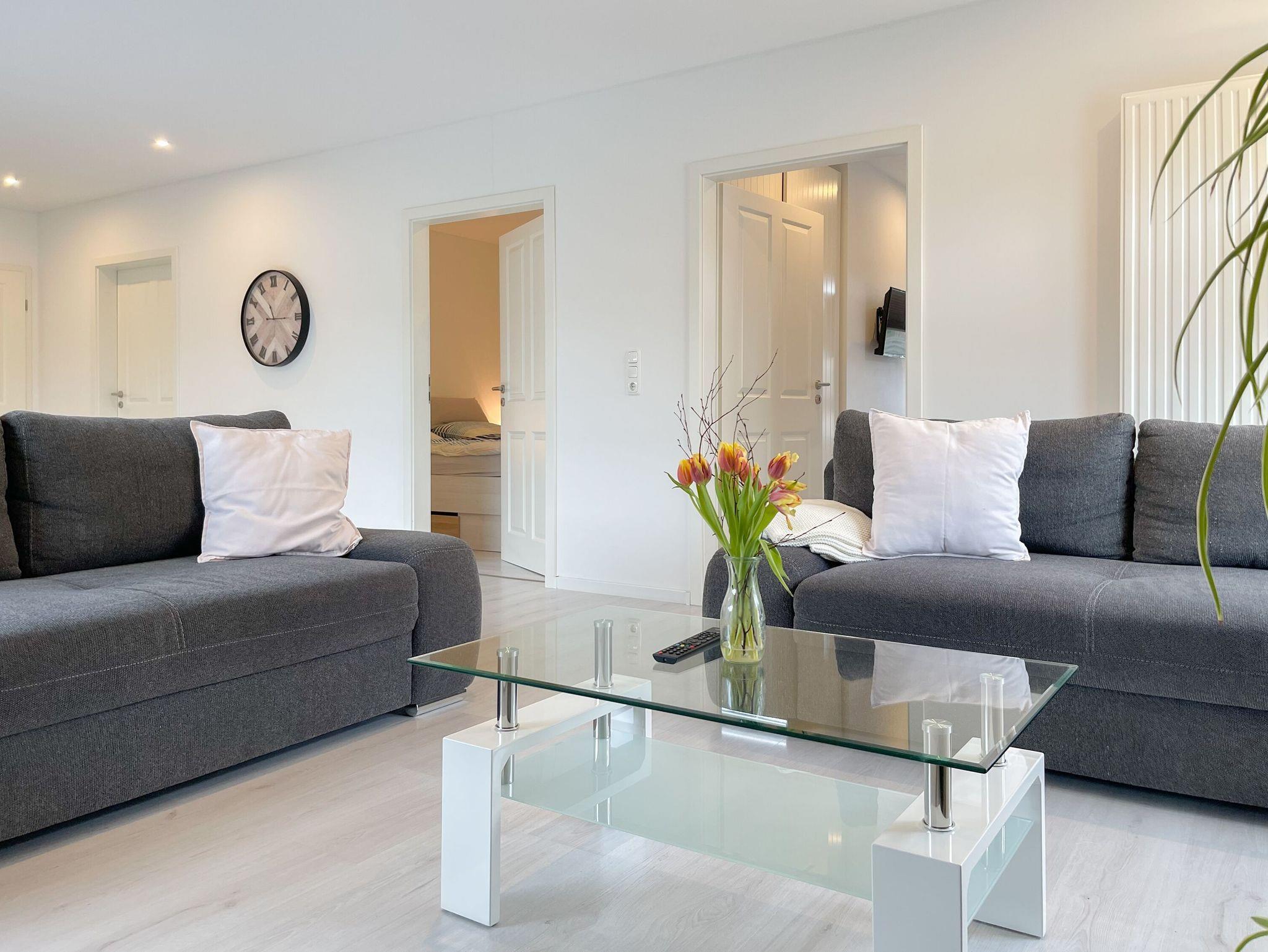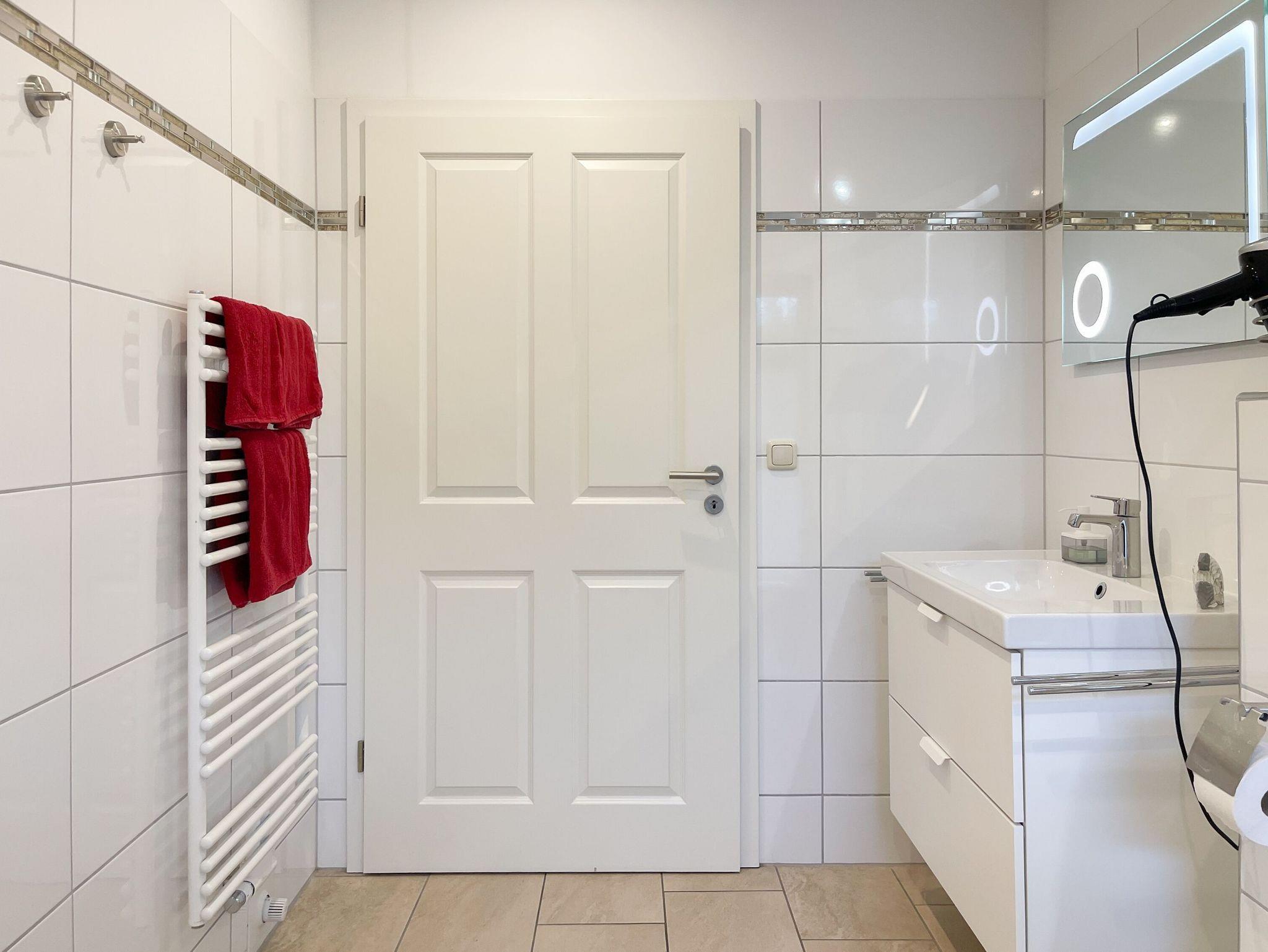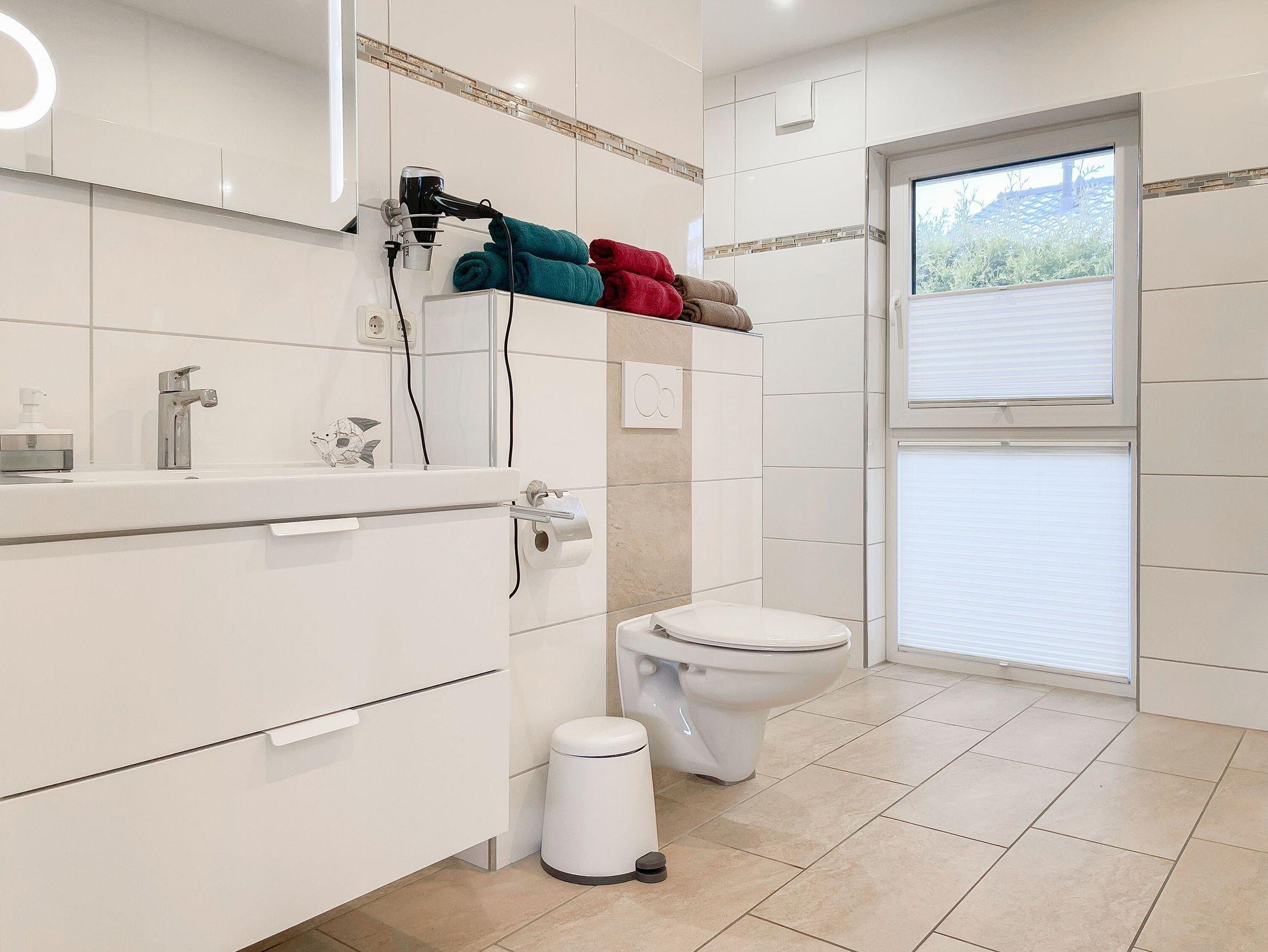 Zwei separate Schlafzimmer sorgen für erholsame Nächte. Das Elternschlafzimmer ist mit einem gemütlichen Doppelbett (180x200 cm) ausgestattet, das zweite Zimmer bietet zwei Einzelbetten (je 90x200 cm). Beide Zimmer verfügen über Verdunkelungsplissees und einen eigenen Fernseher. Das überaus großzügige Badezimmer überzeugt mit Fussbodenheizung und bodentiefen Fenster, einer ebenerdigen XXL-Walk-in-Dusche, und ein zusätzliches Gäste-WC befindet sich im Eingangsbereich.