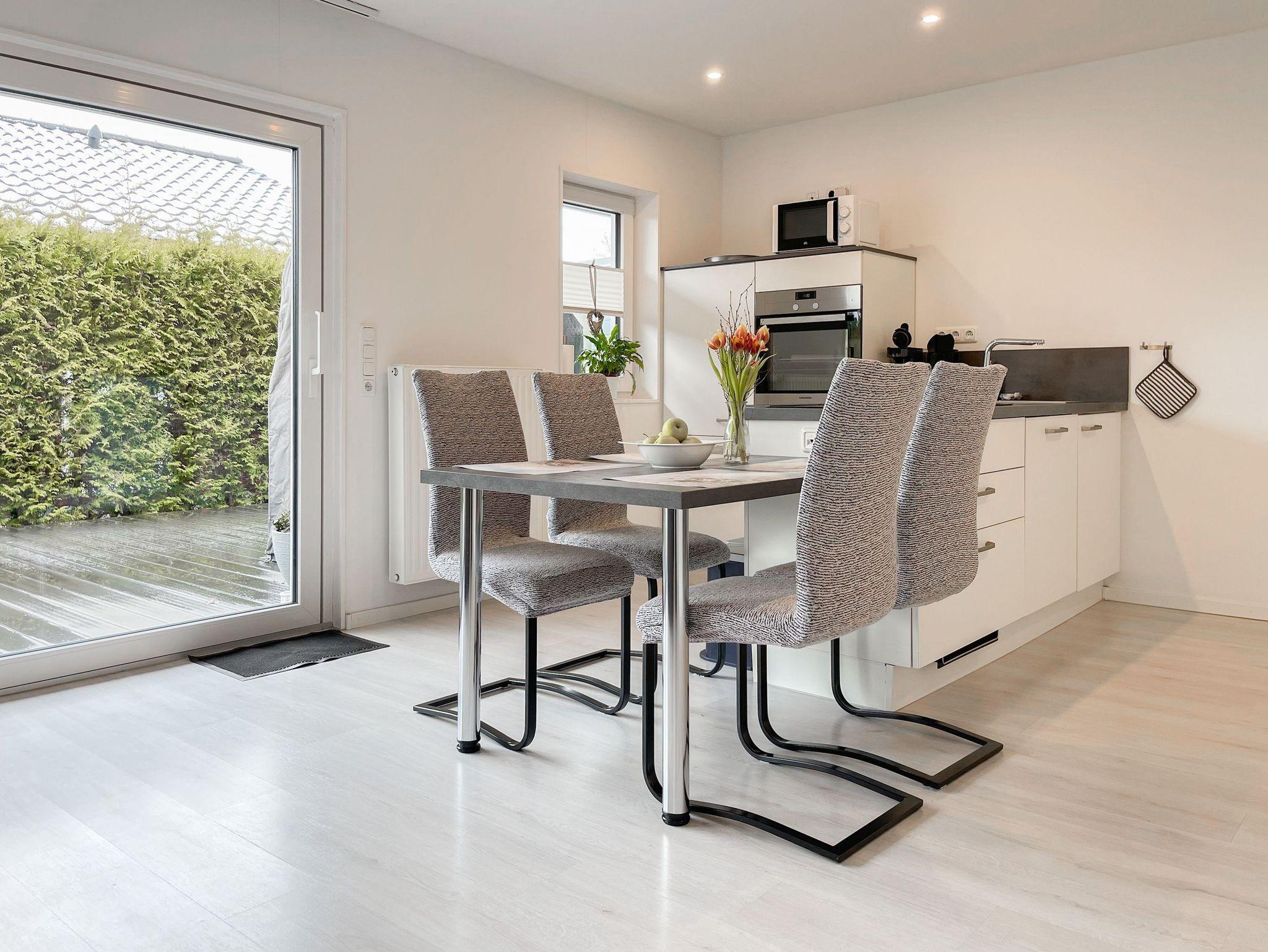 Das familienfreundliche Haus bietet auf ca. 90 m² Platz für bis zu 4 Personen und schafft mit seinem durchdachten Grundriss eine behagliche Wohlfühlatmosphäre. Im großzügigen Wohnbereich sorgen der Kamin, Sat-TV, Radio mit USB und kostenfreies WLAN für gemütliche Stunden. Direkt angrenzend lädt der offene Essbereich mit Platz für vier Personen zum gemeinsamen Schlemmen ein. Die moderne Einbauküche ist bestens ausgestattet mit Spülmaschine, Backofen und Mikrowelle bleiben kaum Wünsche offen.