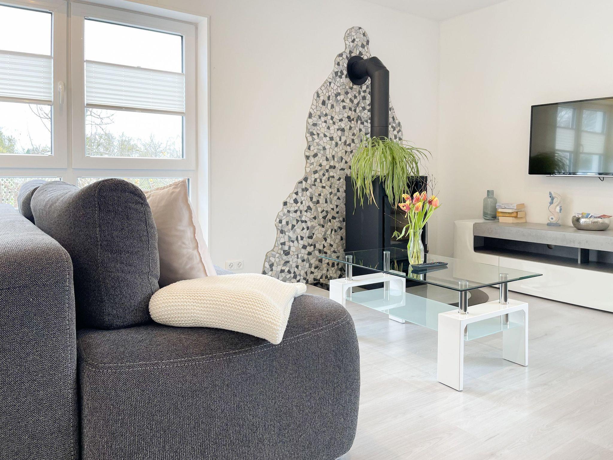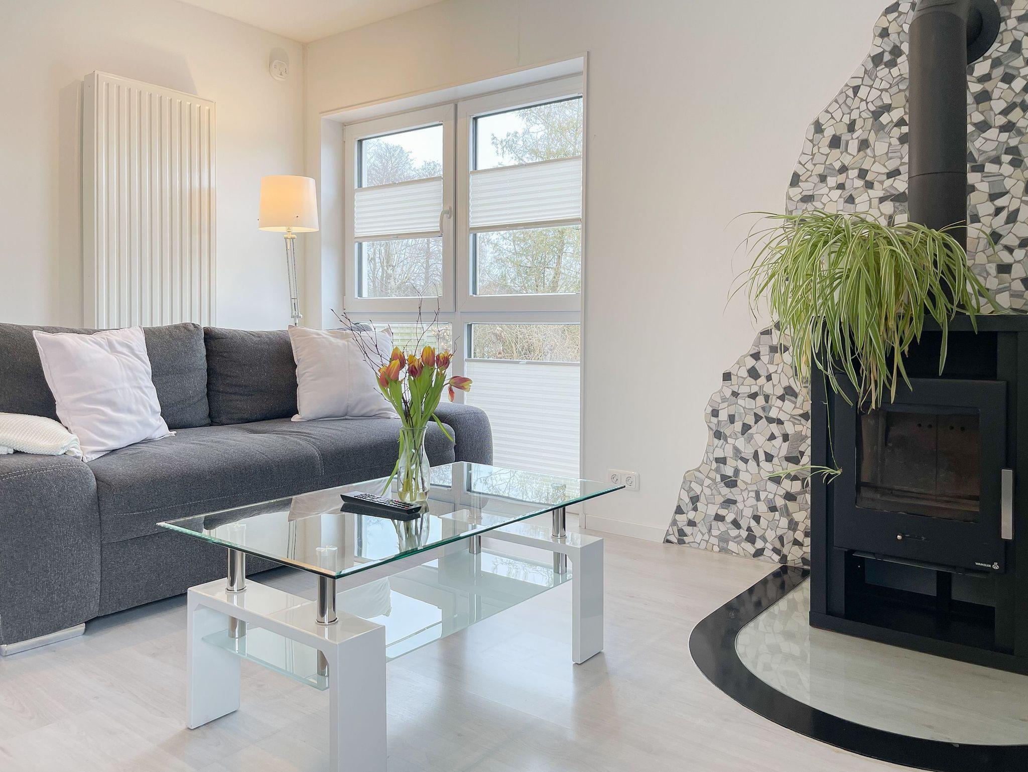 Das familienfreundliche Haus bietet auf ca. 90 m² Platz für bis zu 4 Personen und schafft mit seinem durchdachten Grundriss eine behagliche Wohlfühlatmosphäre. Im großzügigen Wohnbereich sorgen der Kamin, Sat-TV, Radio mit USB und kostenfreies WLAN für gemütliche Stunden. Direkt angrenzend lädt der offene Essbereich mit Platz für vier Personen zum gemeinsamen Schlemmen ein. Die moderne Einbauküche ist bestens ausgestattet ? mit Spülmaschine, Backofen und Mikrowelle bleiben kaum Wünsche offen.