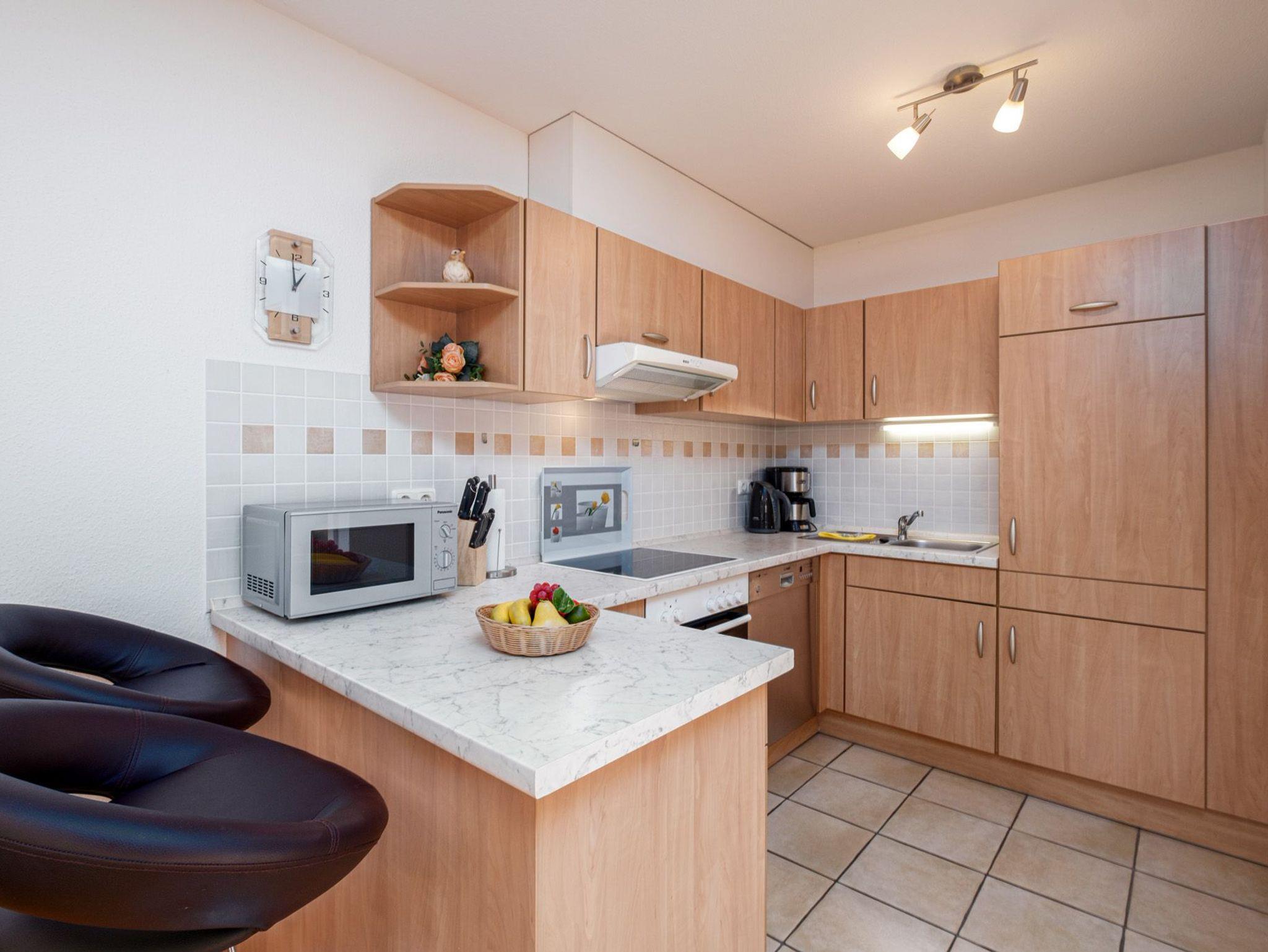 In der separaten Küche mit Geschirrspüler und Mikrowelle macht das gemeinsame Kochen viel Spaß.