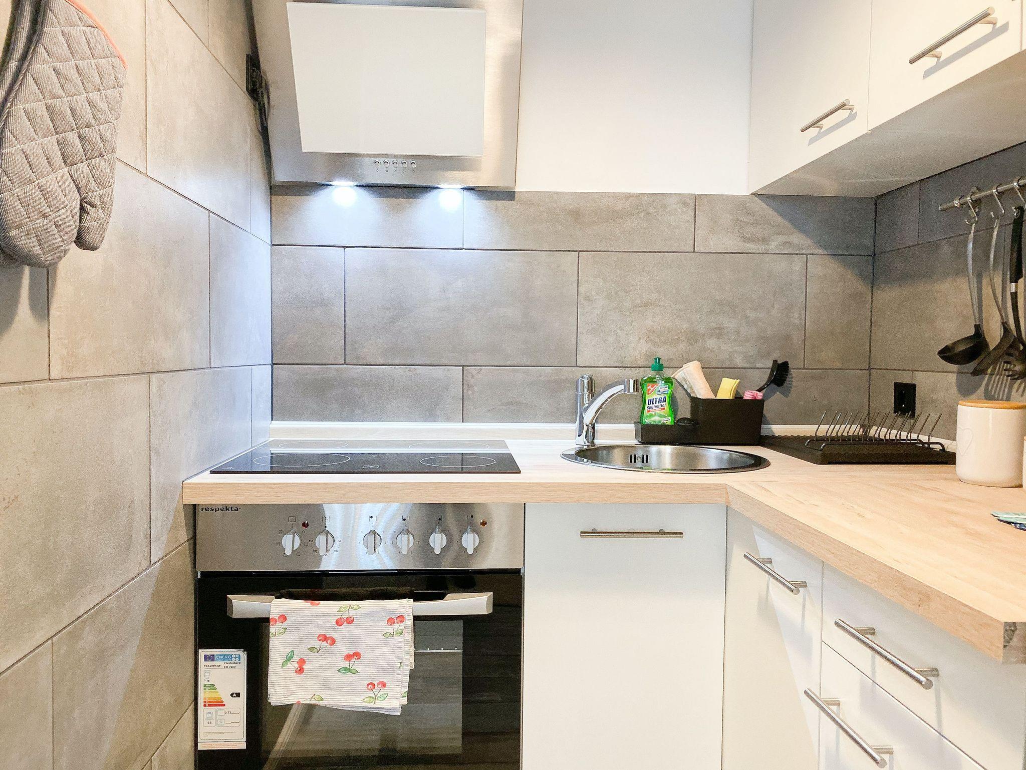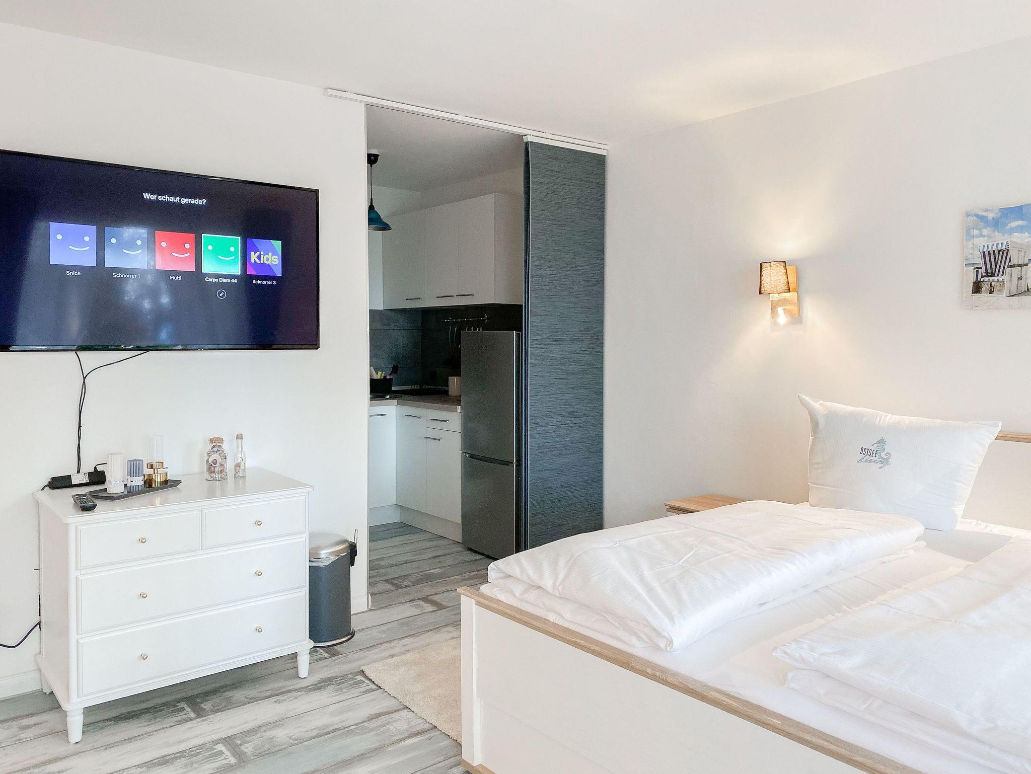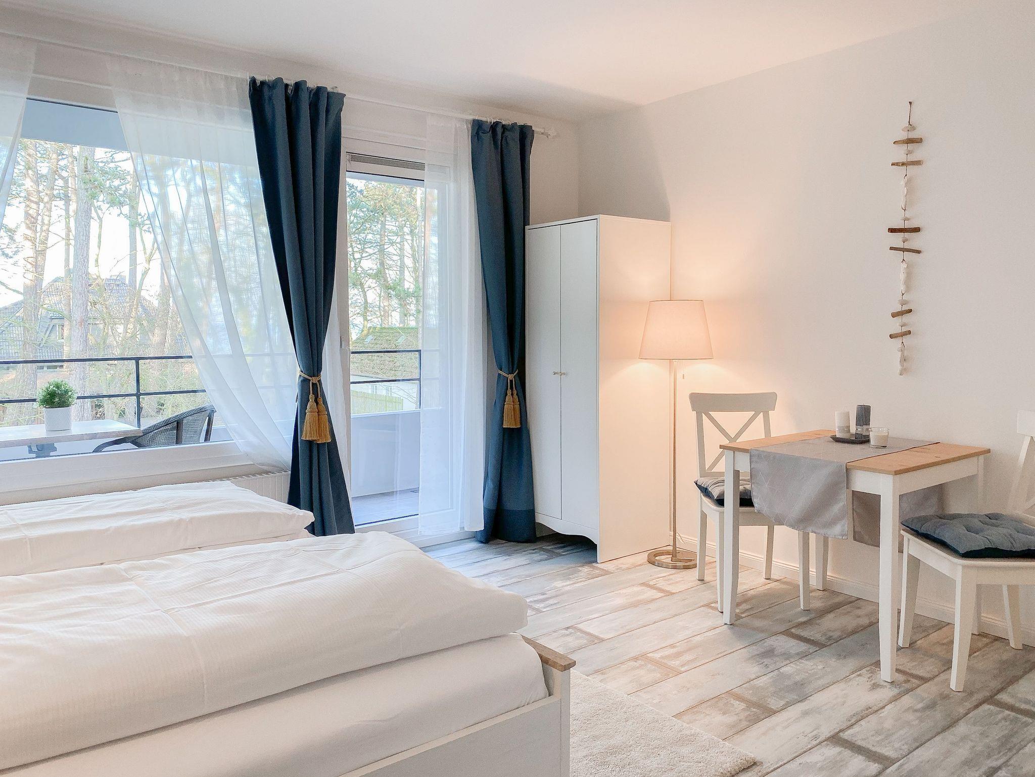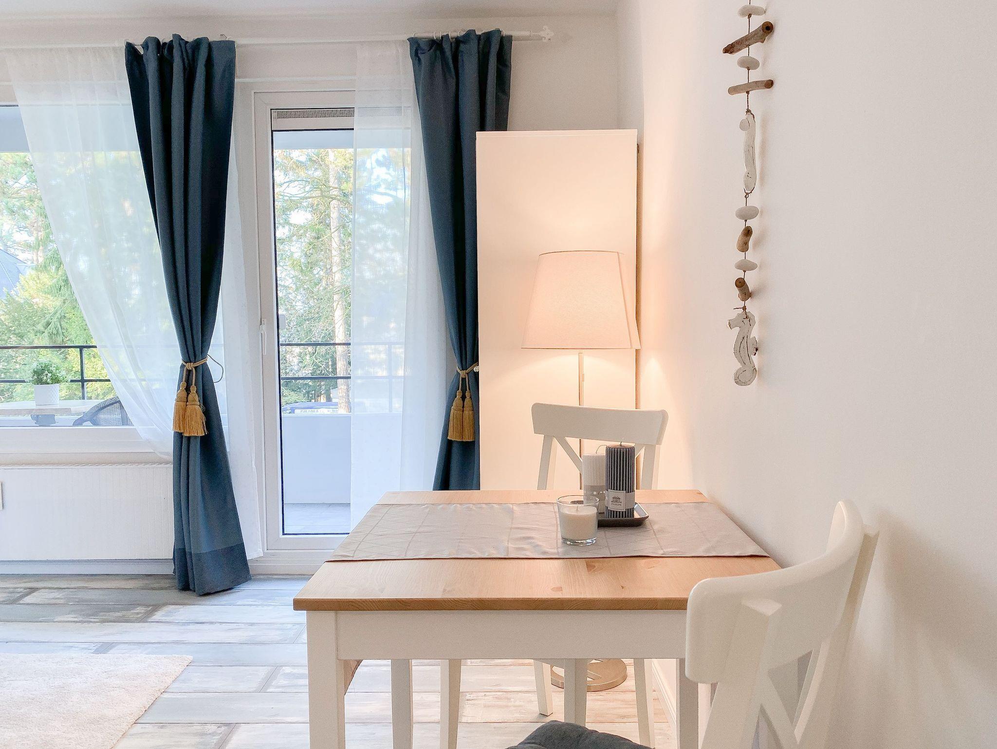 Beachstyle Studio mit einem[nbsp] Balkon zur Meerseite und einem schönen Teilmeerblick auf die Ostsee. Das Appartement ist mit einem Doppelbett (180x200), einem großen Flat TV und einem Essbereich für 2 Personen ausgestattet. Die offene, neue Einbauküche verfügt über ein Cerankochfeld, Dunstabzugshaube und einen Backofen. Das Bad ist mit einer Badewanne kombiniert mit einer Regendusche ausgestattet. Zur Wohnung gehört ein fester PKW Stellplatz. WLAN steht zur kostenlosen Nutzung in der gesamten Anlage zur Verfügung.