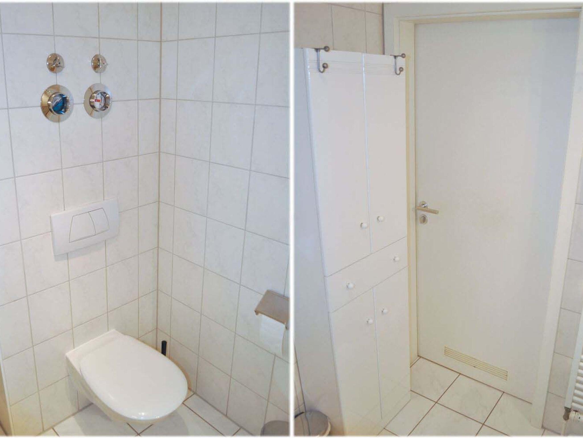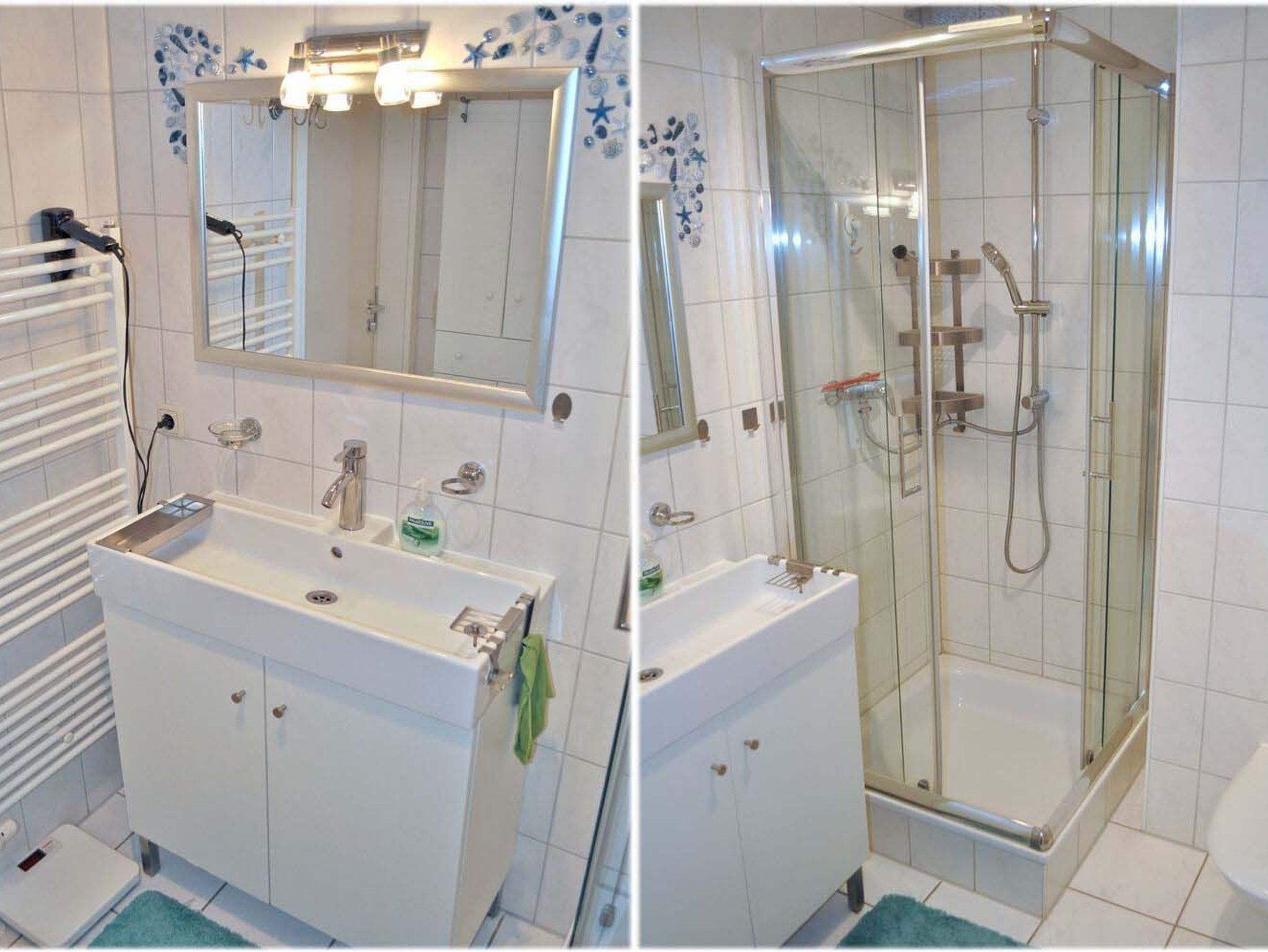 Bad 1: Dusche, Fön, Regendusche, Schrank, Spiegel, Waschtisch, WC