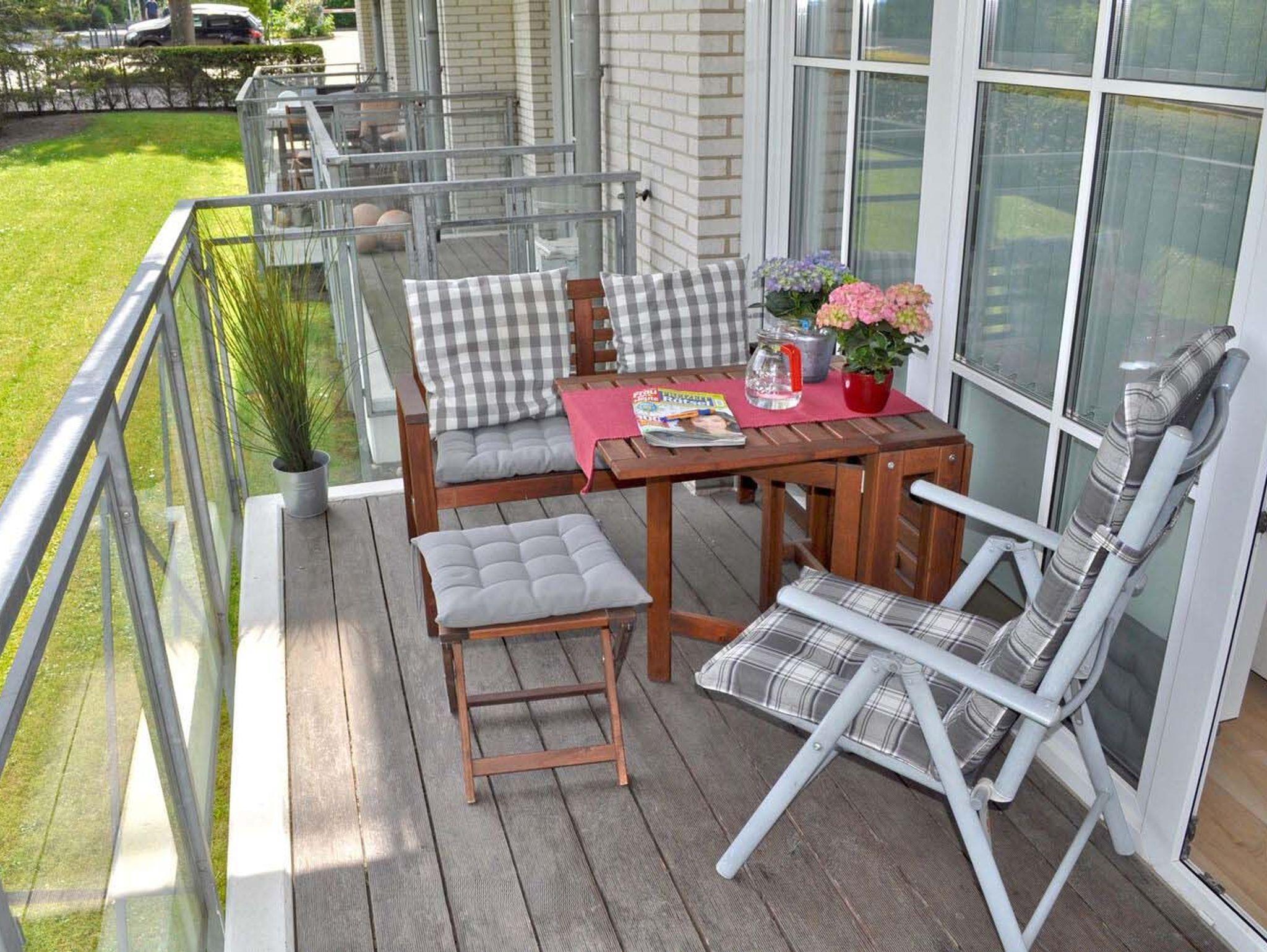 Balkon: 2 Stühle, Hocker, Nord- Ostlage, Tisch, überdacht, Wäscheständer