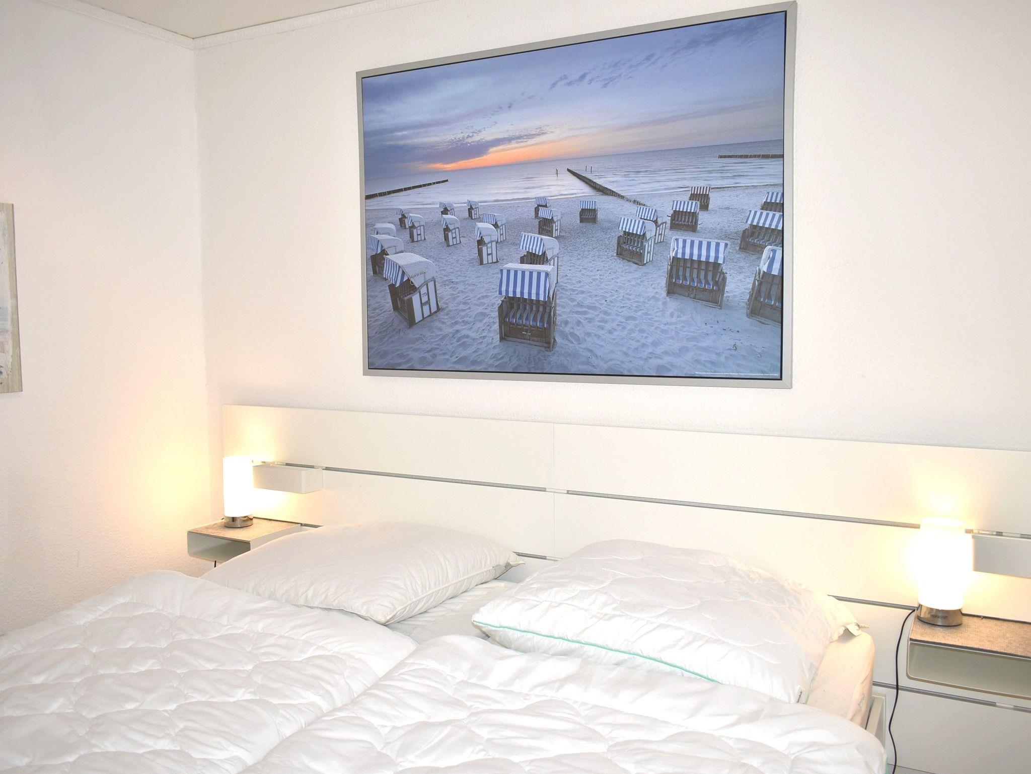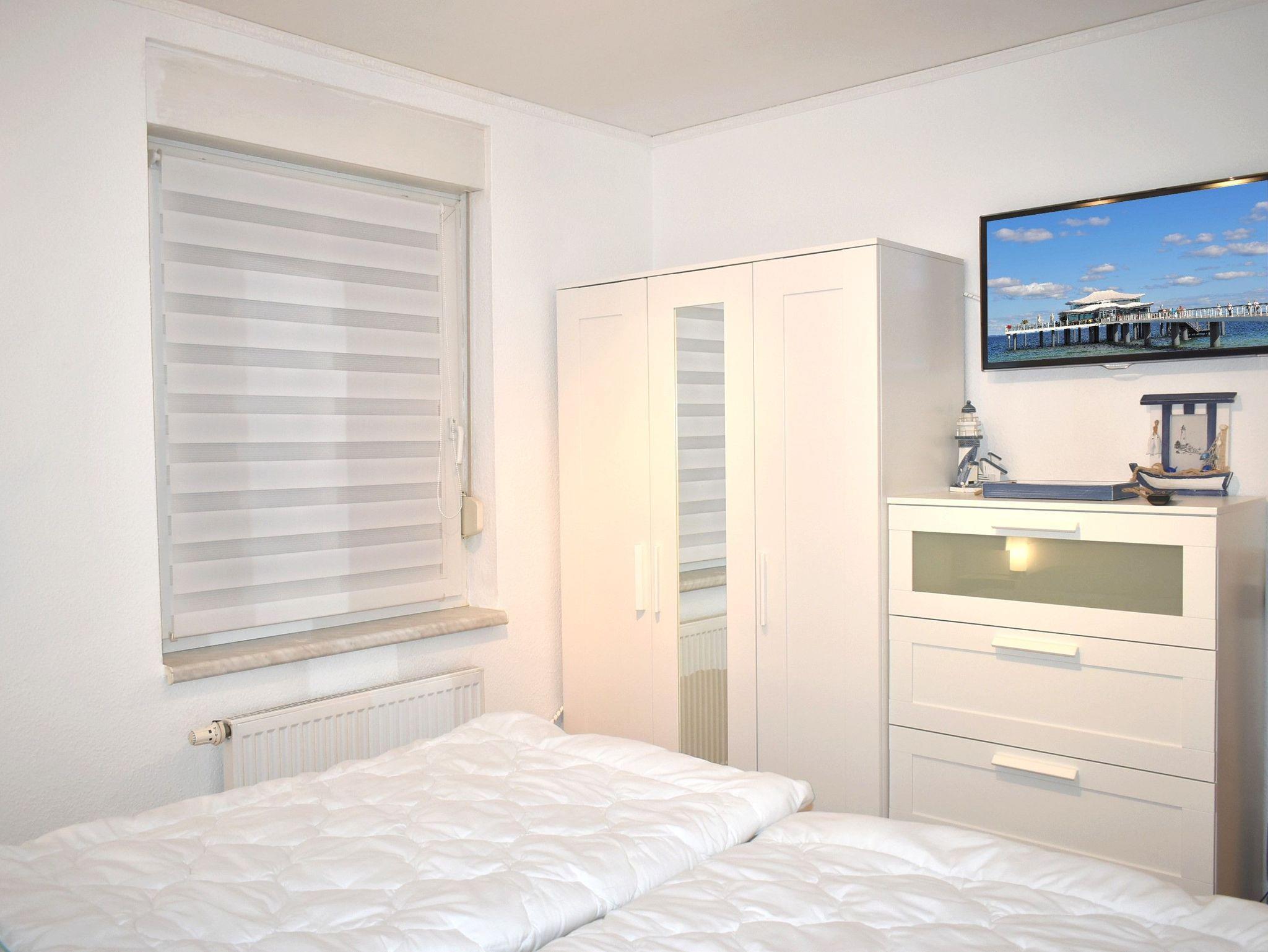 Schlafzimmer 1: 2 Matratzen, Doppelbett 2,00 x 1,80 m, Flachbildschirm, Kabel-TV, Kleiderschrank, Rollladen, Spiegel