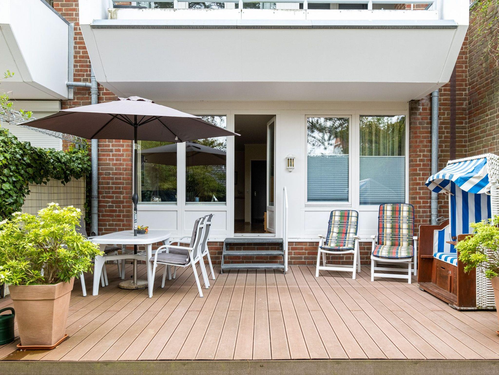 Freuen Sie sich auf eine große, nach Osten ausgerichtete Terrasse mit Strandkorb.