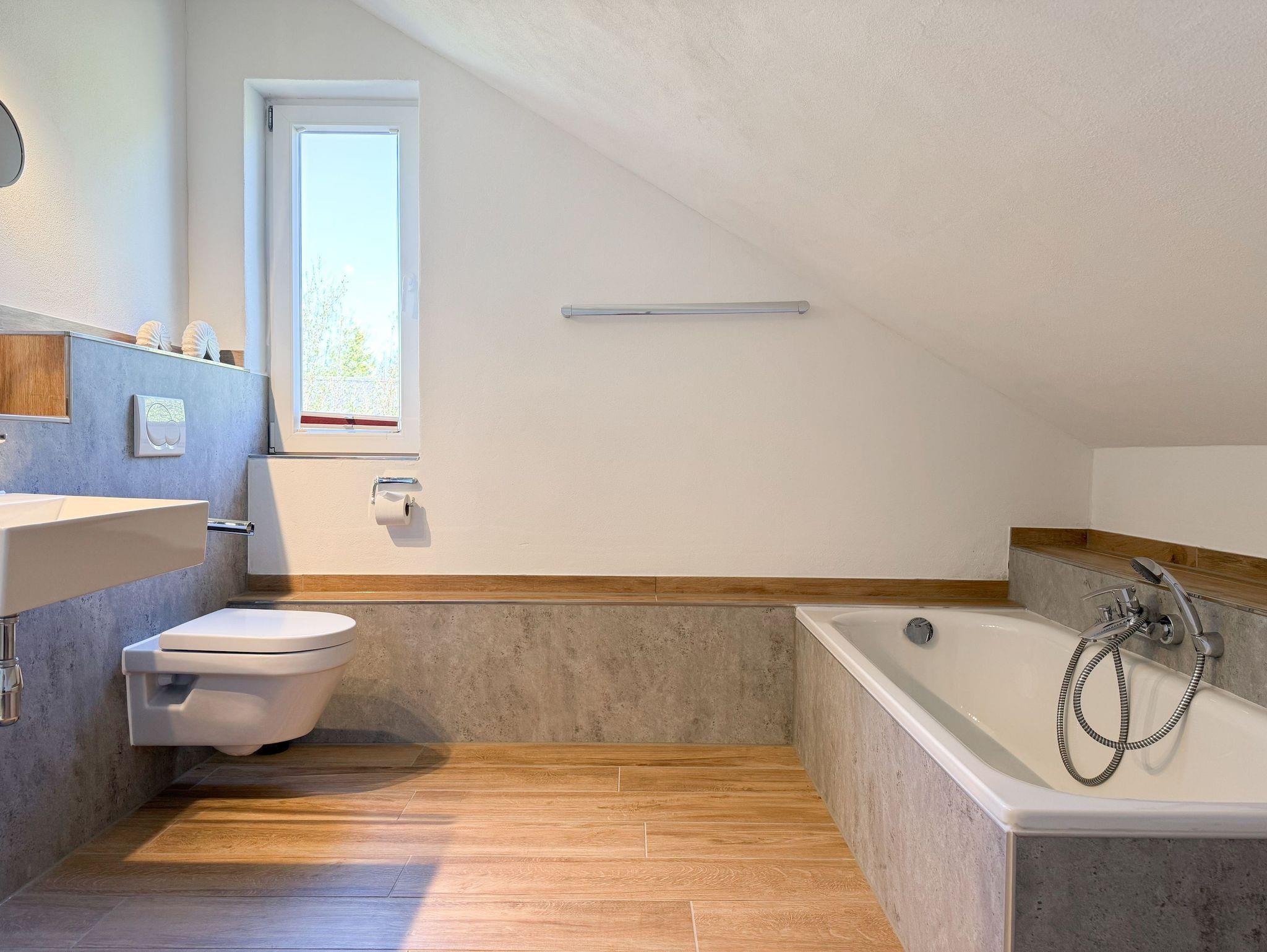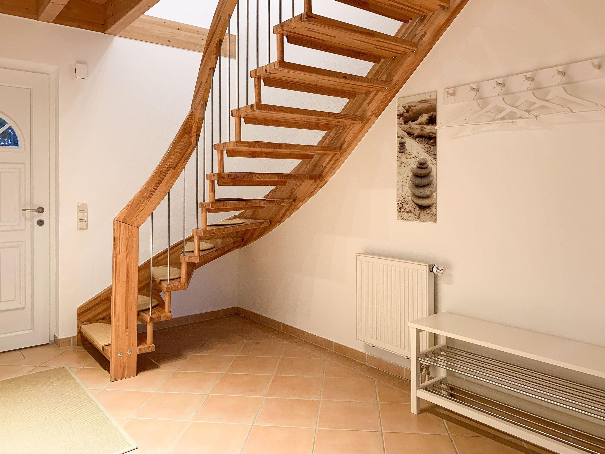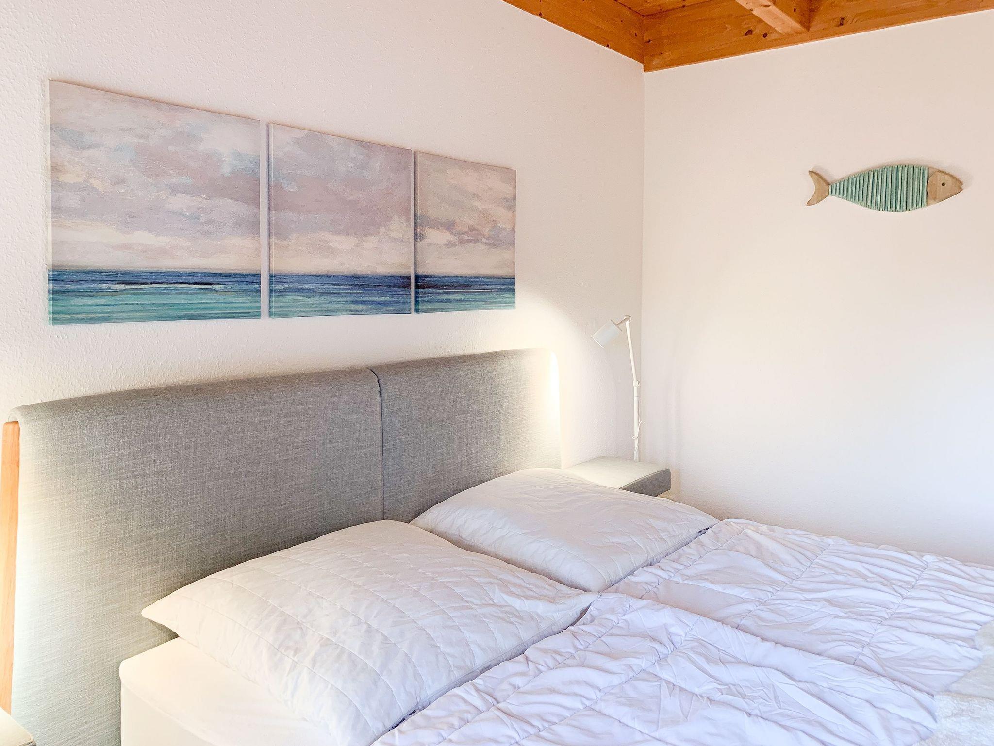 Das Ferienhaus Karlsson umgibt ein großer, eingezäunter Garten mit Spielgerüst, Gartensauna und schöner Holzterrasse, selbstverständlich[nbsp][nbsp]mit Gartenmöbeln und Sonnenliegen. Es eignet sich bestens auch für Familien mit Kindern. Auf 125 qm Wohnfläche bietet das Haus mit 3 separaten Schlafzimmern und 2 Bädern ausreichend Platz für 6 Personen plus Kleinkind. Im Erdgeschoss befindet sich der Wohnraum mit offener Einbauküche (Geschirrspüler, Backofen, Mikrowelle) und Essbereich für 6 Personen sowie der Zugang auf die großzügige Holzterrasse mit Süd Ausrichtung. Ein Schlafzimmer mit Doppelbett, ein Duschbad sowie der Hauswirtschaftsraum mit Waschmaschine und Trockner sind ebenfalls im EG untergebracht. Im Obergeschoss befinden sich das zweite Badezimmer mit Dusche und Badewanne und zwei weitere Schlafzimmer. Das eine verfügt über ein Doppelbett und TV, das andere ist mit zwei Einzelbetten ausgestattet.