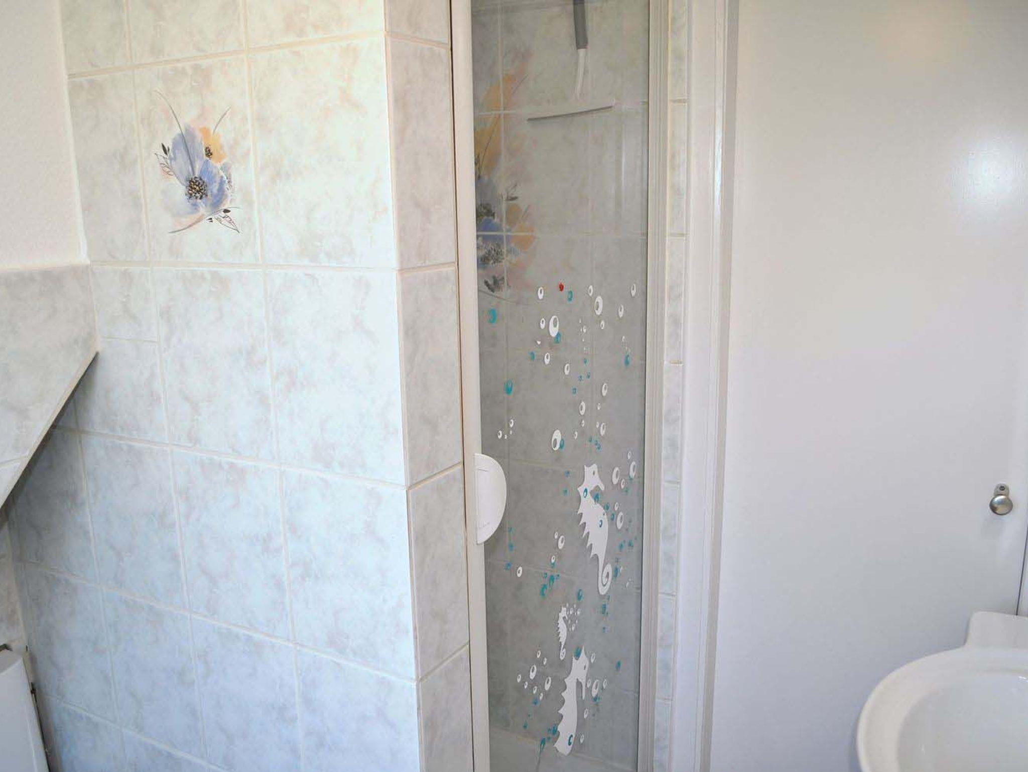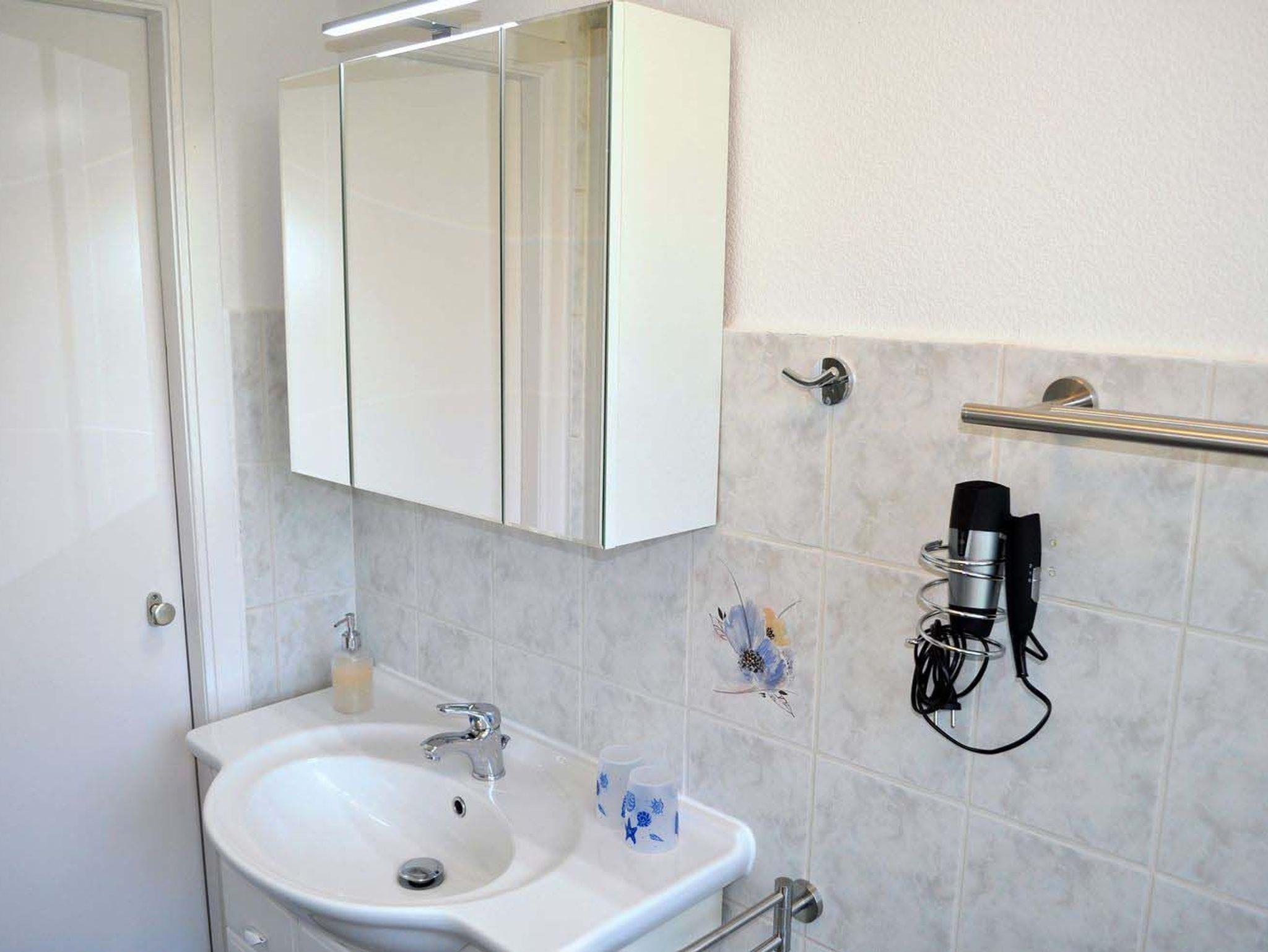 Bad 1: Dusche, Duschkabine, Fön, Spiegelschrank, Waschtisch, WC