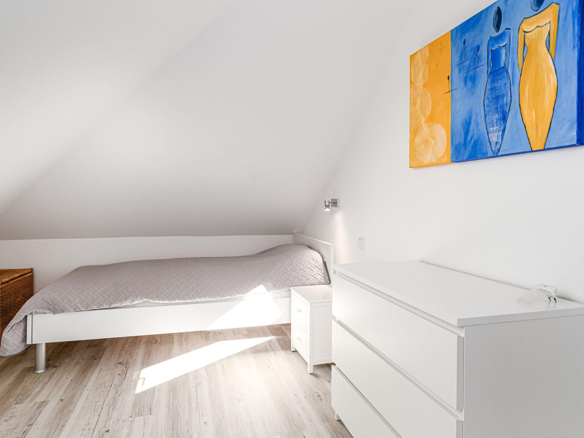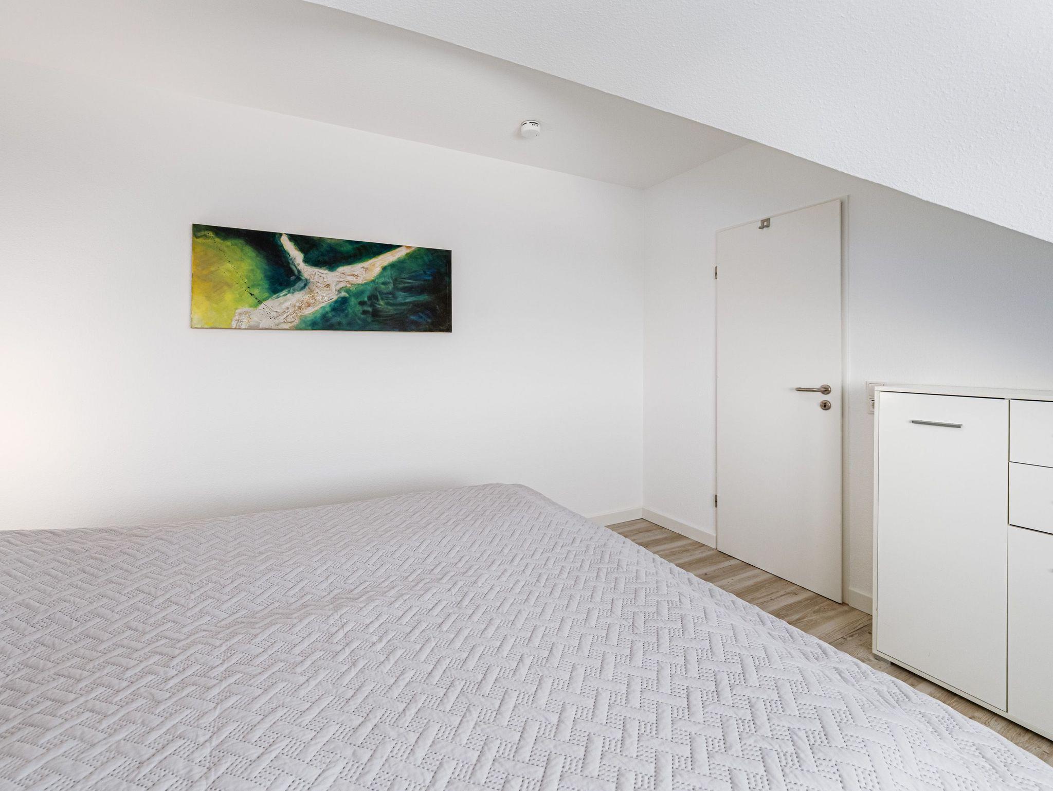 In dem ersten Schlafzimmer erholen sich bis zu 2 Personen auf dem bequemen Boxspringbett (180 cm x 200 cm). Das zweite Schlafzimmer ist mit zwei Einzelbetten (je 90 cm x 200 cm) ausgestattet.