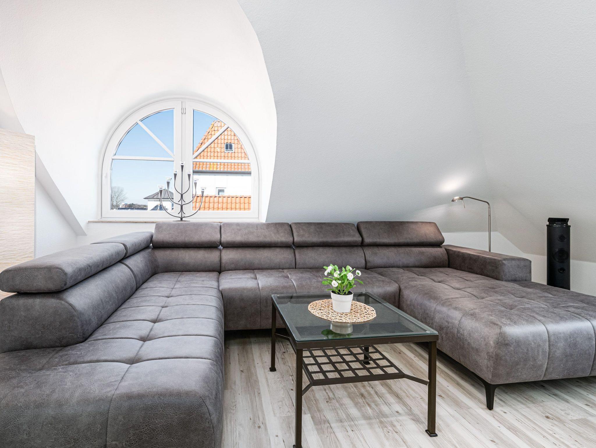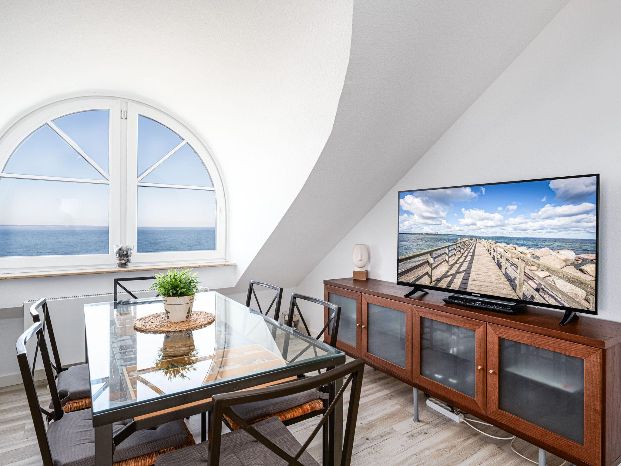 In dieser in 2025 modernisierten und 72m² großen Niendorf Ferienwohnung im 4. OG genießen bis zu 4 Personen aus fast allen Fenstern einen wunderschönen Meerblick auf die Ostsee.