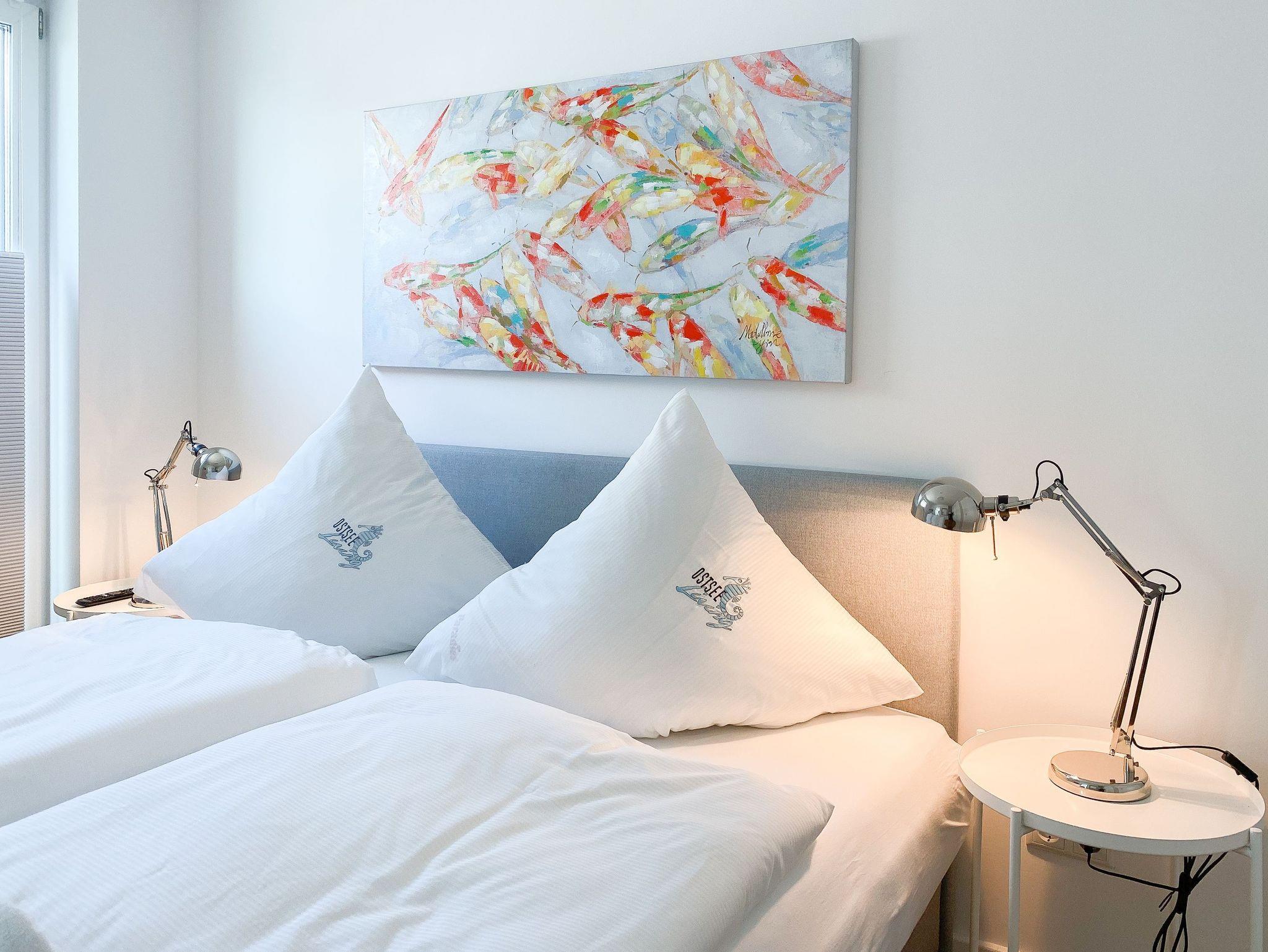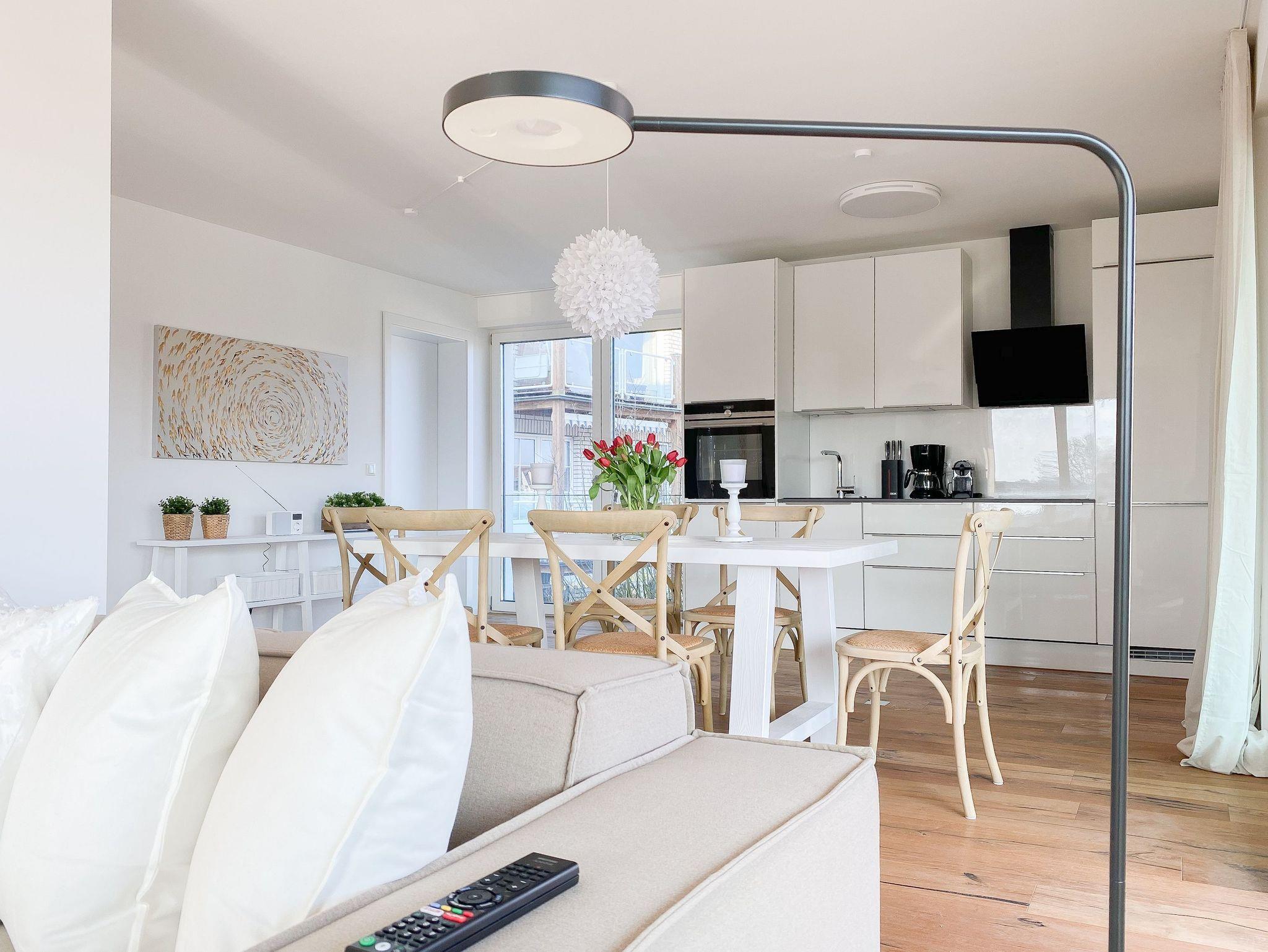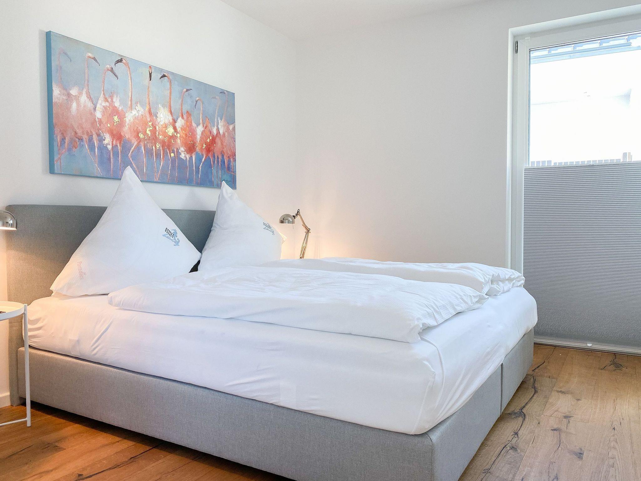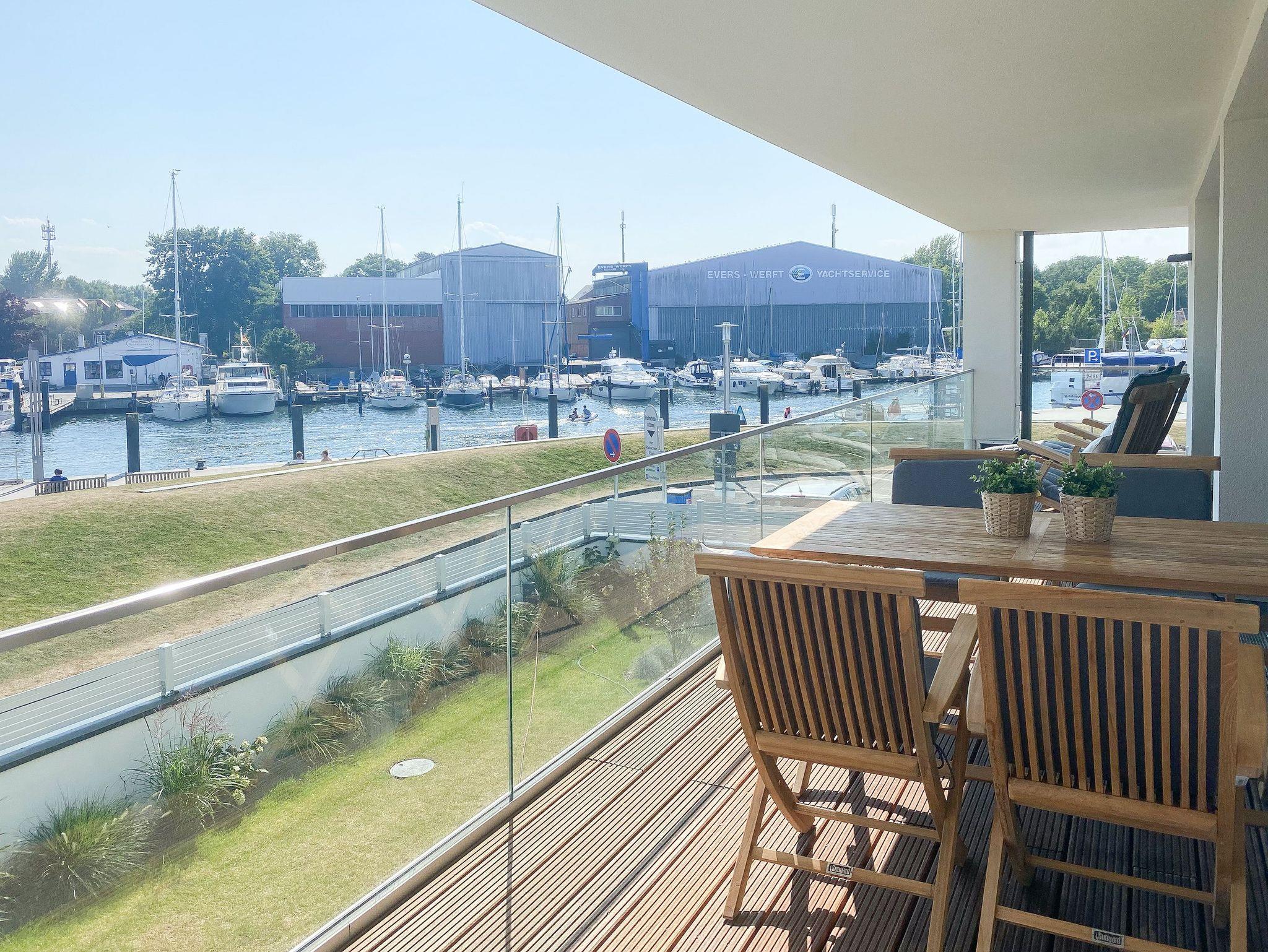 Diese einzigartige Ferienwohnung liegt im 1. Obergeschoss eines modernen Neubaus mit nur 3 Wohneinheiten und bietet auf 100 qm Wohnfläche mit 2 Schlafzimmern und 2 separaten Bädern jeglichen Komfort für 4 Personen. Das Herzstück der Wohnung bildet der stilvoll eingerichtete Wohn- und Essbereich mit riesigen Fensterelementen und einem phantastischen Ausblick auf die Ostsee und die ein- und ausfahrenden Schiffe vom Fischkutter bis zur Motoryacht.[nbsp] Echtholzböden und Fußbodenheizung sorgen für ein angenehmes Raumklima. Der großzügig angelegte Sonnenbalkon ist überdacht und sowohl zum Süden als auch zum Westen ausgerichtet. Genießen Sie die Sonne von früh bis spät, die einzigartige Hafenatmosphäre und beeindruckende Sonnenuntergänge bei einem Glas Wein.
