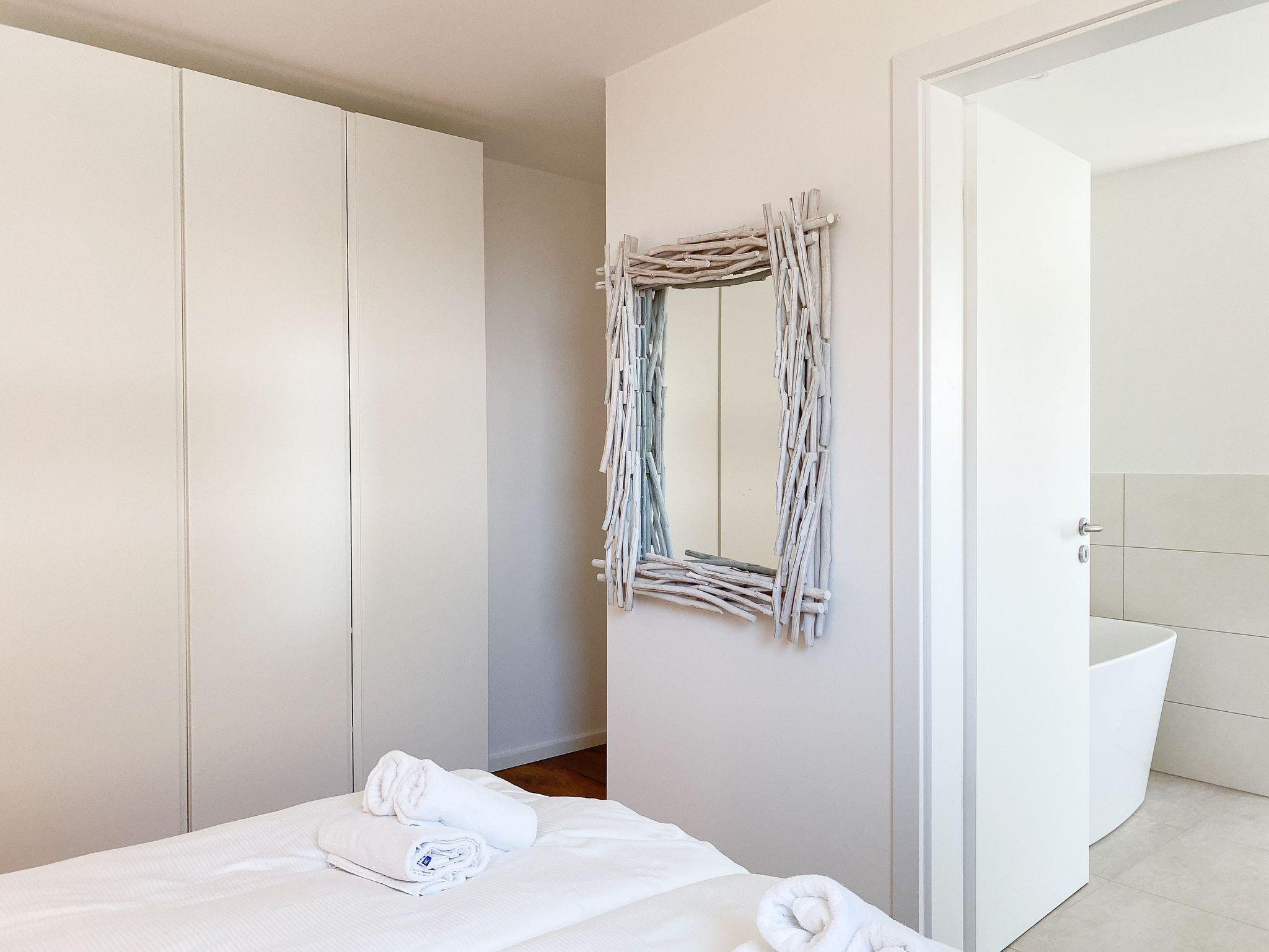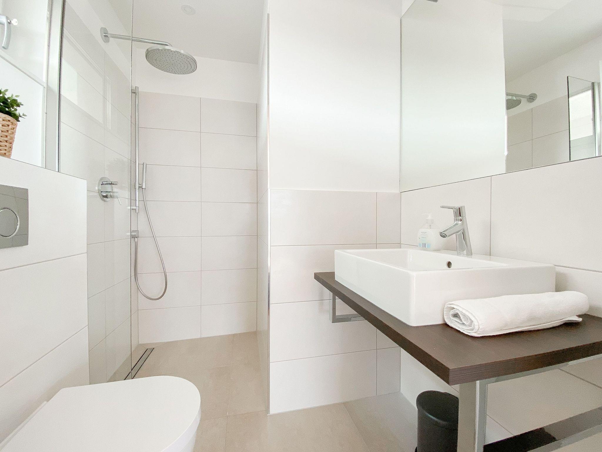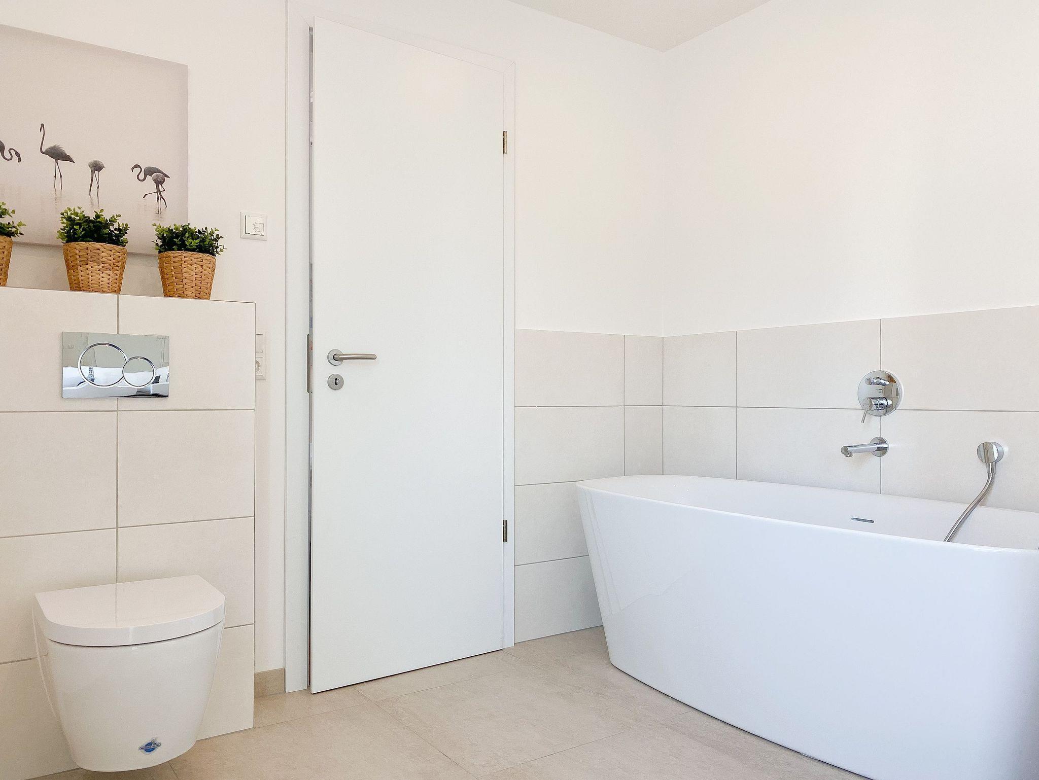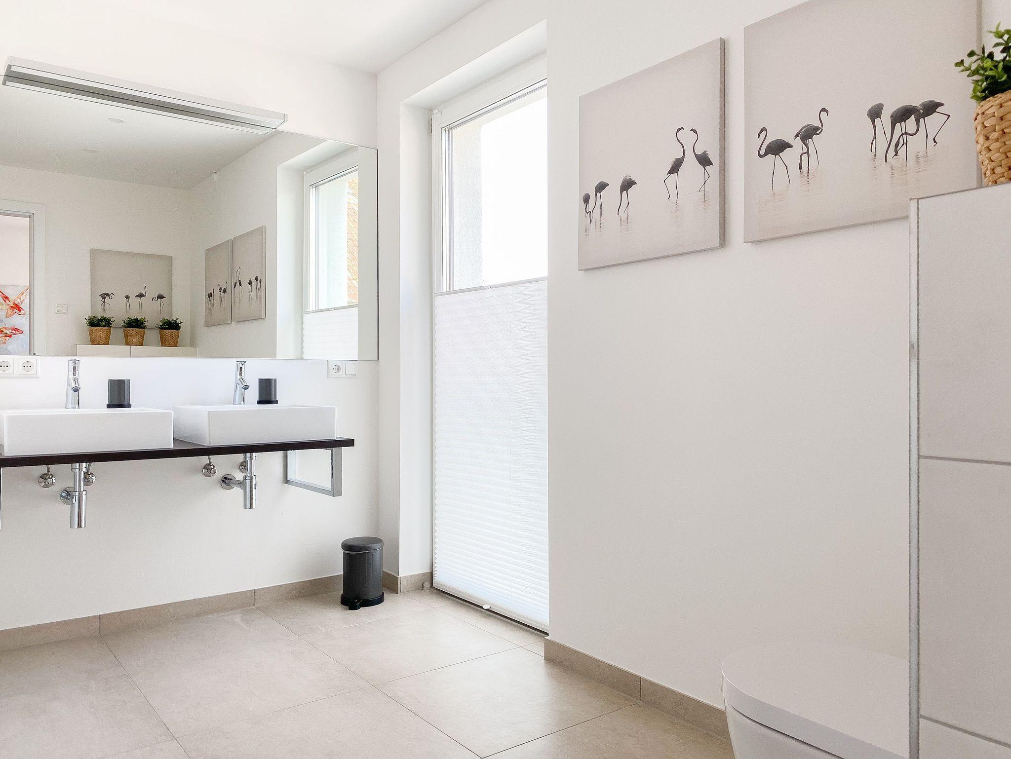 Beide Schlafzimmer sind mit Boxspringbetten (180x200), TV und Verdunkelungsplissees ausgestattet. Es gibt ein großzügiges Bad ensuite mit Badewanne und ein weiteres Duschbad. Die moderne Einbauküche ist bestens ausgestattet. Es stehen insgesamt 3 TV, Internetradio und WLAN zur Verfügung. Auf dem Grundstück befindet sich ein PKW Stellplatz. Waschmaschine und Trockner sind im Gemeinschaftskeller untergebracht. Fahrräder können trocken im separaten Fahrradhaus untergestellt werden.