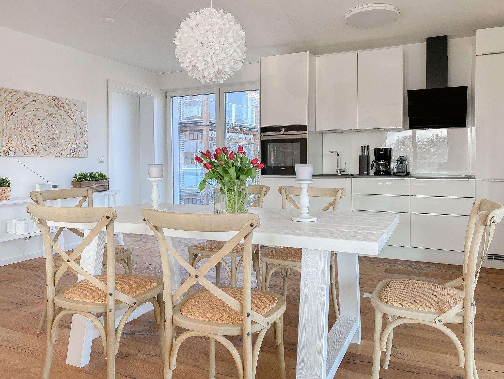 Traumhafter Blick über den Niendorfer Hafen bis zur Ostsee. Die exklusive Ferienwohnung befindet sich in hervorragender Strandlage in zweiter Reihe zur Ostsee direkt am Niendorfer Hafen. Frische Brötchen gibt es beim Bäcker um die Ecke, fangfrischen Fisch direkt vom Kutter und zahlreiche Restaurants und Cafés sowie ein Fahrradverleih und ein Spielplatz befinden sich in unmittelbarer Umgebung.