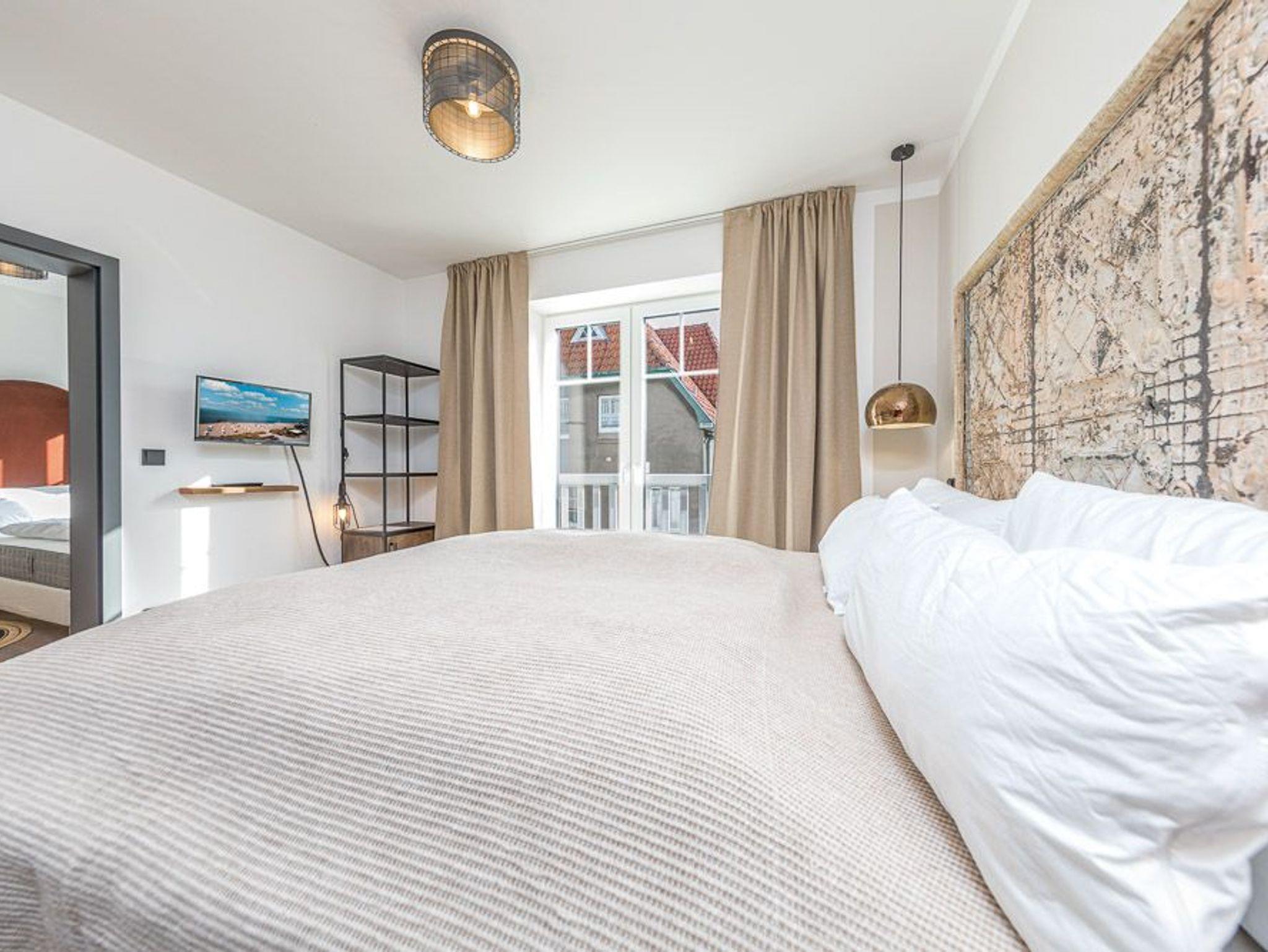3 Schlafzimmer mit 2 separaten Badezimmern bieten Platz für 6 Personen. Die Schlafzimmer sind mit Boxspringbetten (2 Schlafzimmer mit 1 x 180 cm x 200 cm Matratze und das dritte Schlafzimmer mit zwei Einzelbetten je 90 cm x 200 cm Matratzen) sehr exklusiv eingerichtet. Das dritte Schlafzimmer erreichen Sie durch ein Schlafzimmer mit Doppelbett. Flachbildfernseher sind im Wohnbereich und in den Schlafräumen vorhanden.
