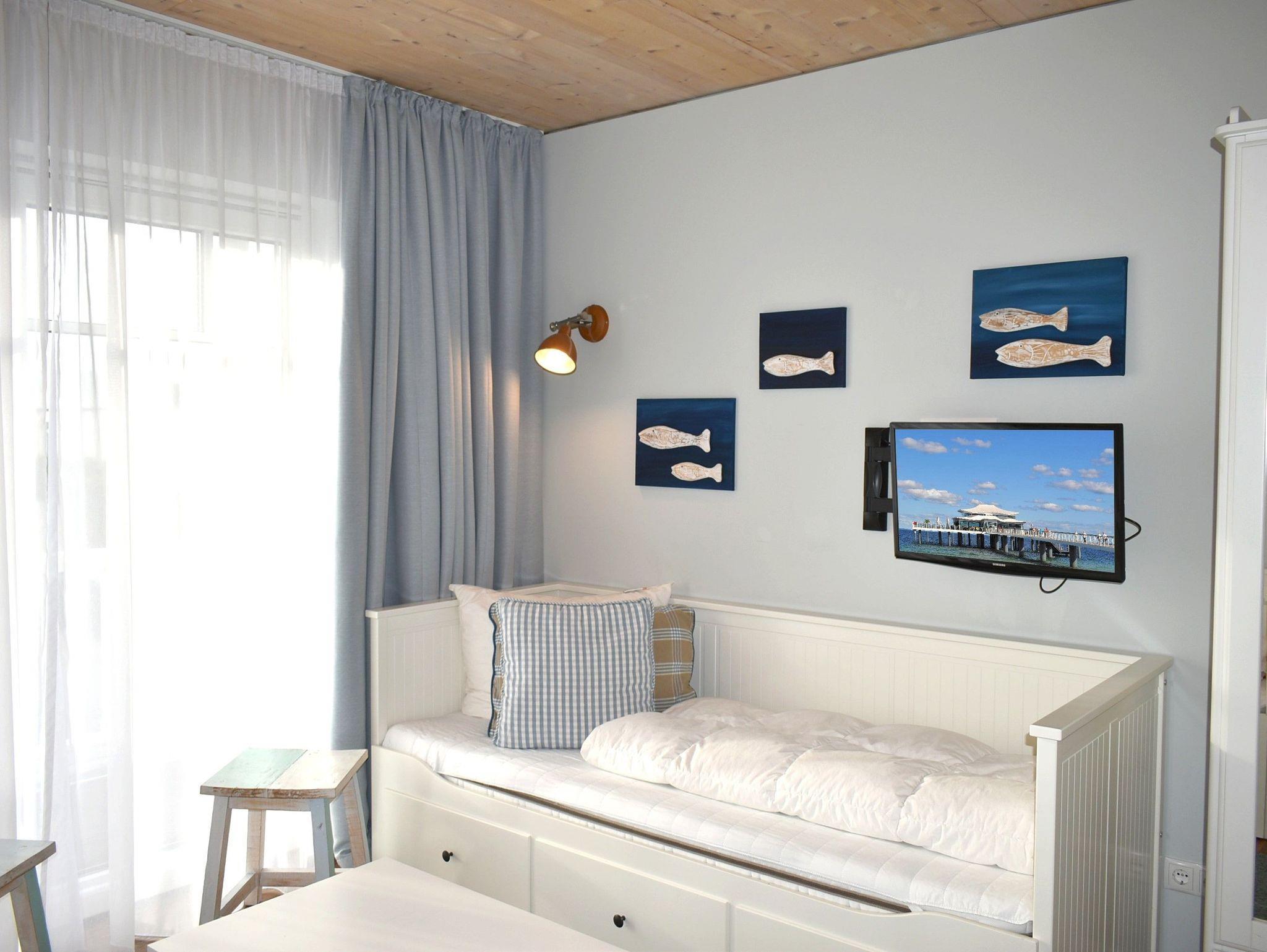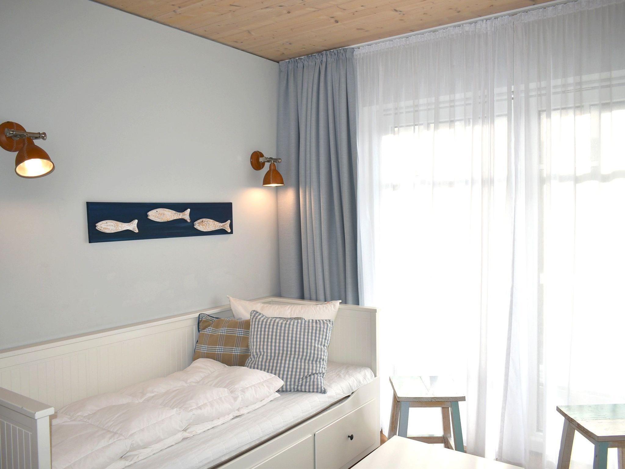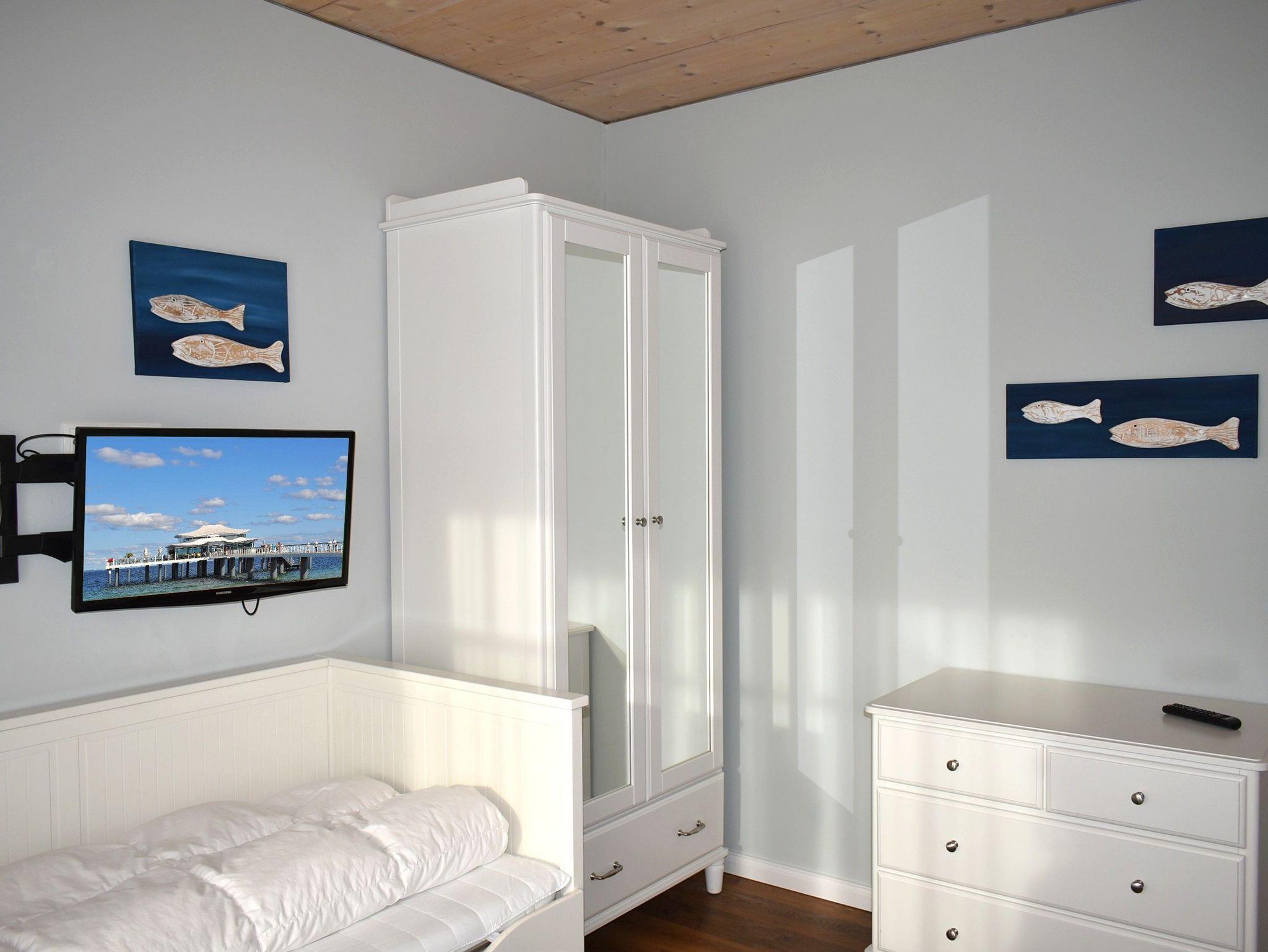 Schlafzimmer 2: 2 Einzelbetten 2,00 x 0,80 m, 2 Hocker, Flachbildschirm, Kleiderschrank, Kommode, Sat-TV, Spiegel, Tisch