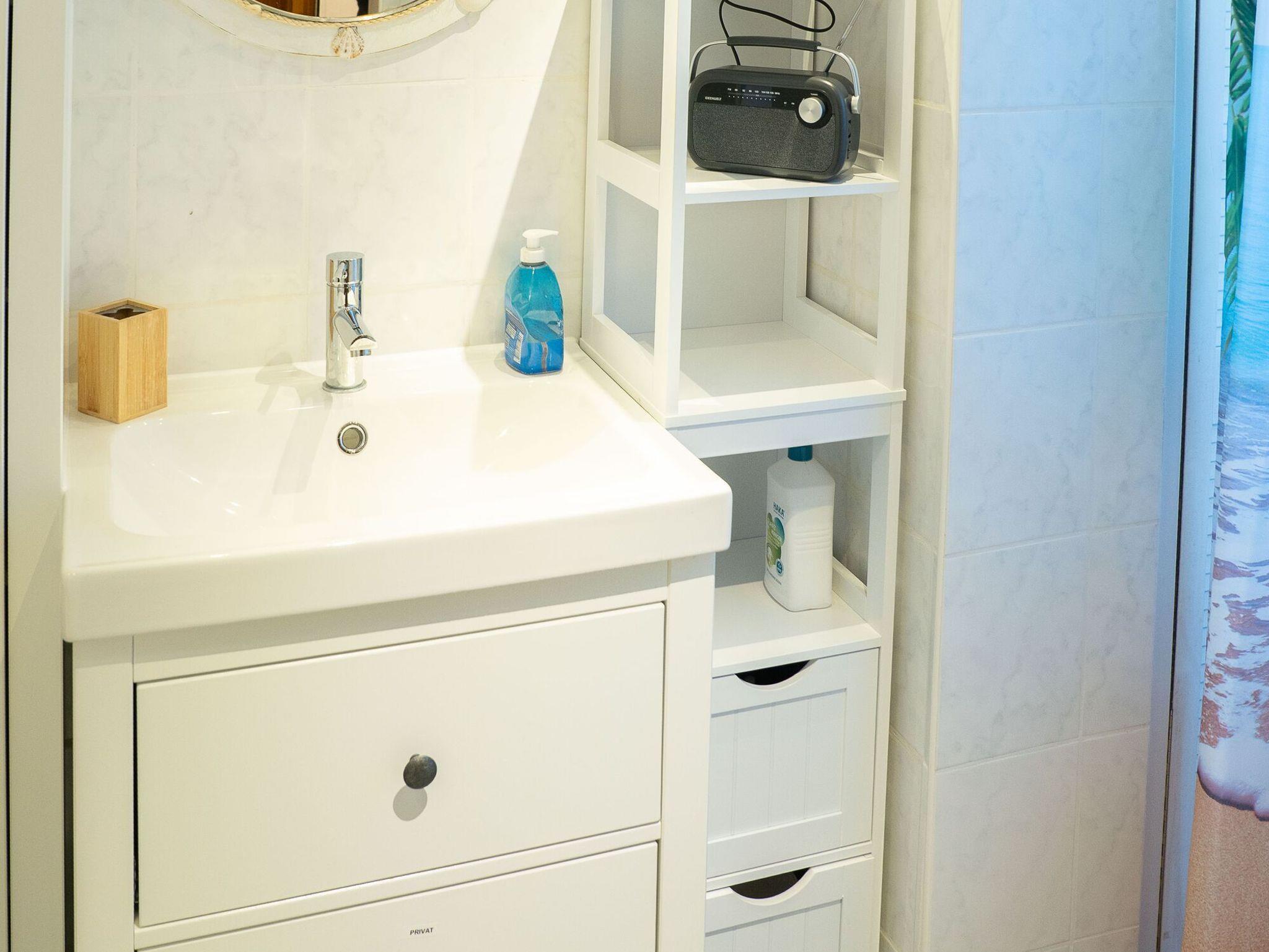 Waschmöglichkeiten: Im Hauswirtschaftsraum (hinter dem Badezimmer) befinden sich eine Waschmaschine und ein Trockner.