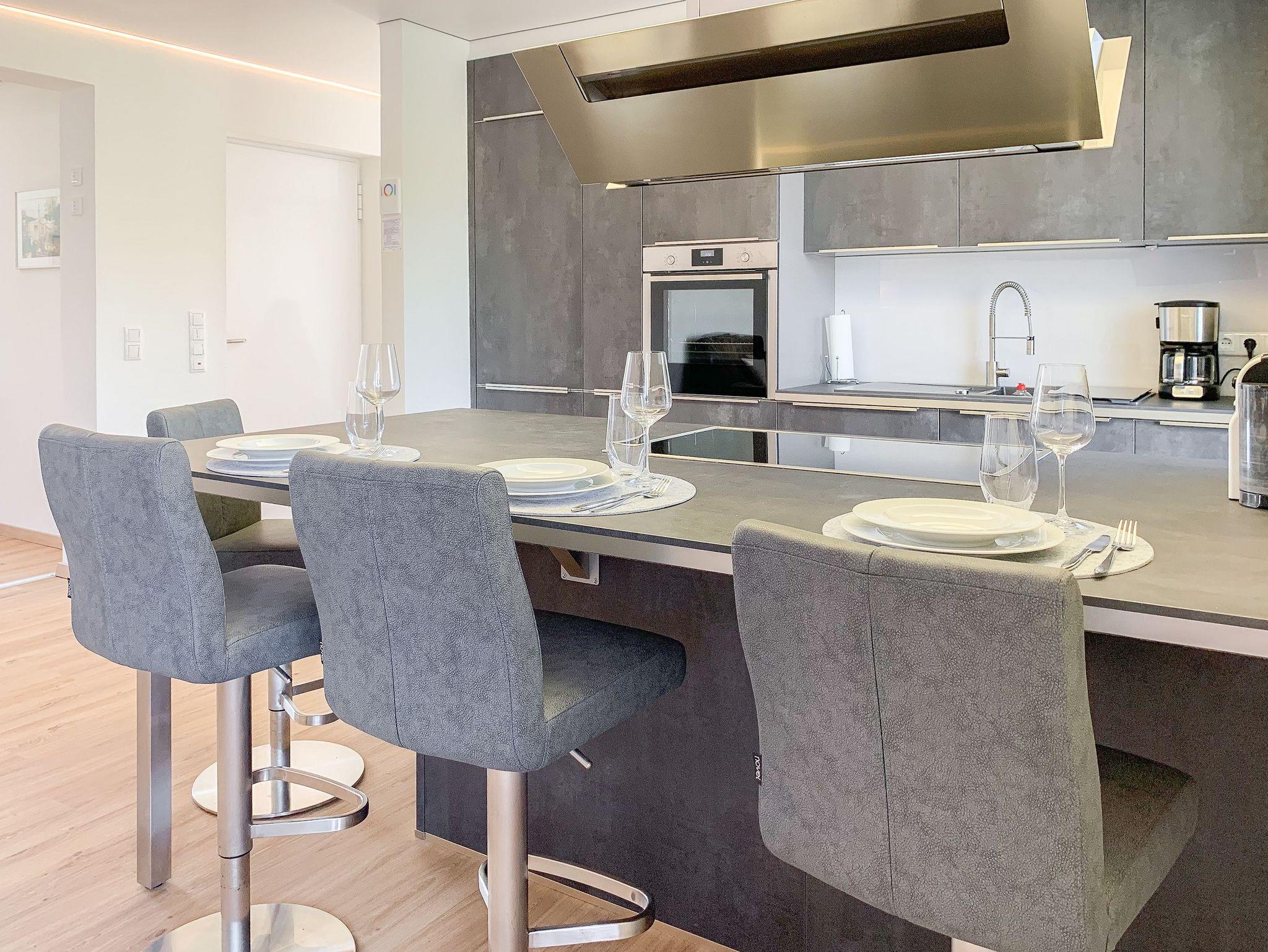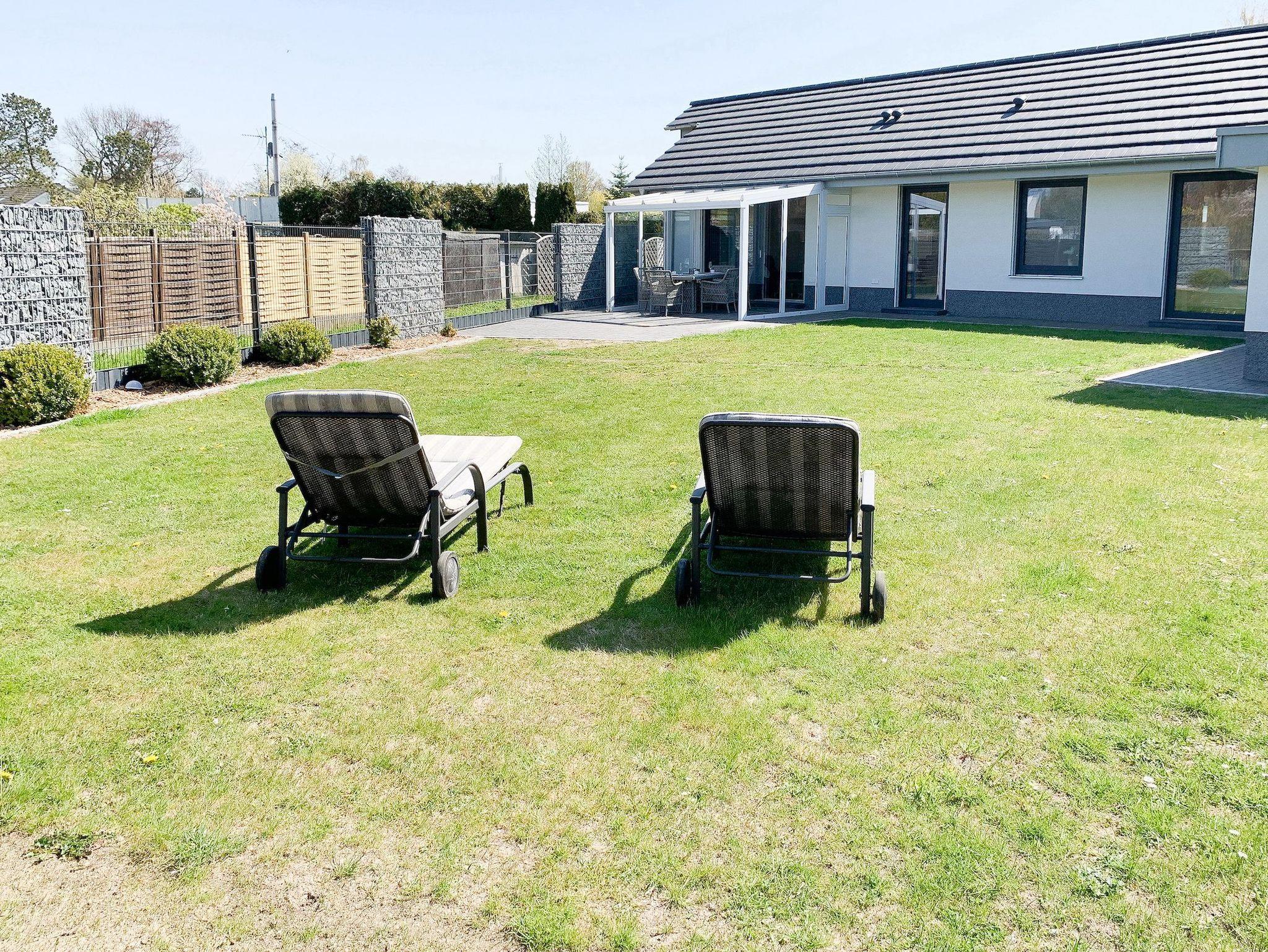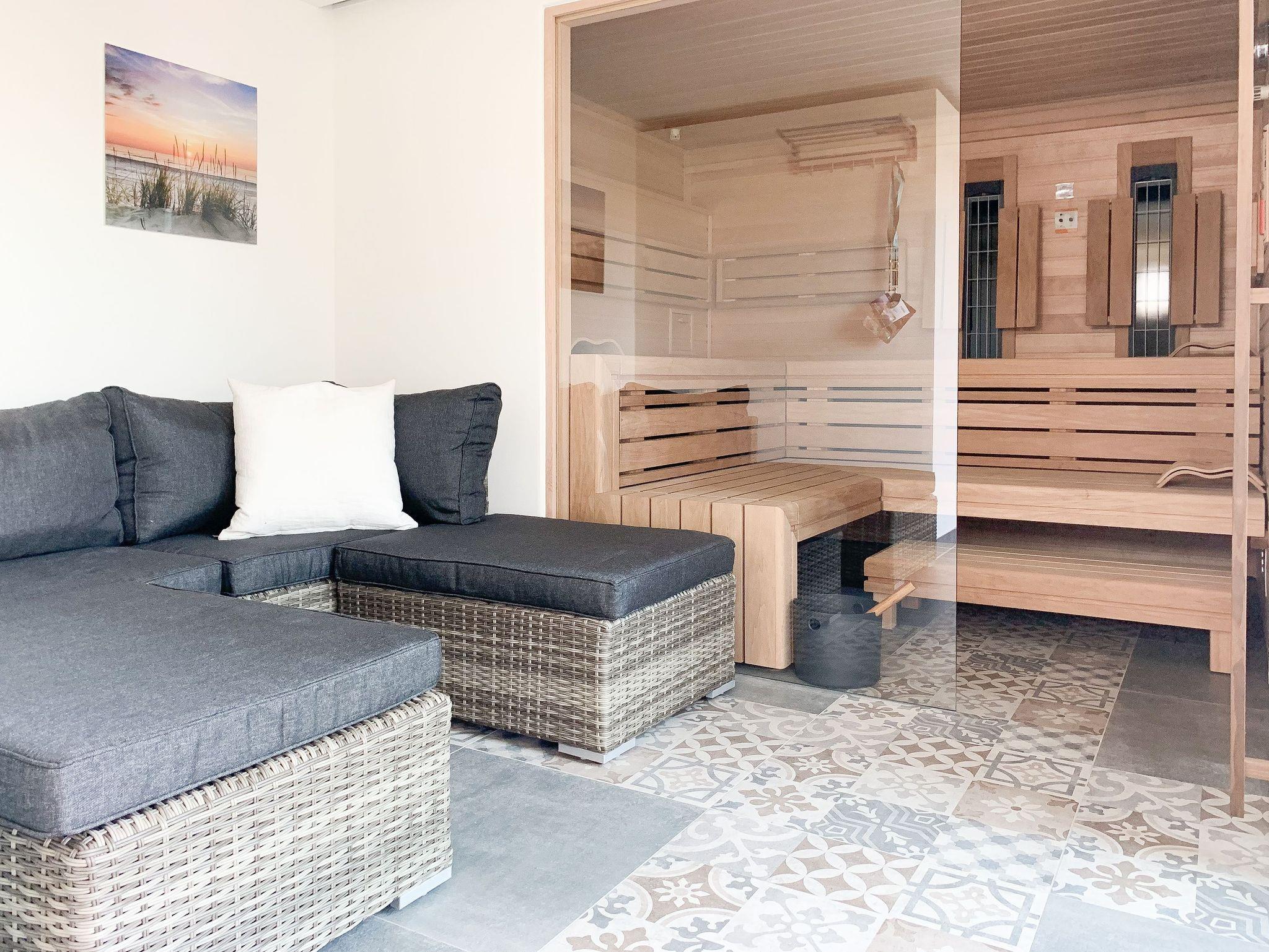 Das Ferienhaus Wolke 7 bietet auf 130 qm zeitgemäßen Luxus auf einer Ebene. Die hochwertige Ausstattung, das großzügige, umzäunte Gartengrundstück und der traumhafte Wellnessbereich mit großer Sauna und Gartenzugang, machen das Haus zu etwas Besonderem. Es gibt zwei geräumige Schlafzimmer mit Doppelbetten, TV, Gartenzugang und zwei Duschbädern ensuite. In einem der Bäder ist der Saunabereich integriert. Es stehen zwei Zustellbetten und ein weiteres Bad mit Badewanne und integriertem Waschtrockner zur Verfügung. Mittelpunkt des Hauses bildet die top ausgestattete, großzügig angelegte Küche mit Kochinsel, Barbereich und direktem Gartenzugang. Der anschließende Wohnbereich mit vorgelagerter Terrasse und offenem Wintergarten ist ebenfalls äußerst geräumig und mit einem XXL TV und einer Bluetooth Anlage ausgestattet. WLAN steht selbstverständlich zur kostenlosen Nutzung zur Verfügung. Der Essbereich bietet ausreichend Platz für 6 Personen und läßt sich mittels zweier Schiebetüren vom Wohnbereich trennen und bietet somit eine weitere Möglichkeit zur Unterbringung der Zustellbetten.