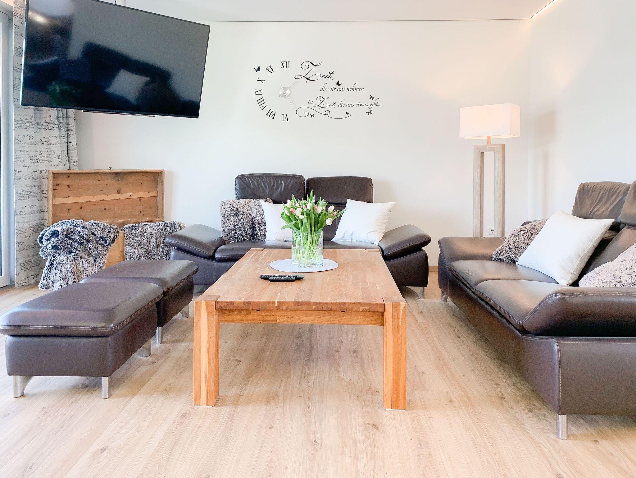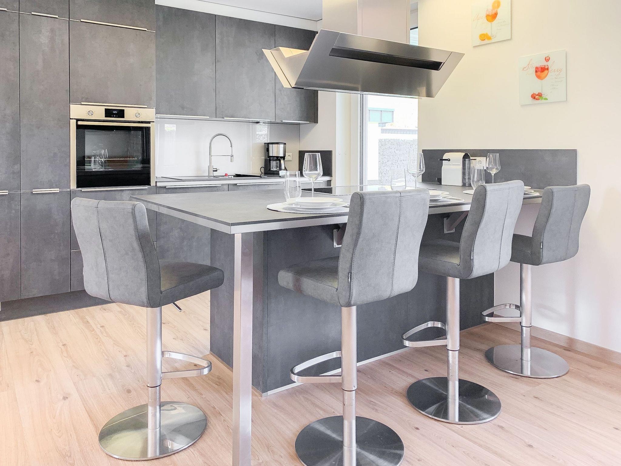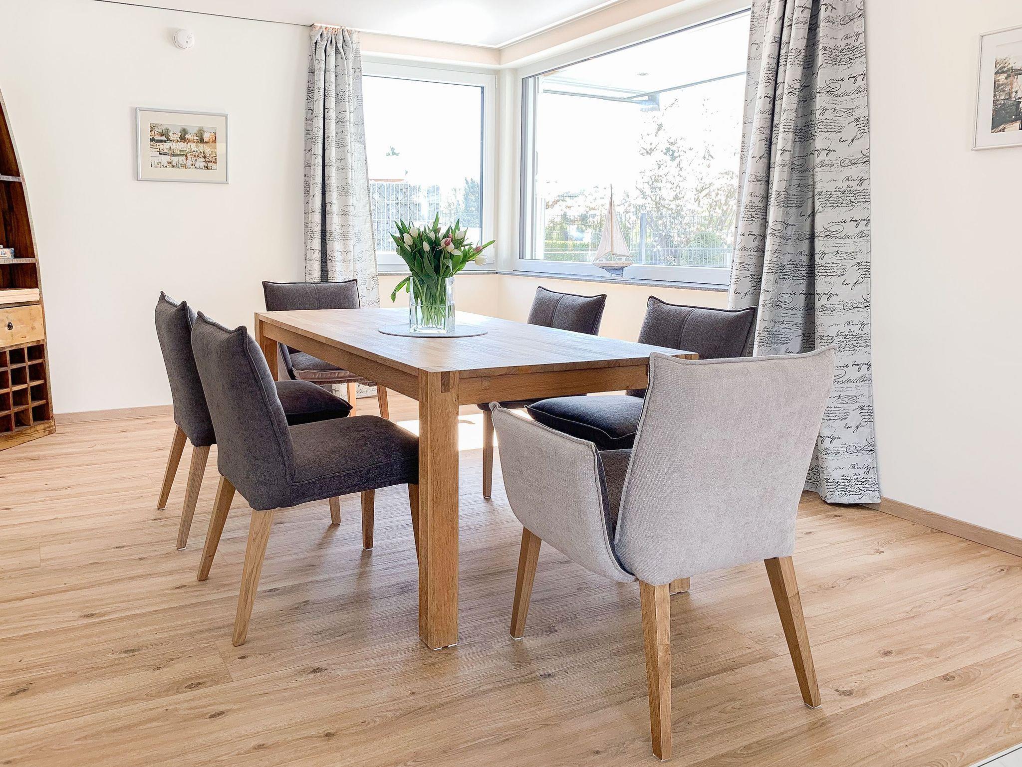 Das Ferienhaus Wolke 7 bietet auf 130 qm zeitgemäßen Luxus auf einer Ebene. Die hochwertige Ausstattung, das großzügige, umzäunte Gartengrundstück und der traumhafte Wellnessbereich mit großer Sauna und Gartenzugang, machen das Haus zu etwas Besonderem. Es gibt zwei geräumige Schlafzimmer mit Doppelbetten, TV, Gartenzugang und zwei Duschbädern ensuite. In einem der Bäder ist der Saunabereich integriert. Es stehen zwei Zustellbetten und ein weiteres Bad mit Badewanne und integriertem Waschtrockner zur Verfügung. Mittelpunkt des Hauses bildet die top ausgestattete, großzügig angelegte Küche mit Kochinsel, Barbereich und direktem Gartenzugang. Der anschließende Wohnbereich mit vorgelagerter Terrasse und offenem Wintergarten ist ebenfalls äußerst geräumig und mit einem XXL TV und einer Bluetooth Anlage ausgestattet. WLAN steht selbstverständlich zur kostenlosen Nutzung zur Verfügung. Der Essbereich bietet ausreichend Platz für 6 Personen und läßt sich mittels zweier Schiebetüren vom Wohnbereich trennen und bietet somit eine weitere Möglichkeit zur Unterbringung der Zustellbetten.