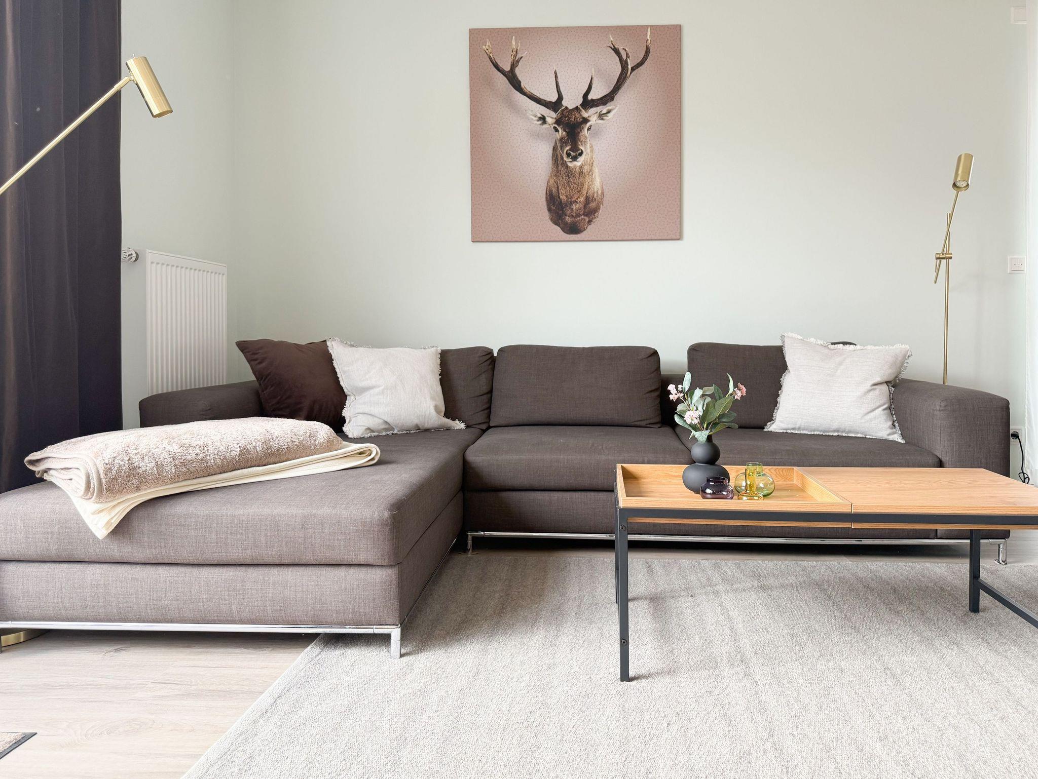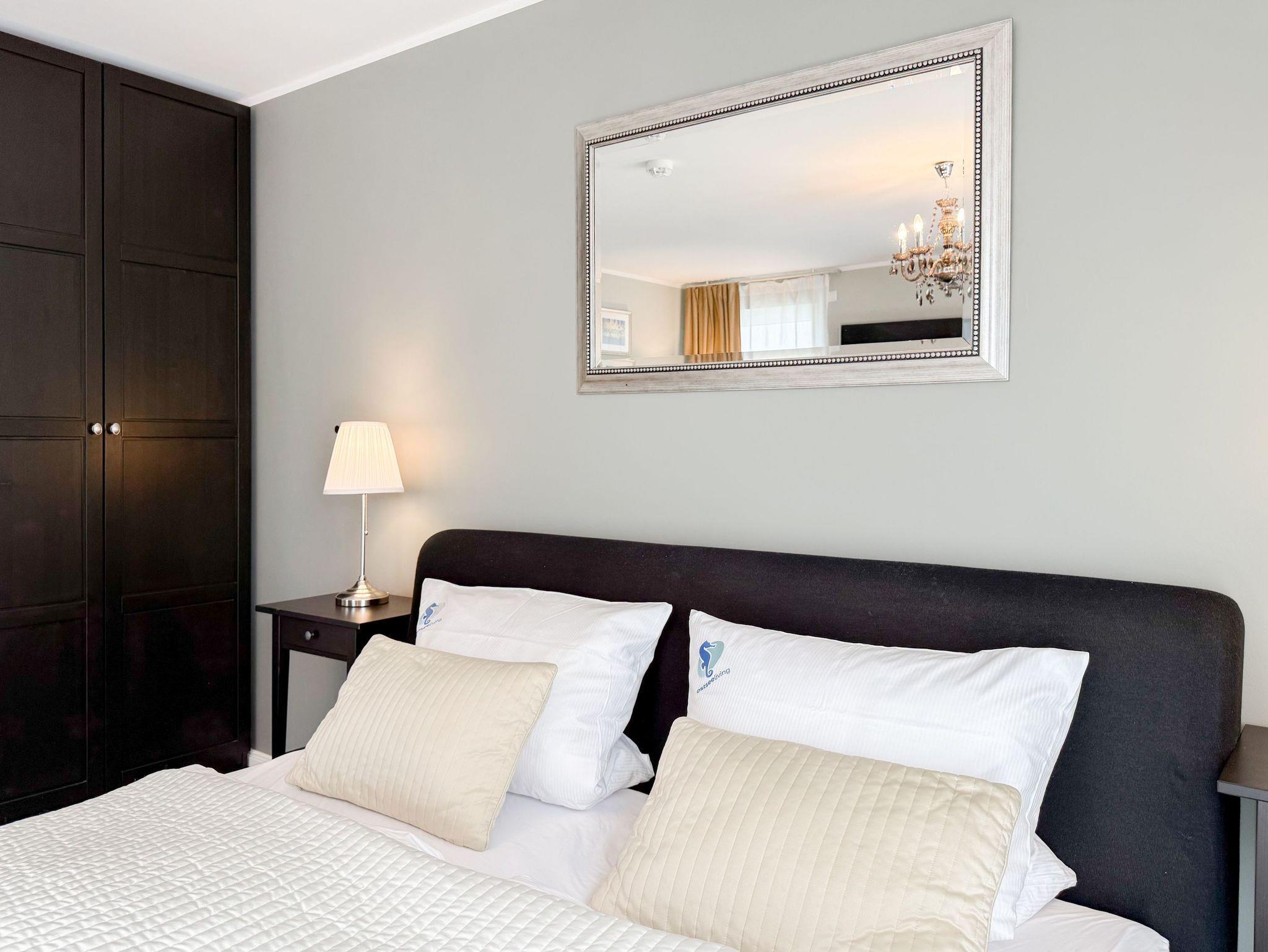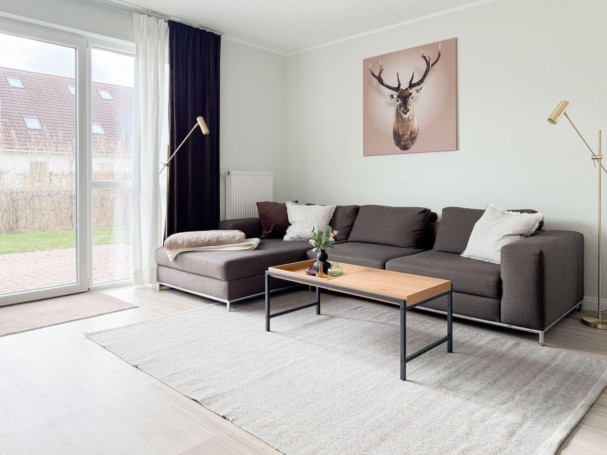 Es erwartet Sie ein tolles Doppelhaus mit 3 separaten Schlafzimmern und 2 Duschbädern. Sonnige Räumlichkeiten auf über 100 qm Wohnfläche und die geschmackvolle Einrichtung mit liebevollen Details schaffen ein behagliches Ambiente für 6 Personen. Im Erdgeschoss erwartet Sie ein großzügiger Wohnbereich, der mit einem gemütlichen Ecksofa und TV eingerichtet ist. Die vorgelagerte Sonnenterrasse in Südausrichtung garantiert erholsame Urlaubszeit. Die großzügige Einbauküche ist bestens ausgestattet und lädt zum gemeinsamen Kochen ein. Der anschließende Essbereich, mit großem Esstisch und gemütlichen Sesseln, bietet ausreichend Platz für gemeinsame Mahlzeiten und geselliges Beisammensein. Im Eingangsbereich befindet sich eine Garderobe und ein neuwertiges Tageslichtbad mit Dusche, Waschbecken und WC. Eine Waschmaschine ist im separaten Abstellraum untergebracht, ebenfalls im Erdgeschoss. Im Obergeschoss befindet sich ein weiteres Duschbad mit Doppelwaschtisch und Fenster sowie 2 separate Schlafzimmer. Schlafzimmer 1 ist äußerst großzügig und mit einem Doppelbett, einer Sitzecke mit TV und einem Schreibtisch für das Home Office eingerichtet. Schlafzimmer 2 verfügt über 2 Einzelbetten und einen gemütlichen Relaxsessel. Im Dachgeschoss befindet sich das 3. Schlafzimmer mit einem Doppelbett (180x200), Kleiderschrank und Sessel. Die Dachflächenfenster lassen sich über ein Rollo verdunkeln, alle anderen Fenster des Hauses sind mit elektrischen Außenjalousien versehen. WLAN steht selbstverständlich kostenlos zur Verfügung. Vor dem Haus befinden sich zwei Parkplätze. (1 Carport und 1 Außenstellplatz). Fahrräder können sicher und trocken im Schuppen am Haus untergestellt werden. [nbsp]