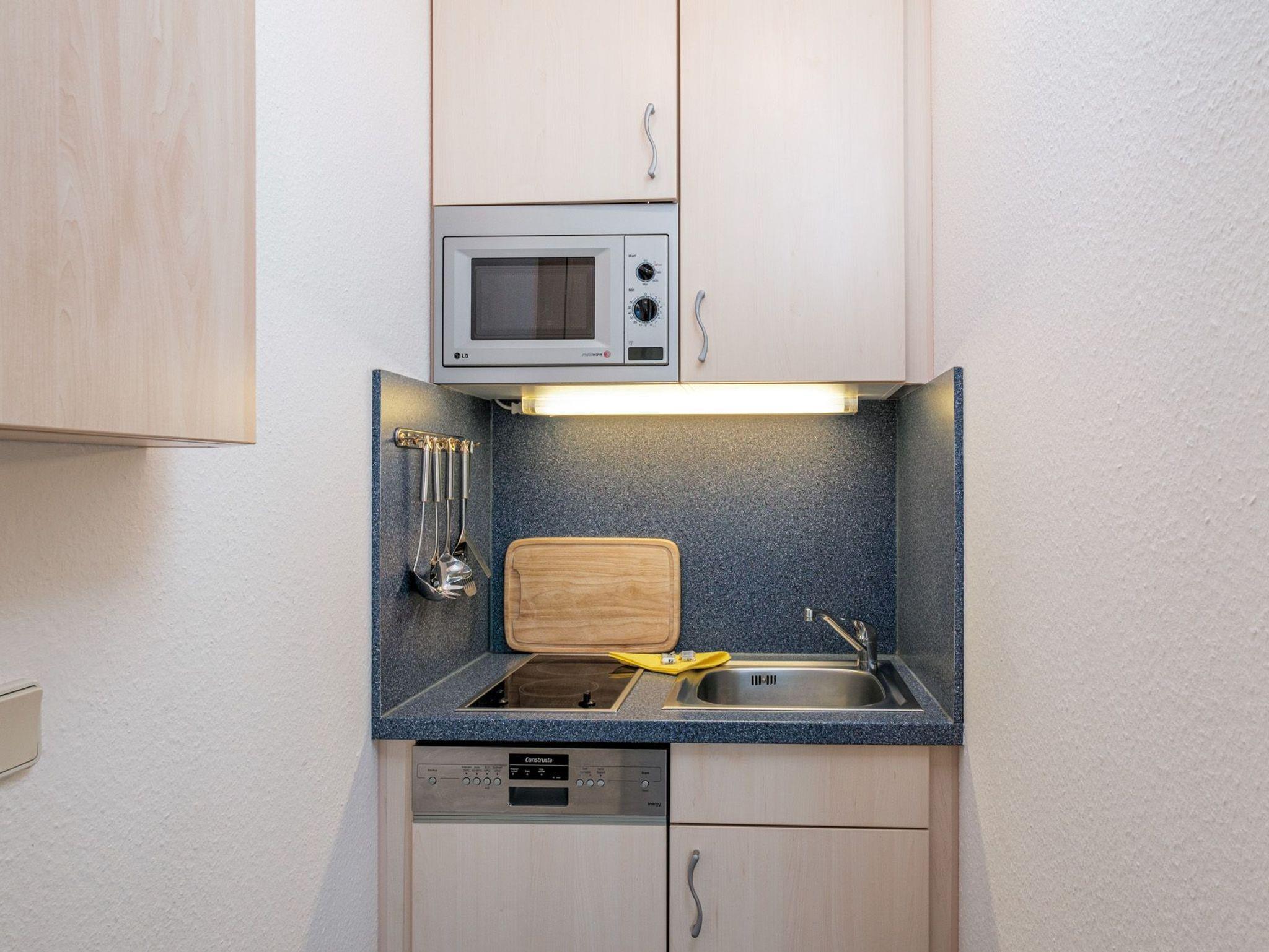Die Pantryküche ist mit einem Geschirrspüler und Mikrowelle eingerichtet.