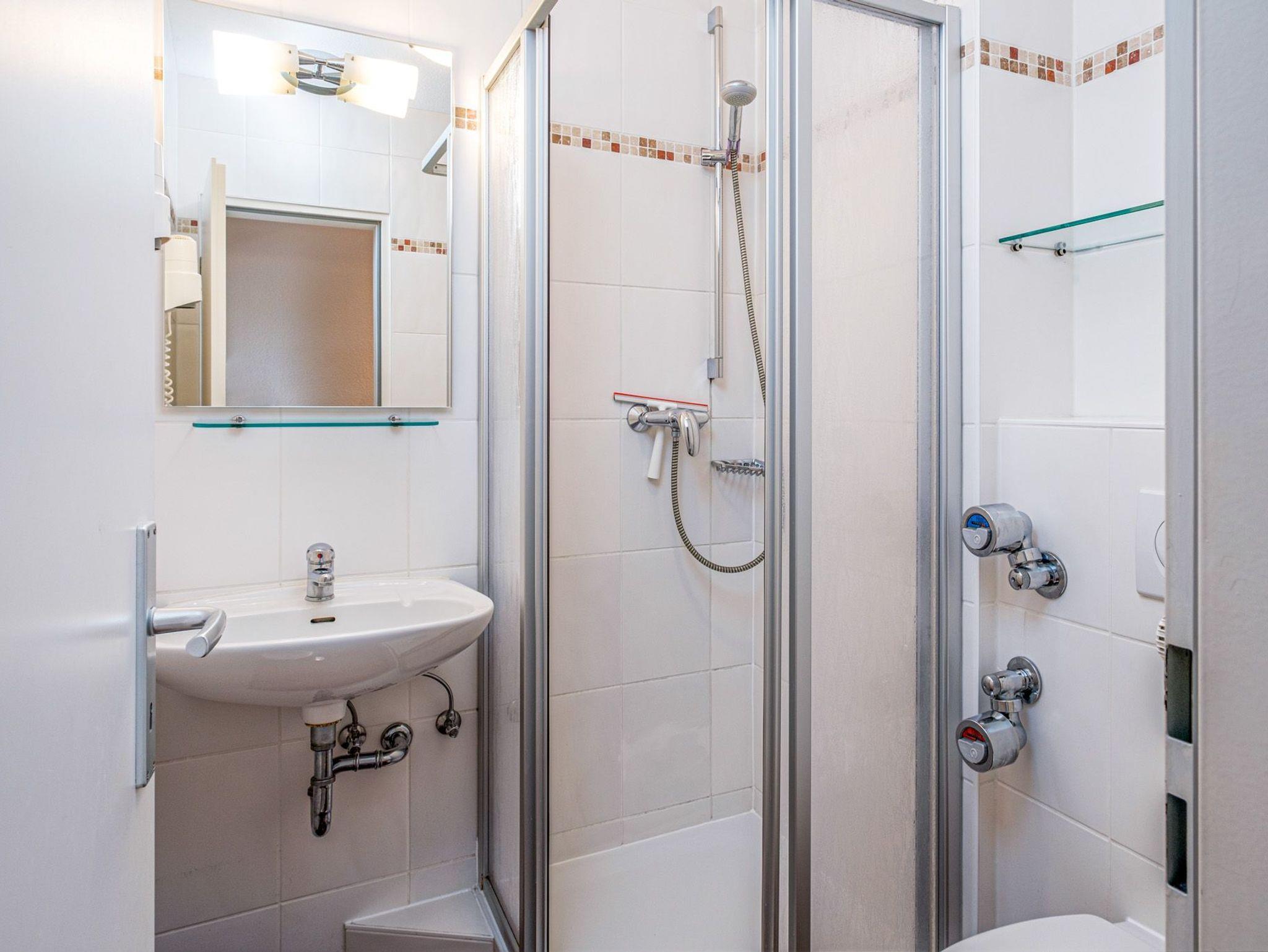 Im Badezimmer finden Sie eine Dusche, WC und einen Fön vor.