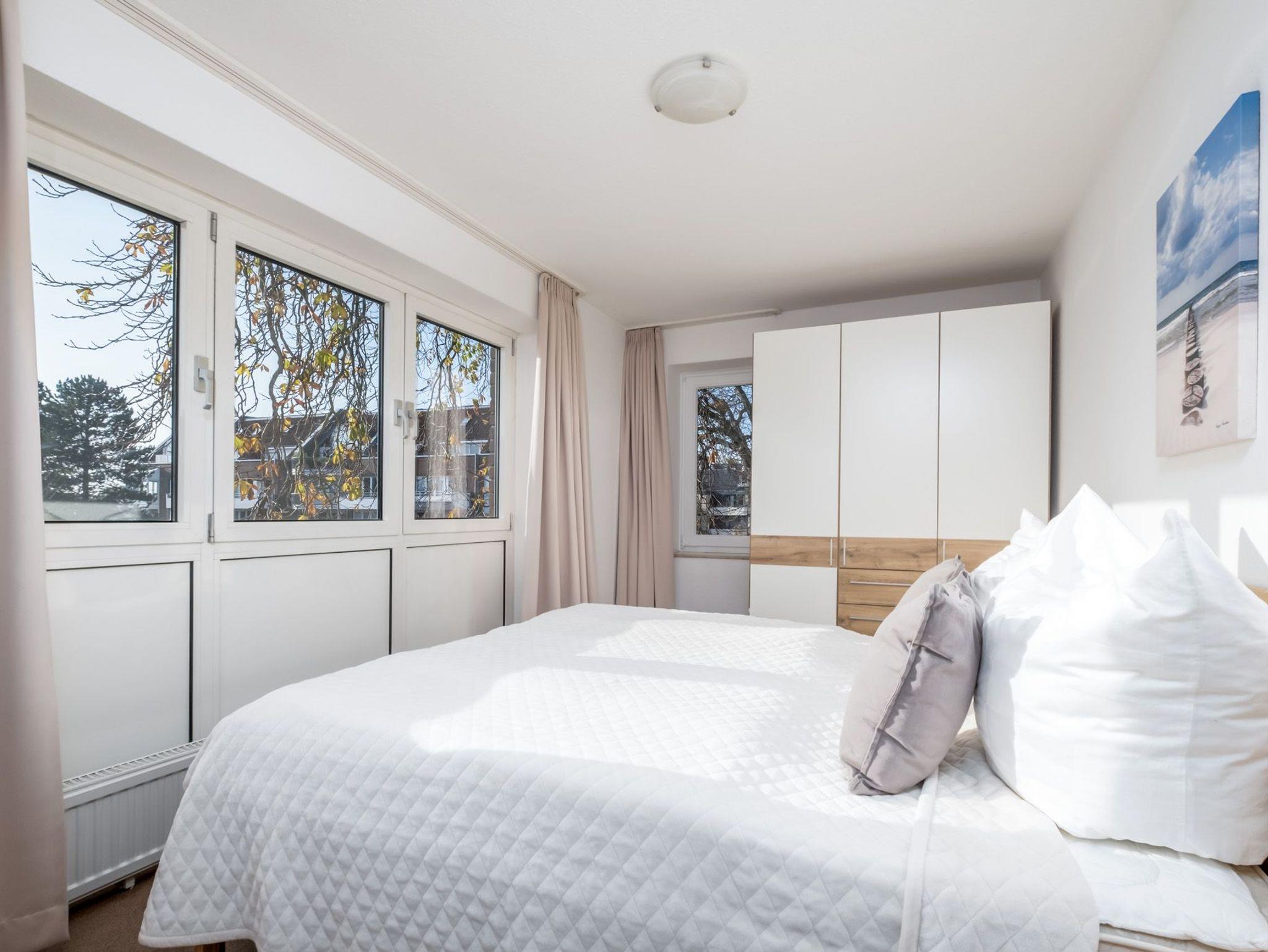 Der separate Schlafraum der Ferienwohnung verfügt über ein Doppelbett (2 x 90 cm x 200 cm).