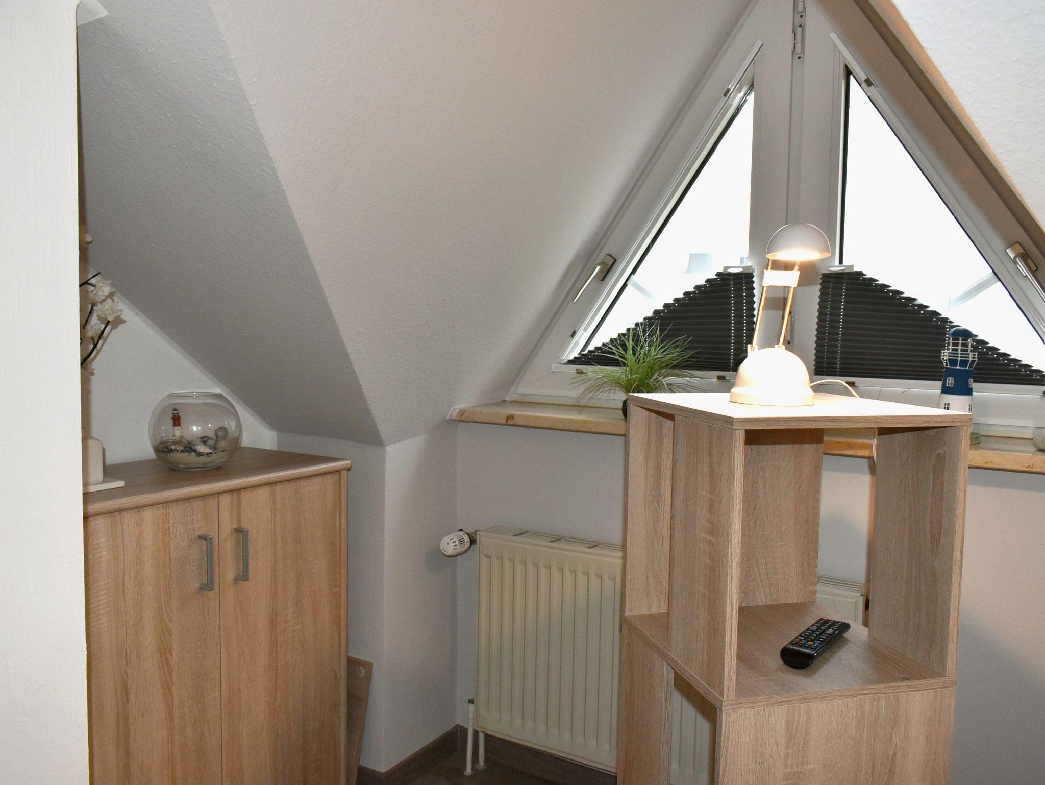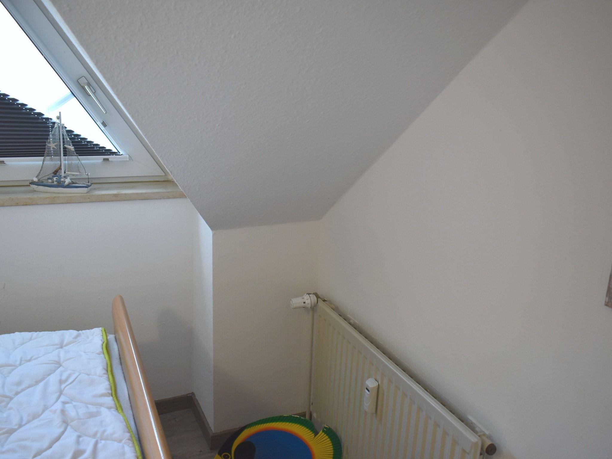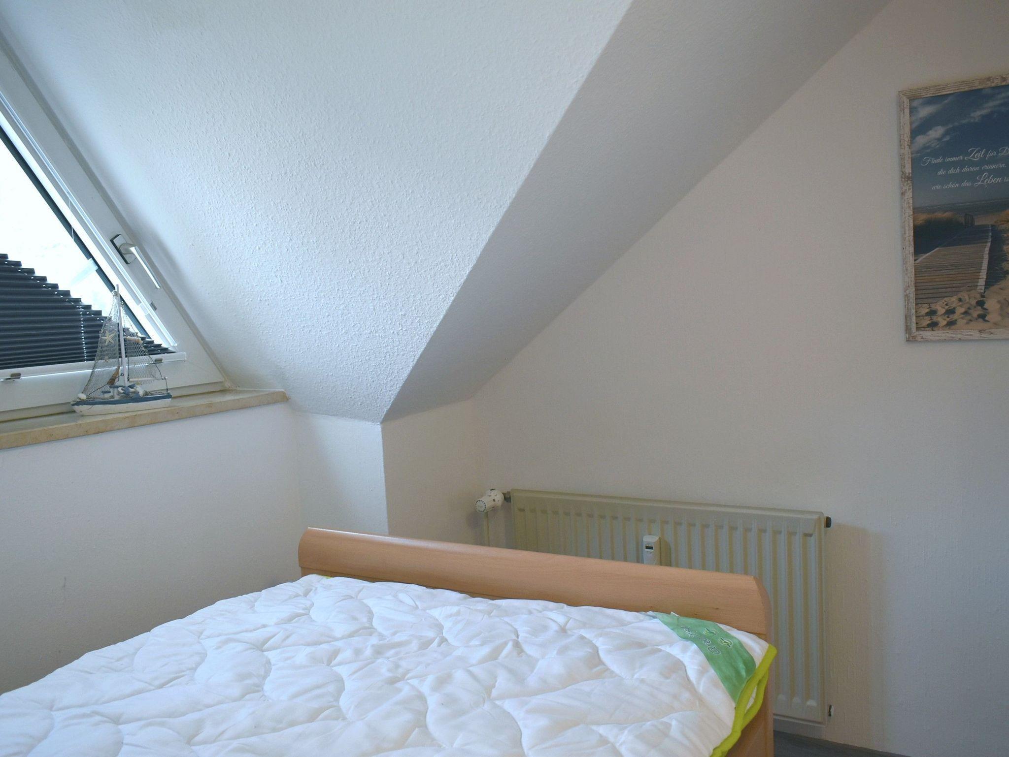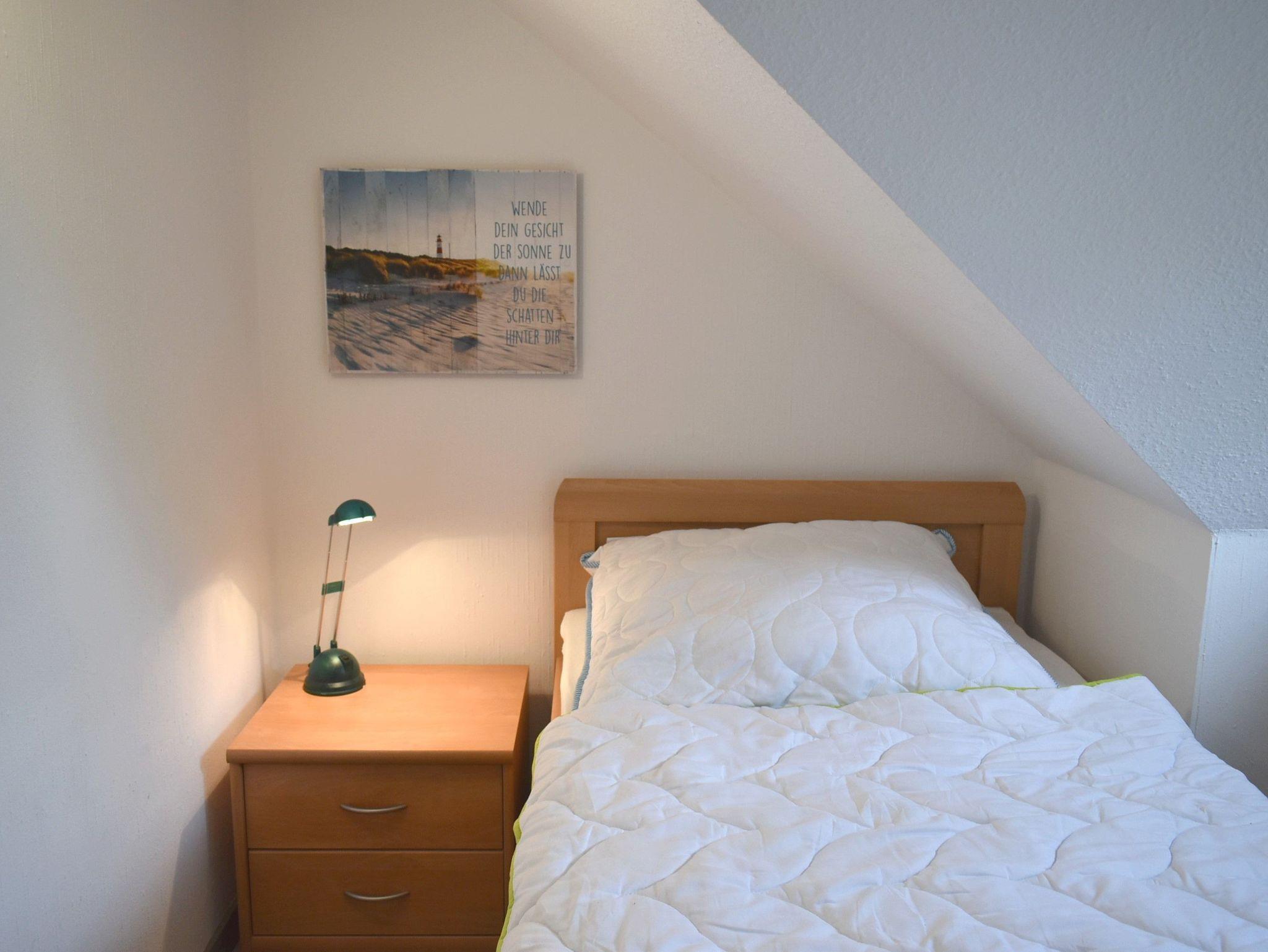 Schlafzimmer 2: Einzelbett 2,00 x 0,90 m, Nachttisch, Nachttischlampe, Verdunklungsplissee