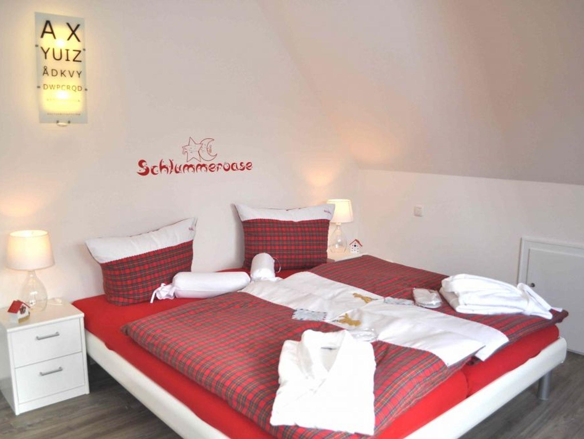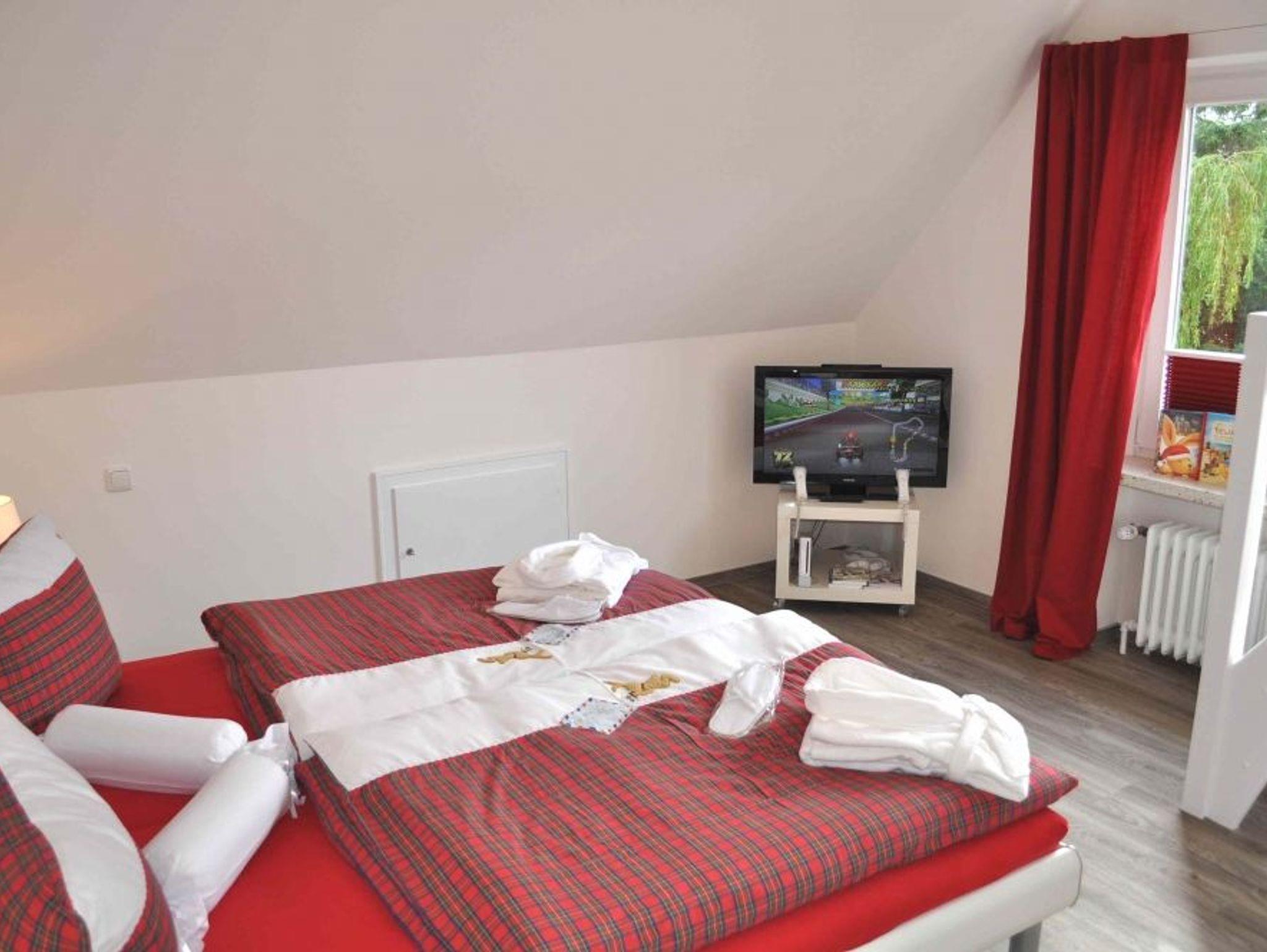 Schlummeroase= Doppelbett 2,00 x 1,80 x 0,43 m, Stummerdiener, Toschiba Flachbildschirm, Treppe nach oben, TV-Rolltisch, Wandlampe, Wii Spielekonsole (kostenlos aber nicht im Mietpreis enthalten) mit zwei Remote und Nunchuck sowie Lenkrad-Spiele= Mariokart-Wii Sports-Super Mario Galaxy-FIFA 10
