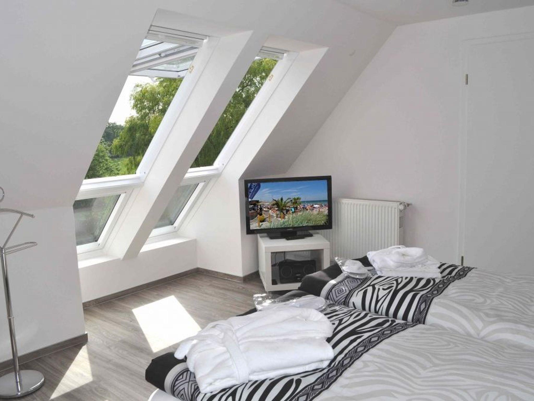 Schlafzimmer 2: 2 Nachttische, 2 Nachttischlampen mit Dimmer, Bettgeflüster= Doppelbett 2,00 x 1,80 x 0,53 m, Digitalradio mit Docking-Station für iPod-iPhone und iPad ab 5 sowie Radio mit Wecker, Audio In und Bluetooth, direkter Zugang zum Bad, Einbaukleiderschrank, Flachbildschirm, Kabel-TV, Stummerdiener, traumhafter Blick auf den Karpfenteich und die Weide, TV-Rolltisch, Verdunklungsrollo