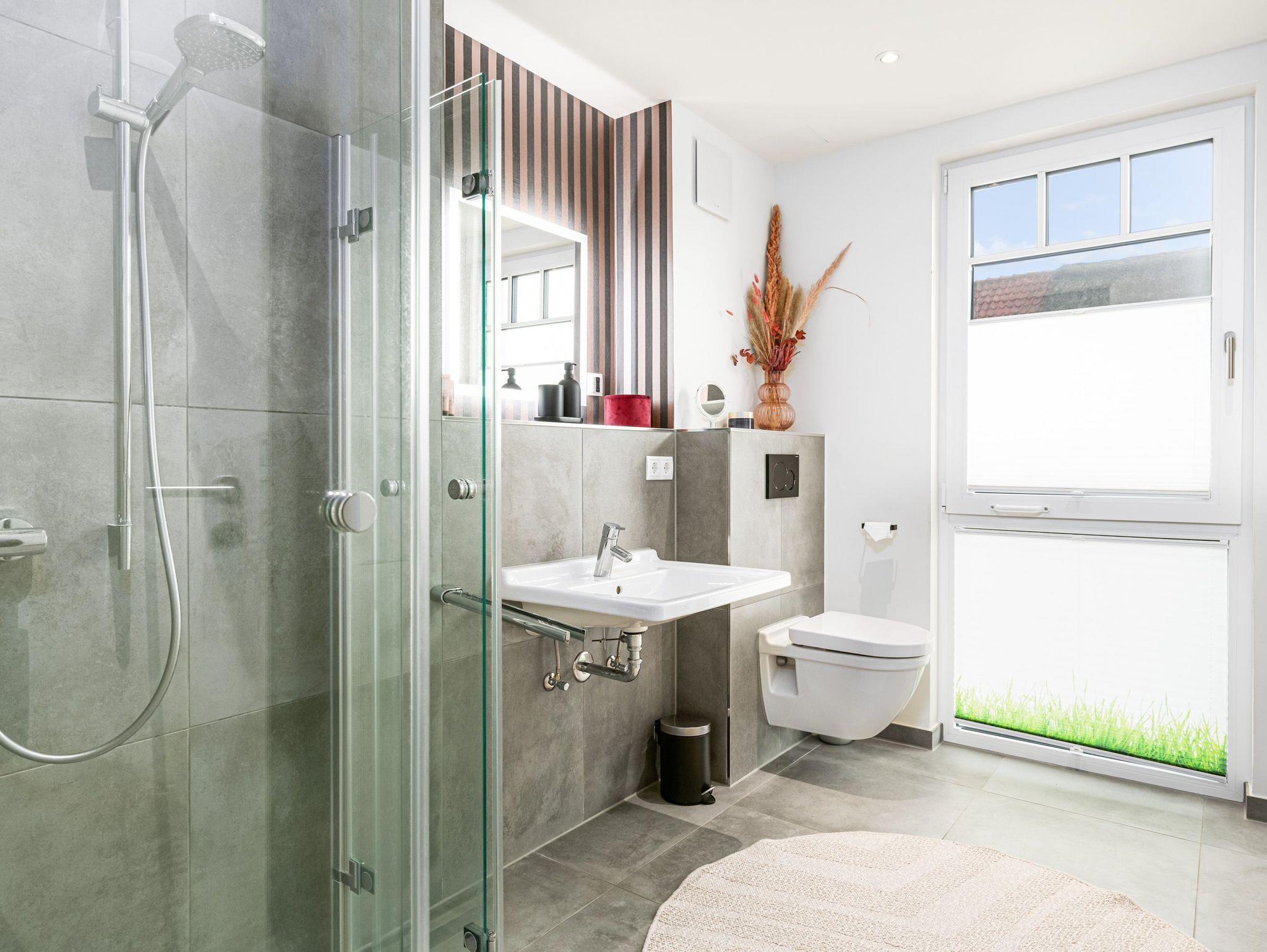 Das Badezimmer ist sehr modern eingerichtet und ist mit einer ebenerdigen Dusche ausgestattet. Hier erfrischen Sie sich nach einem schönen Strandtag.