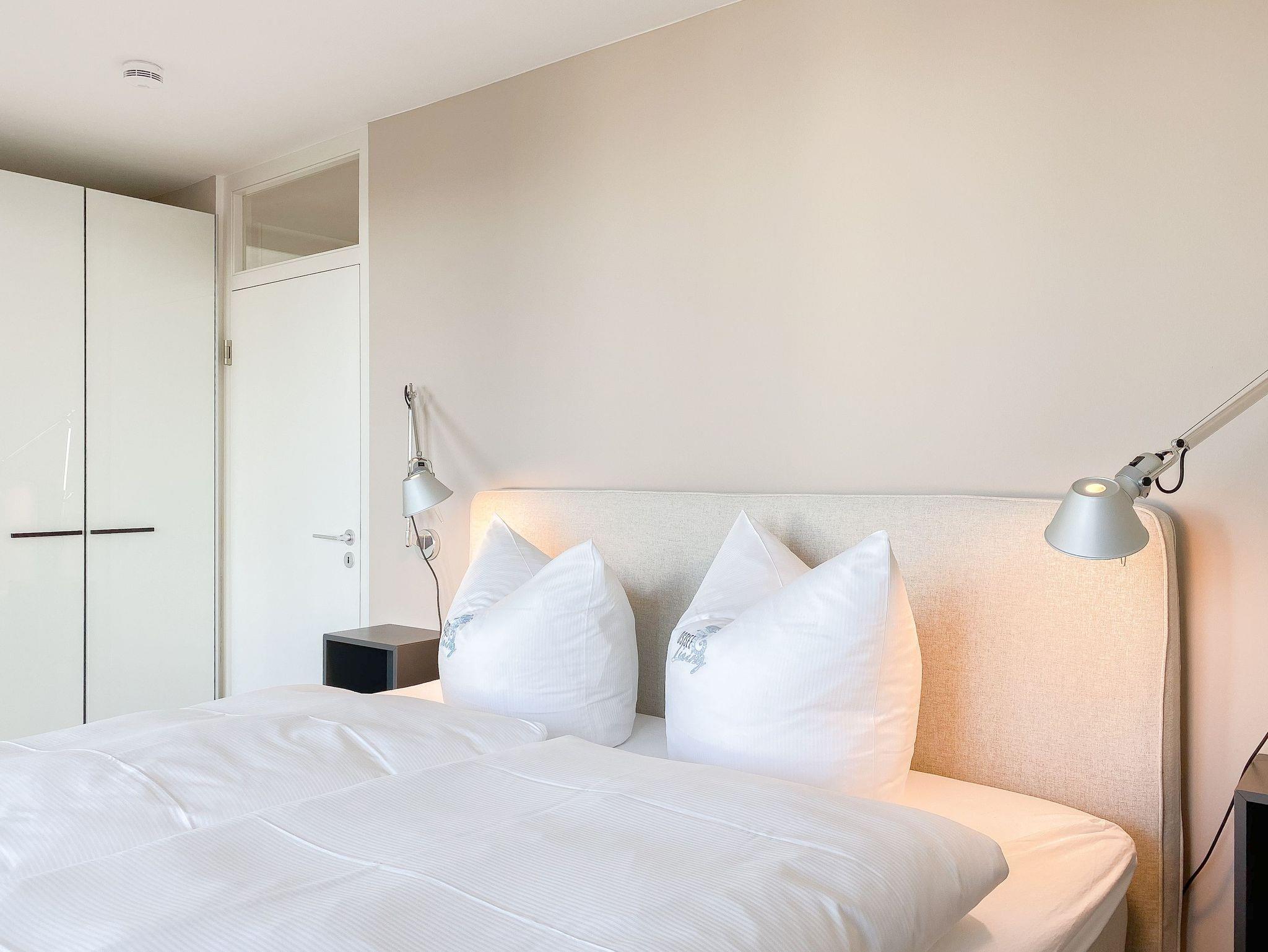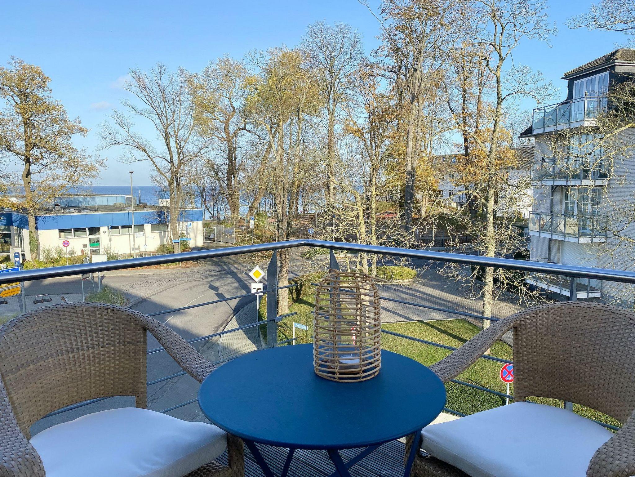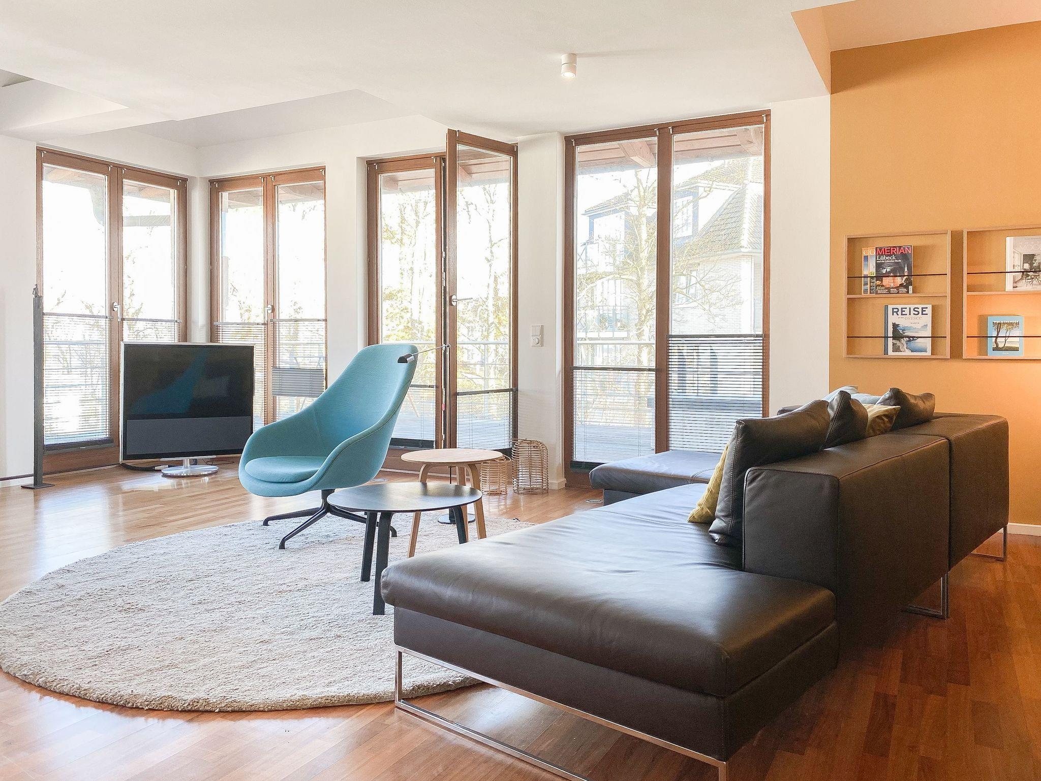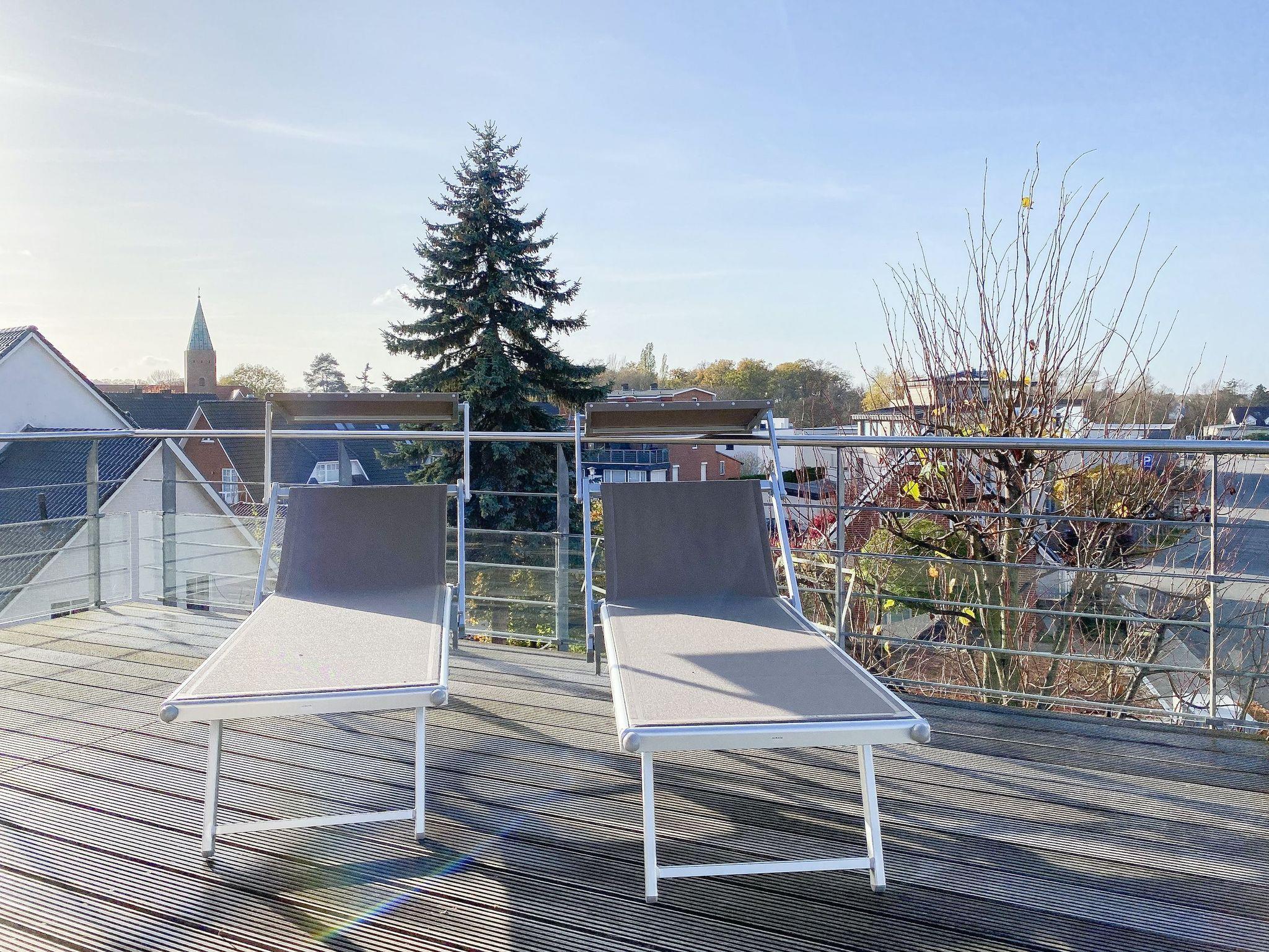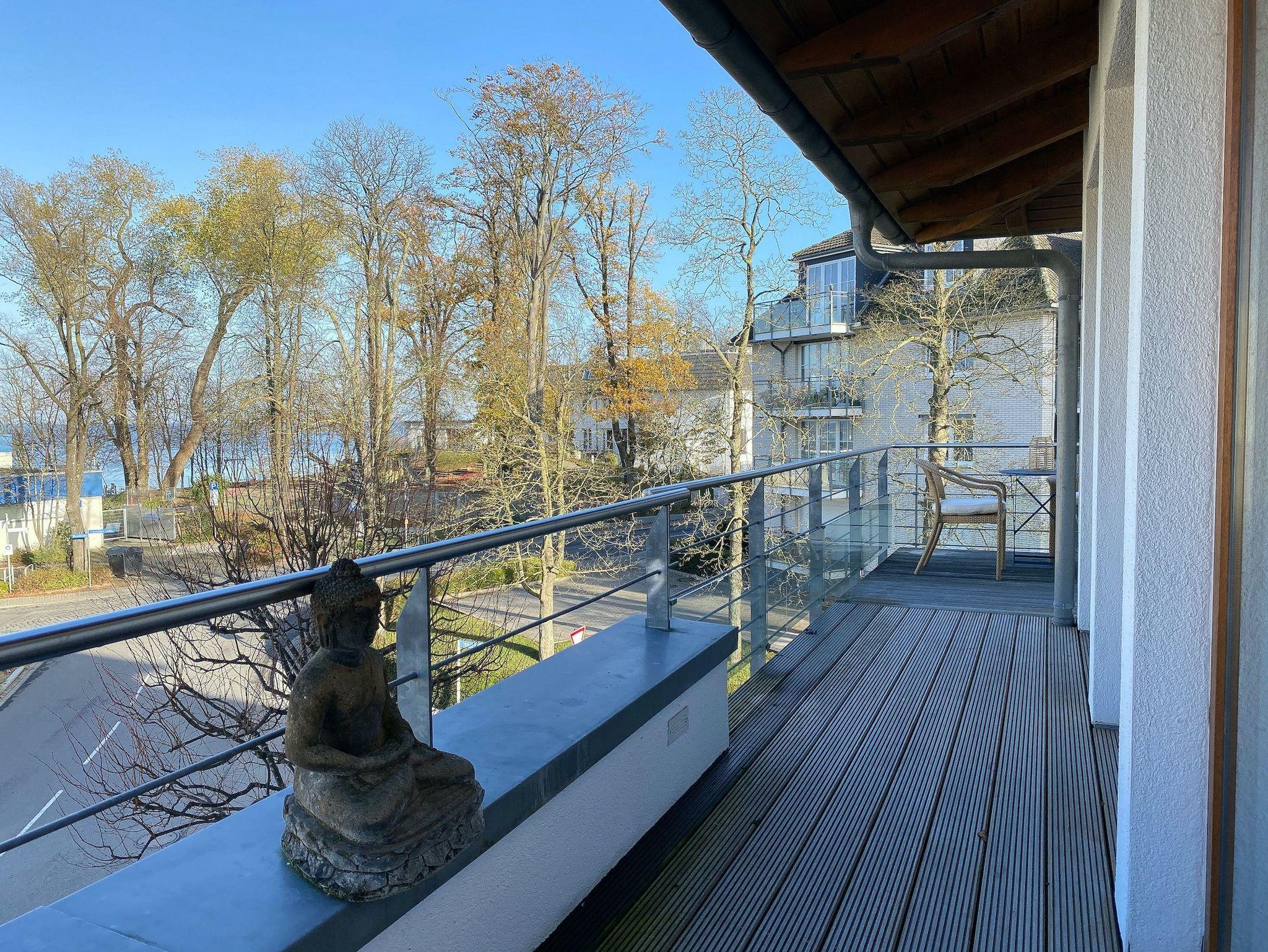 Es erwarten Sie lichtdurchflutete, großzügige Räumlichkeiten auf über 100 qm Wohnfläche und eine riesige, umlaufende Dachterrasse, die von allen Räumen zugänglich ist und mit einem Strandkorb, Gartenmöbeln und Sonnenliegen ausgestattet ist. Genießen Sie die herrliche Aussicht bis auf die Ostsee und Sonne oder Schatten je nach Belieben. Durch die Kombination von anspruchsvollem Design, hochwertigen Materialien und warmen Farben ist es gelungen, eine angenehme Atmosphäre in herrlichem Ambiente zu schaffen. Im 2. Obergeschoss erwartet Sie ein großzügiger Wohn- Essbereich mit Kamin und Ostseeblick. Die anschließende, halb offene Küche ist bestens ausgestattet und verfügt neben einer Frühstücksbar über reichlich Platz für gemeinsames Kochen. Es gibt 2 separate Schlafzimmer mit Doppelbetten (180x200 und 160x200), eines mit großem Kleiderschrank und Verdunkelungsvorhängen, das andere mit einer Kommode, Kleiderständer und Verdunkelungsjalousien sowie 2 hochwertige Bäder. WLAN steht selbstverständlich zur kostenlosen Nutzung zur Verfügung. Ein Fahrstuhl ist vorhanden.