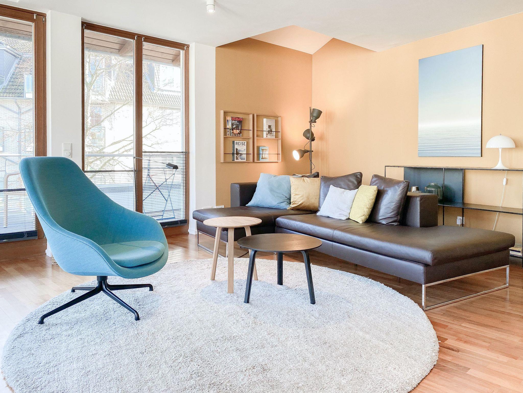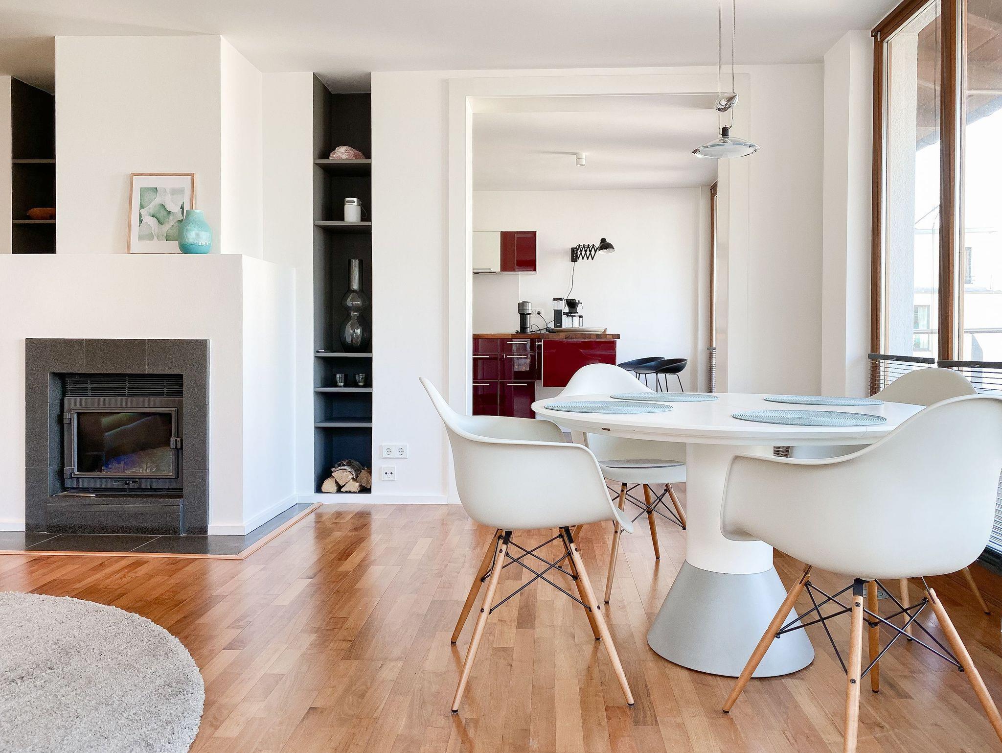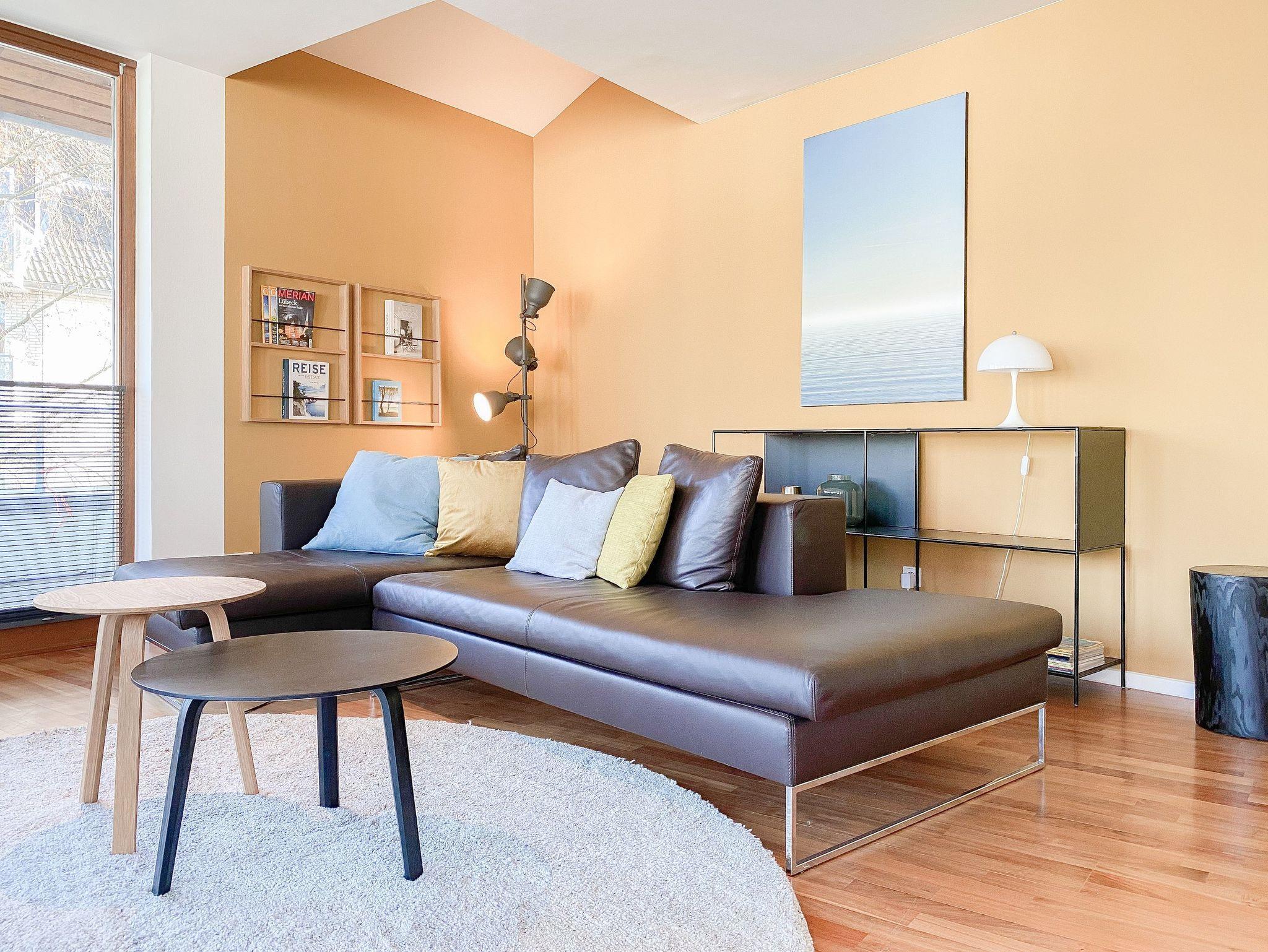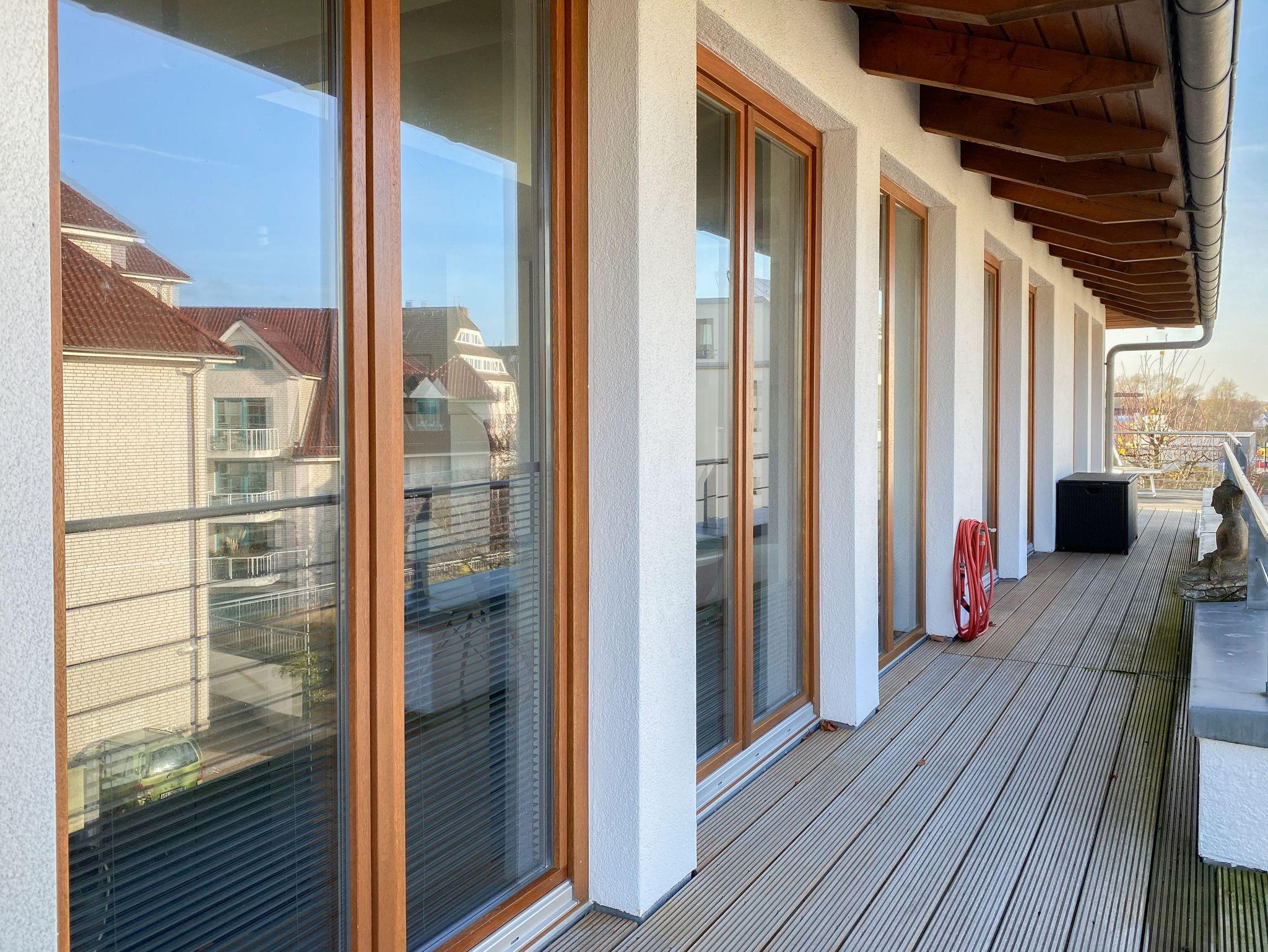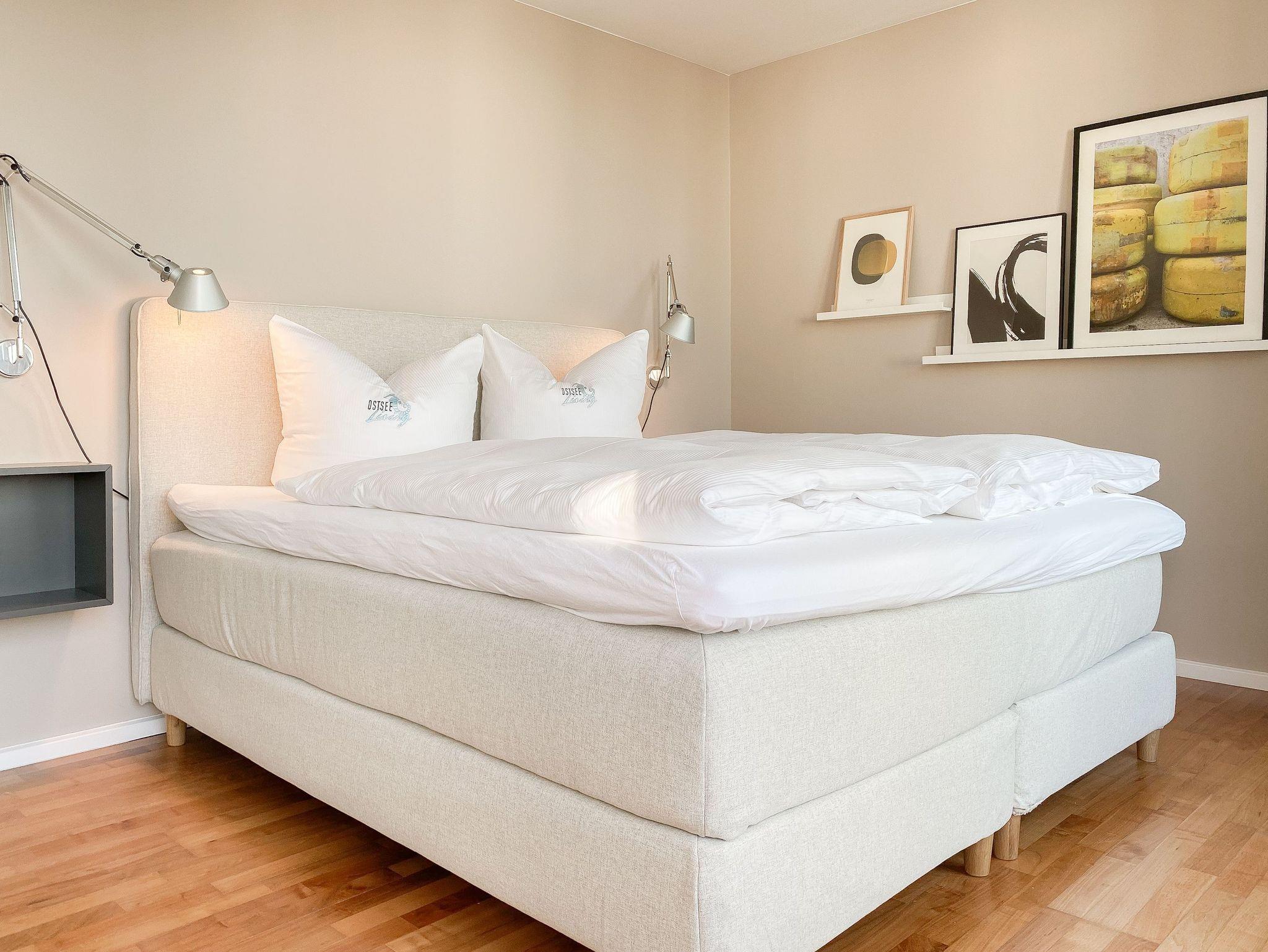 Es erwarten Sie lichtdurchflutete, großzügige Räumlichkeiten auf über 100 qm Wohnfläche und eine riesige, umlaufende Dachterrasse, die von allen Räumen zugänglich ist und mit einem Strandkorb, Gartenmöbeln und Sonnenliegen ausgestattet ist. Genießen Sie die herrliche Aussicht bis auf die Ostsee und Sonne oder Schatten je nach Belieben. Durch die Kombination von anspruchsvollem Design, hochwertigen Materialien und warmen Farben ist es gelungen, eine angenehme Atmosphäre in herrlichem Ambiente zu schaffen. Im 2. Obergeschoss erwartet Sie ein großzügiger Wohn- Essbereich mit Kamin und Ostseeblick. Die anschließende, halb offene Küche ist bestens ausgestattet und verfügt neben einer Frühstücksbar über reichlich Platz für gemeinsames Kochen. Es gibt 2 separate Schlafzimmer mit Doppelbetten (180x200 und 160x200), eines mit großem Kleiderschrank und Verdunkelungsvorhängen, das andere mit einer Kommode, Kleiderständer und Verdunkelungsjalousien sowie 2 hochwertige Bäder. WLAN steht selbstverständlich zur kostenlosen Nutzung zur Verfügung. Ein Fahrstuhl ist vorhanden.