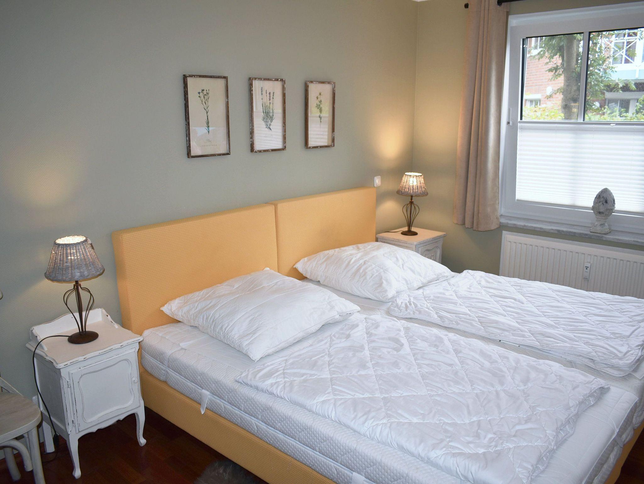 Schlafzimmer 1: 2 Matratzen, 2 Nachttische, Boxspringbett 2,00 x 2,00 m, Flachbildschirm, Kabel-TV, Kleiderschrank, Regal, Stuhl